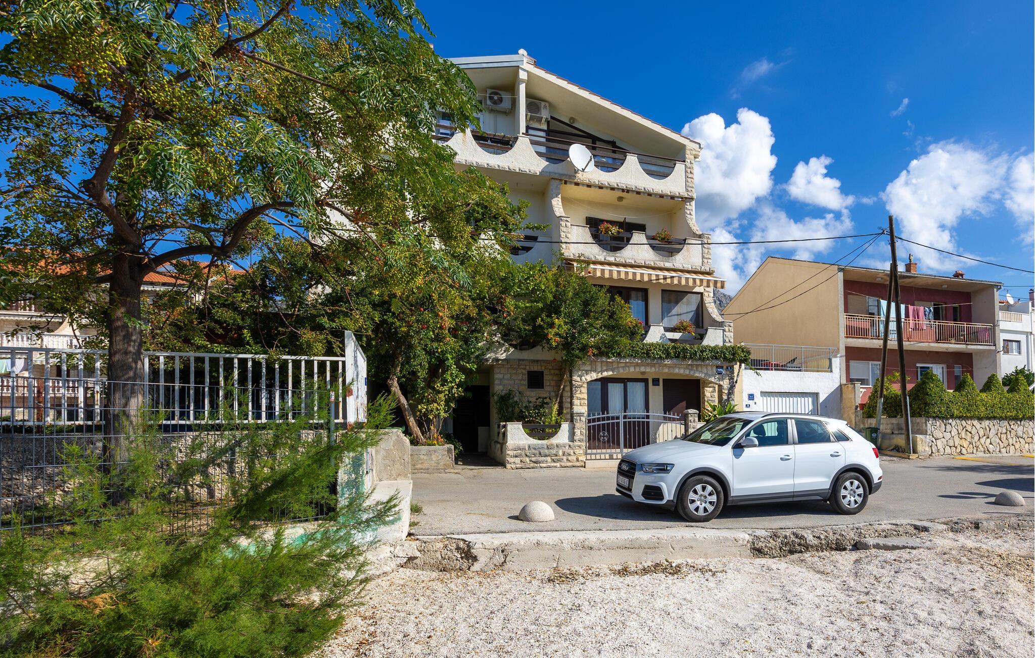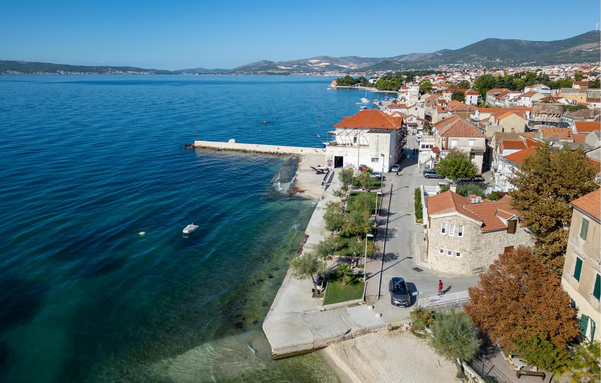 Unmittelbar an einem schönen Kiesstrand gelegen sind diese Ferienwohnungen. CDE497 auf der 3. Etage hat eine Dachschräge auf 140 cm. Sie ist komfortabel und eingerichtet und hat einen tollen Panoramablick von der Terrasse. Die einfach eingerichtete Ferienwohnung CDE498 besteht aus zwei Wohneinheiten mit gemeinsamer Terrasse. Ein Teil ist zweistöckig mit Innentreppe, den anderen Teil auf der 2. Etage erreichen Sie über Außentreppen. CDF616 im Erdgeschoss besitzt eine eigene Terrasse mit Meerblick. Gleich neben dem Haus verläuft die schöne Promenade. Besuchen Sie die historischen Städte Trogir und Split.