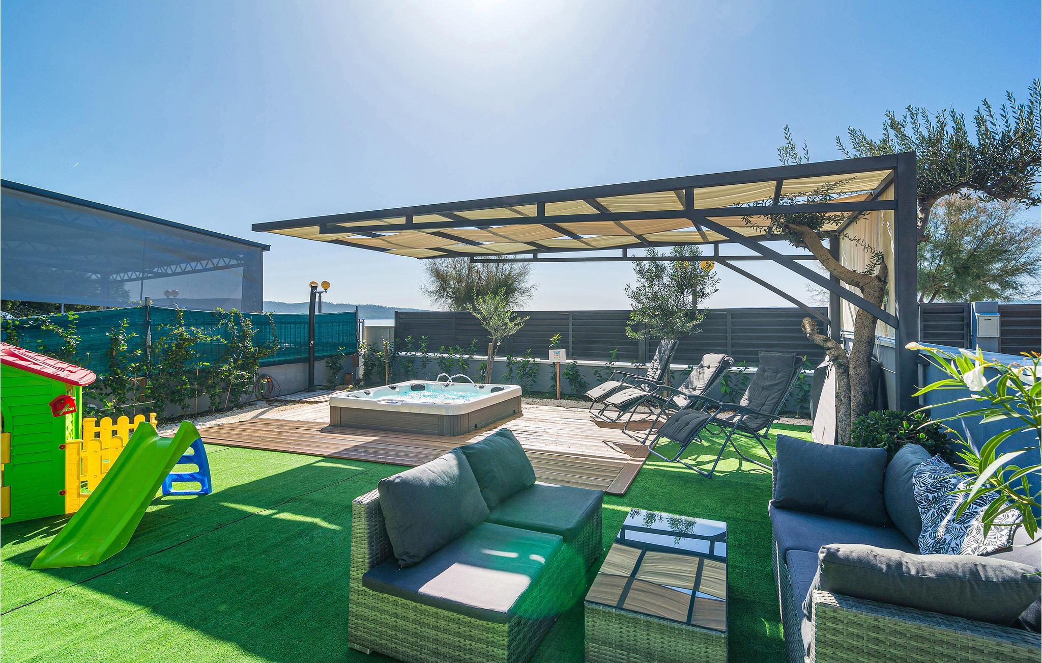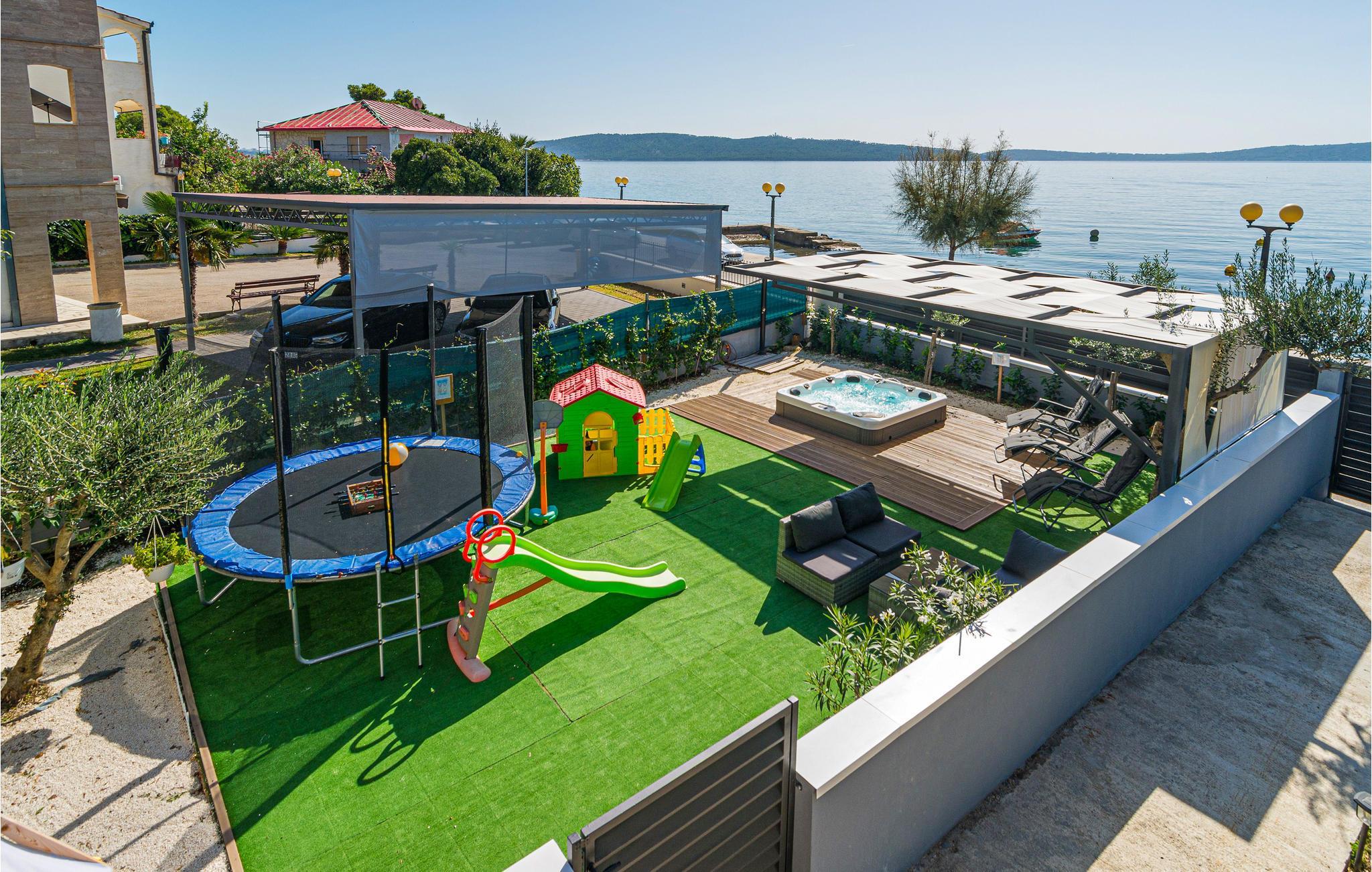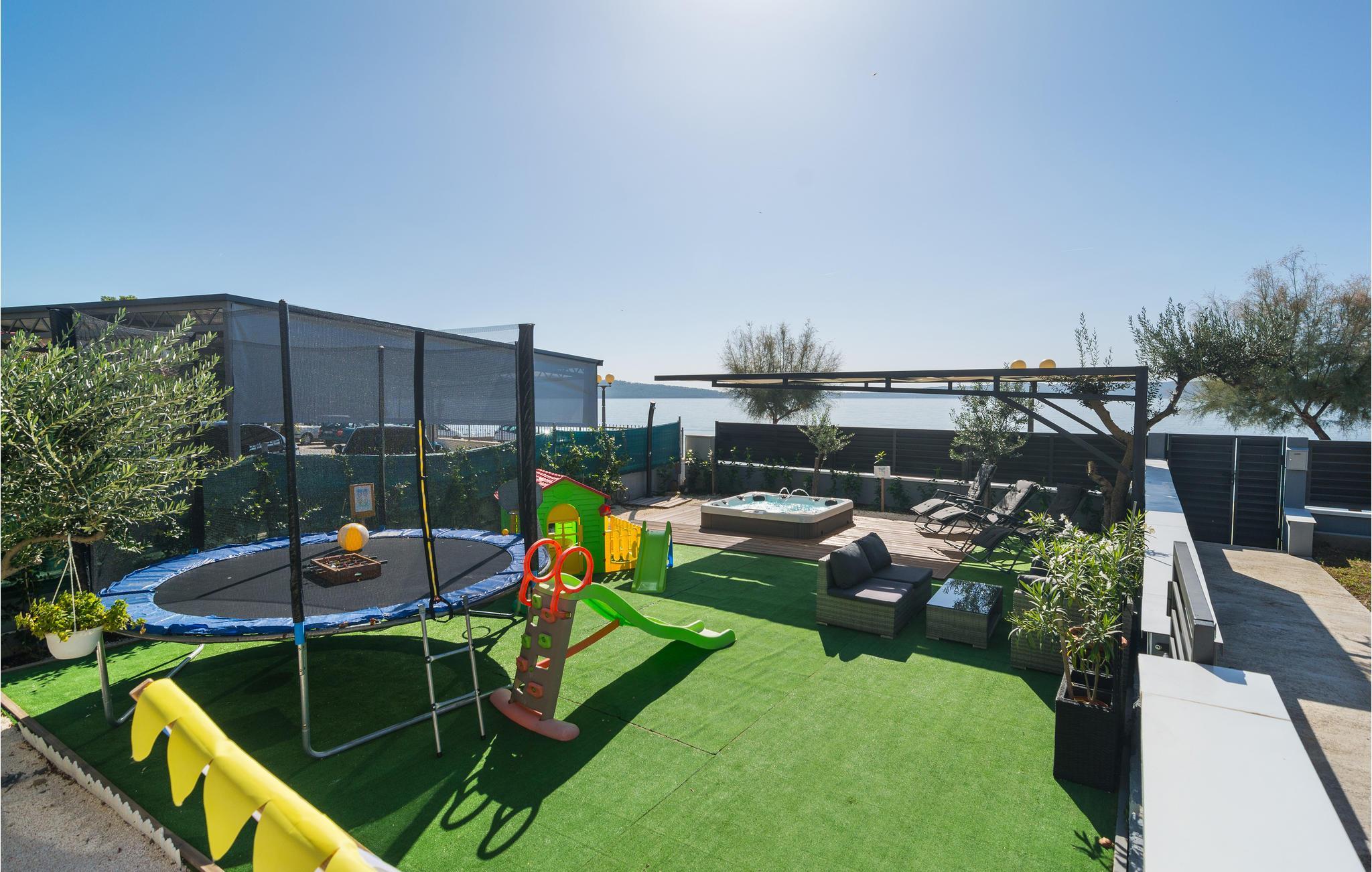 Diese komfortable und geräumige Ferienwohnung liegt in Kastel Kambelovac, nahe Trogir. Kommen Sie im 1. Stockwerk des Wohnhauses an und fühlen sich mit Ihrer großen Familie wie zuhause. Komfort und eine ansprechende Einrichtung bieten Ihnen alles, was Sie zum Wohlfühlen brauchen und können Ihren Morgenkaffee auf dem Balkon genießen. Das umzäunte Grundstück ist nur durch eine befahrbare Promenade vom Meer getrennt. Genießen Sie Kinderspielplatz, der Ihre Kinder begeistern wird und entspannen Sie sich im Whirlpool.