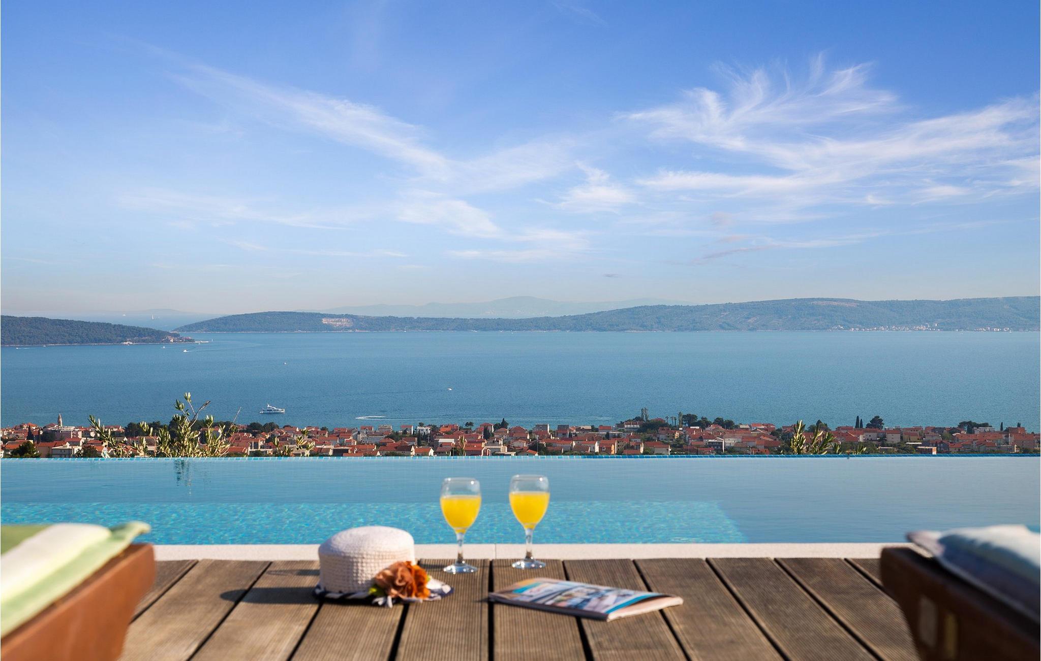 Der großartige Balkon mit weitem Meeresblick sowie die Terrassenbereiche im Garten versprechen Ihnen Entspannung und Gemütlichkeit. Grillen Sie am Abend oder faulenzen Sie auf den Sonnenliegen am Infinitypool.