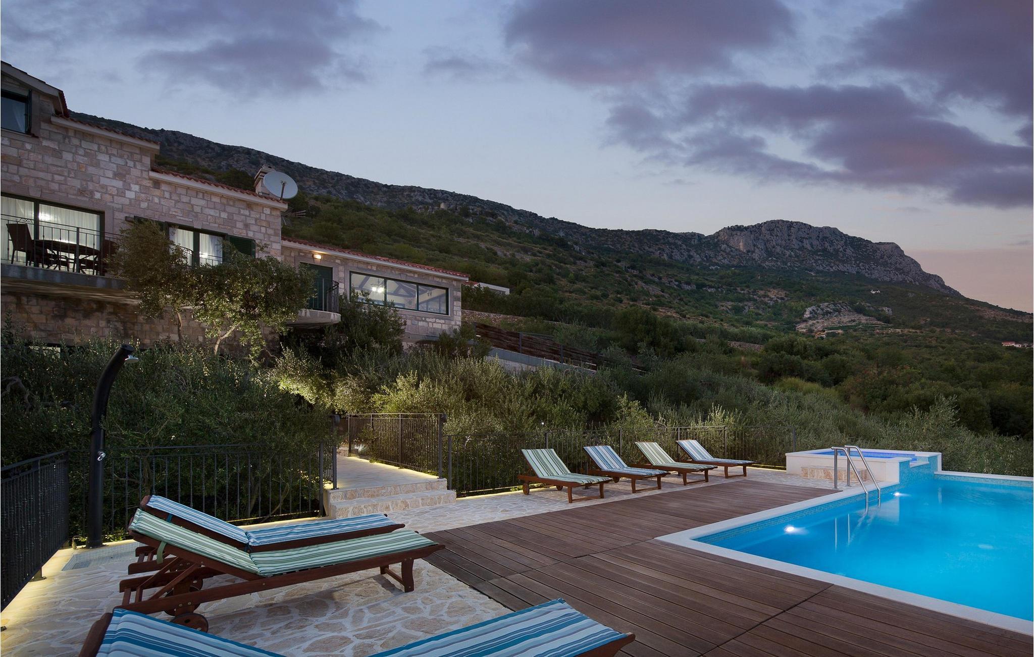 Lassen Sie den Blick über das glitzernde Meer und die dalmatinischen Inseln schweifen, während Sie am Pool entspannen. Die charmante Steinvilla Seven Gems vereint traditionelle Architektur mit modernem Komfort: Einladende Wohnräume, ein gemütlicher Kaminofen und geschmackvolle Einrichtung sorgen für Wohlfühlatmosphäre. Starten Sie den Tag mit einem Kaffee auf der Terrasse, gönnen Sie sich Erholung in der Sauna oder verbringen Sie gesellige Abende in der urigen Taverne.