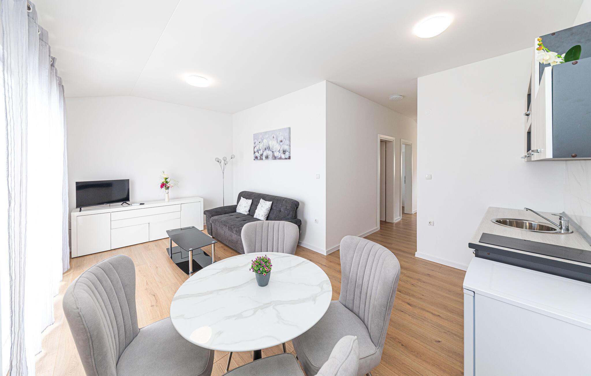 Schnappen Sie sich anschließend doch Ihre Strandtaschen und spazieren zum Strand. Erfrischen Sie sich nach Belieben im Meer, lassen sich von den Wellen tragen oder genießen ein Sonnenbad. Unternehmen Sie einen Ausflug nach Trogir, spazieren Sie über die Brücke in die Altstadt und erkunden Sie die Bauwerke, die von der reichen Vergangenheit dieser beeindruckenden Stadt zeugen, darunter der Cipiko Palast, die Kirche Sveti Petar und die Gebäude am Platz Johannes Paul II.