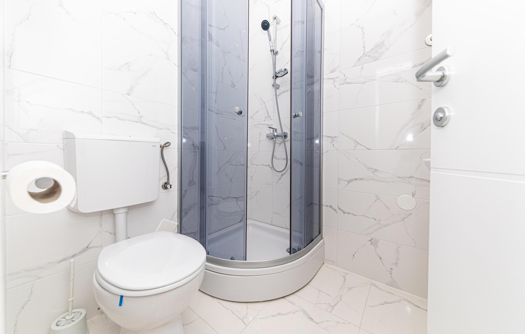 Badezimmer 3m2 (nr. 1) - WC. Warmes und kaltes Wasser. Dusche