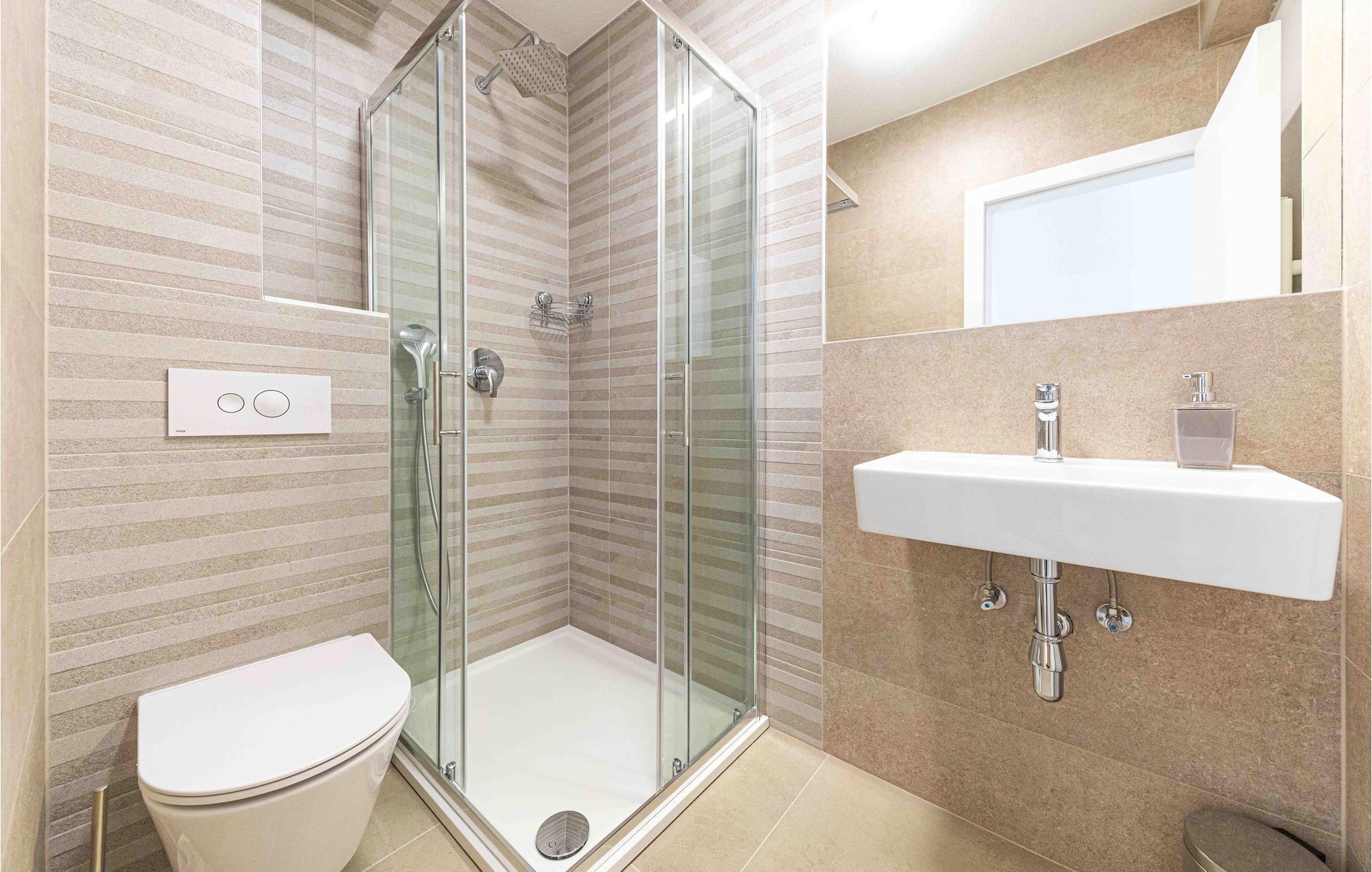 Badezimmer 4m2 (nr. 1) - WC. Warmes und kaltes Wasser. Dusche