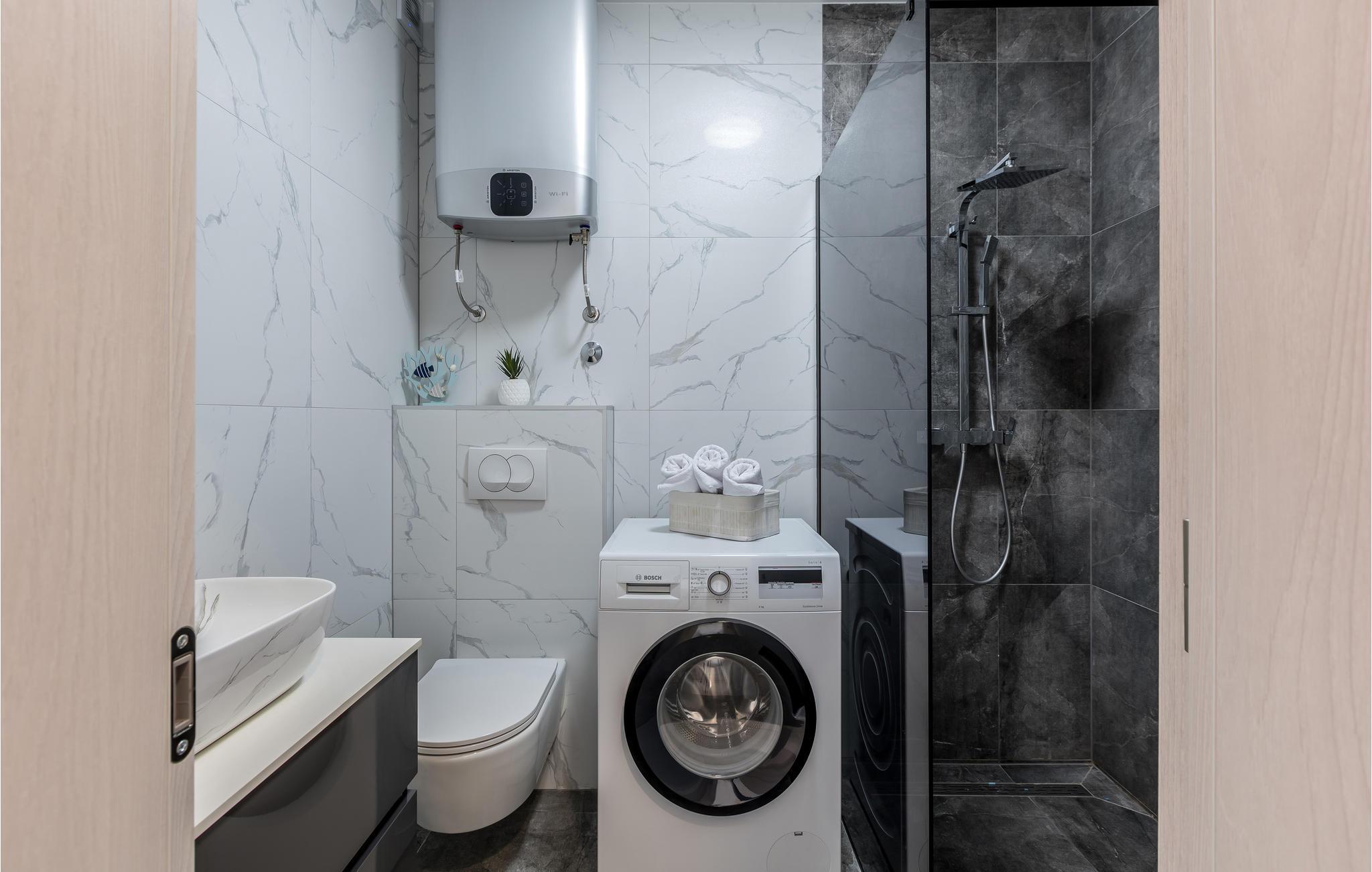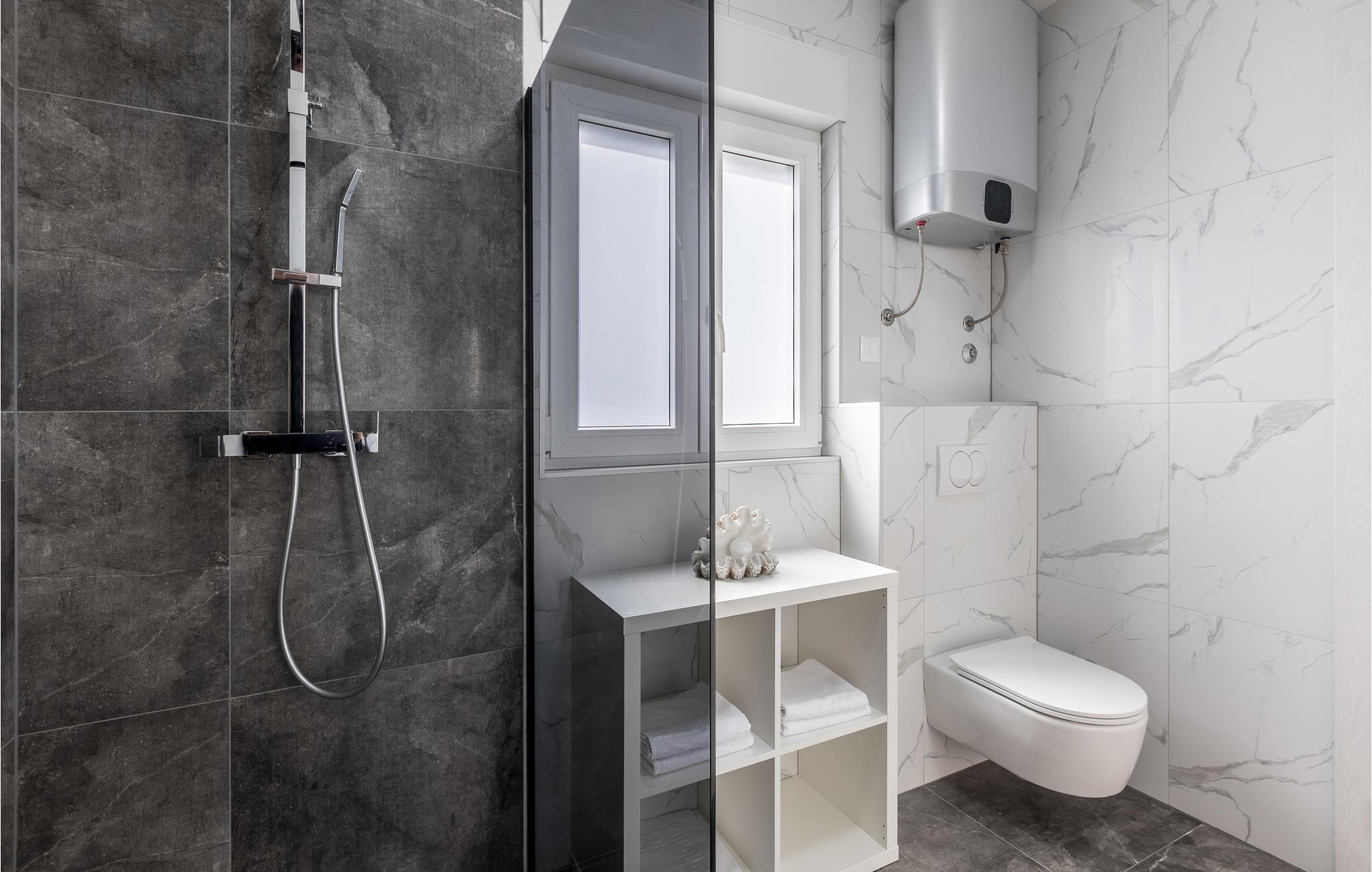 Badezimmer 4m2 (nr. 1) - WC. Warmes und kaltes Wasser. Dusche