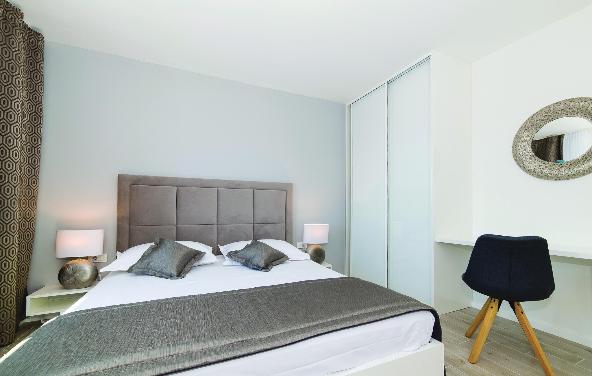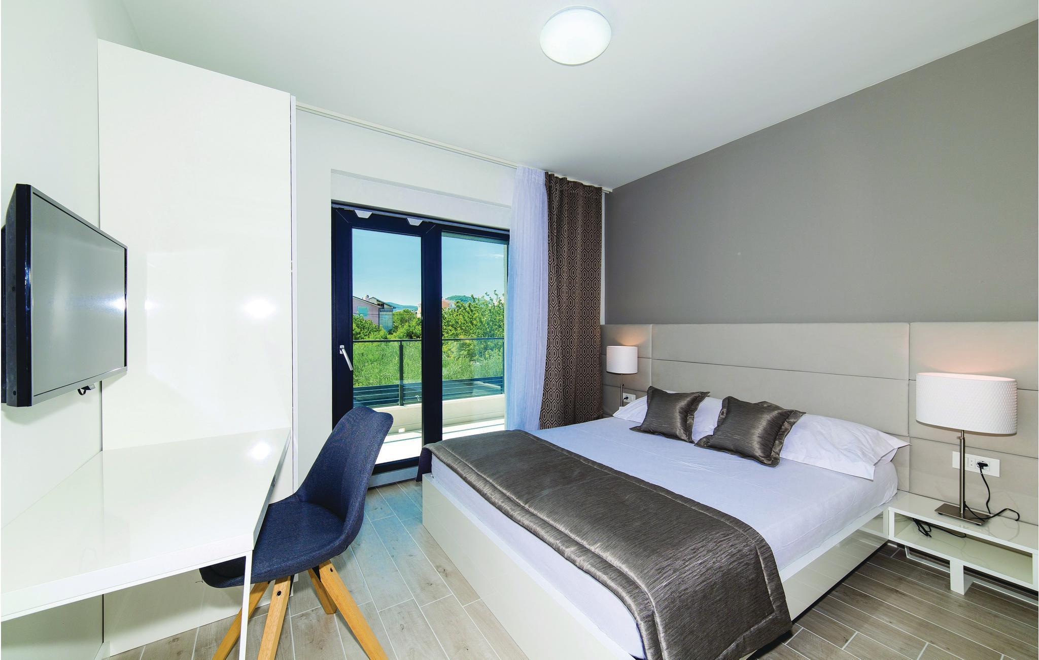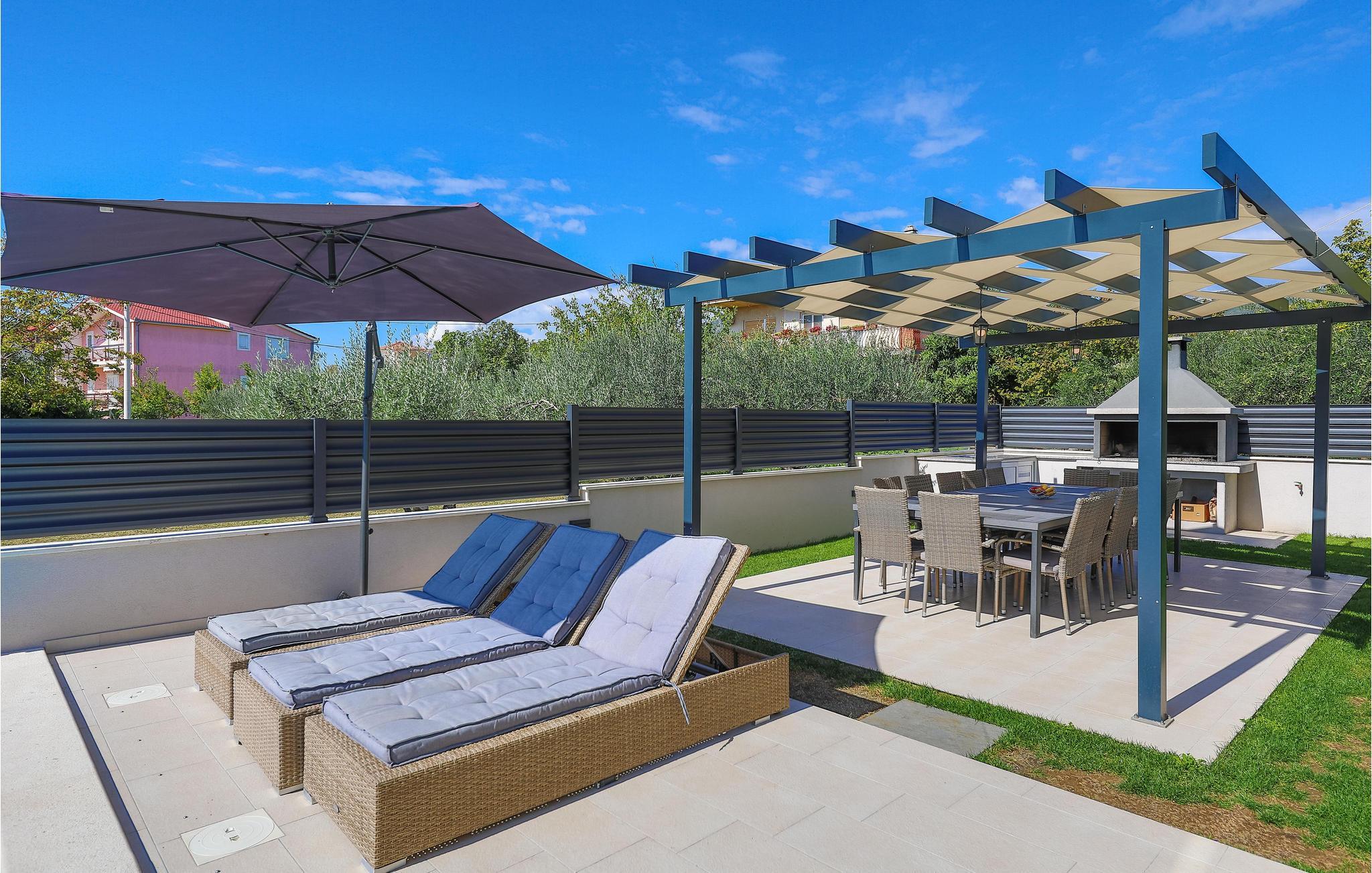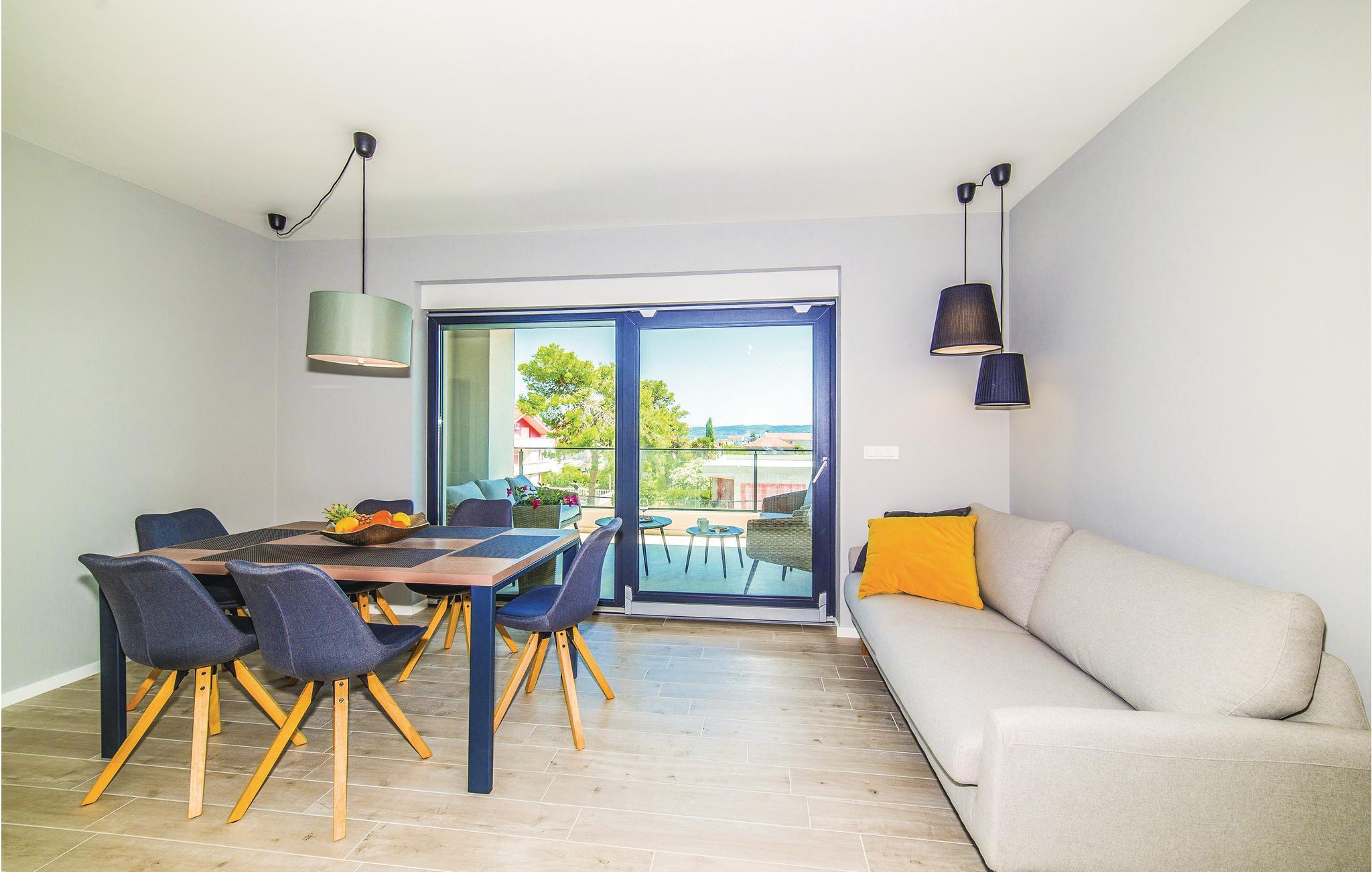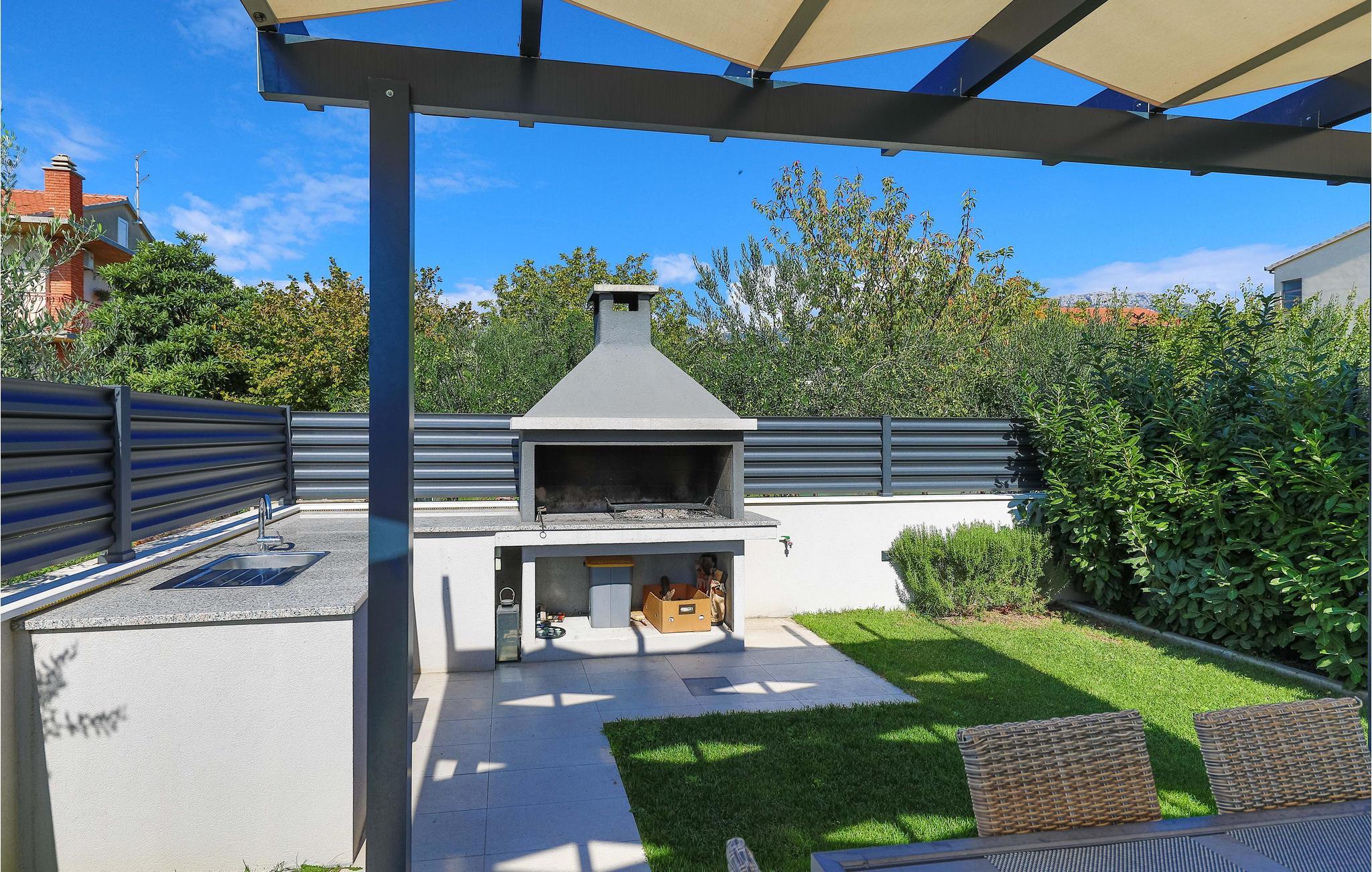Verbringen Sie einen unvergesslichen Urlaub mit Ihrer Familie und Freunden in diesem stilvollen Ferienhaus mit Pool und schönem Interieur. Es liegt in einem idyllischen Umfeld mit schöner Aussicht und nicht weit von den historischen Städten Trogir und Split entfernt, die Ihnen verschiedene kulturelle und unterhaltsame Freizeitmöglichkeiten bieten. Das Feriendomizil besteht aus zwei Wohneinheiten, die durch Außentreppen verbunden sind und ist die perfekte Wahl für eine große Familie oder Freundesgruppe, die zusammen einen schönen Urlaub erleben möchten. Es stehen Ihnen eine große Terrasse mit Grill, Fitnessraum und Freizeiträume zur Verfügung. Erfrischen Sie sich im Pool oder im Meer, etwa 550 m entfernt. Nutzen Sie die Gelegenheit und besuchen Sie auch die herrlichen Krka Wasserfälle.
