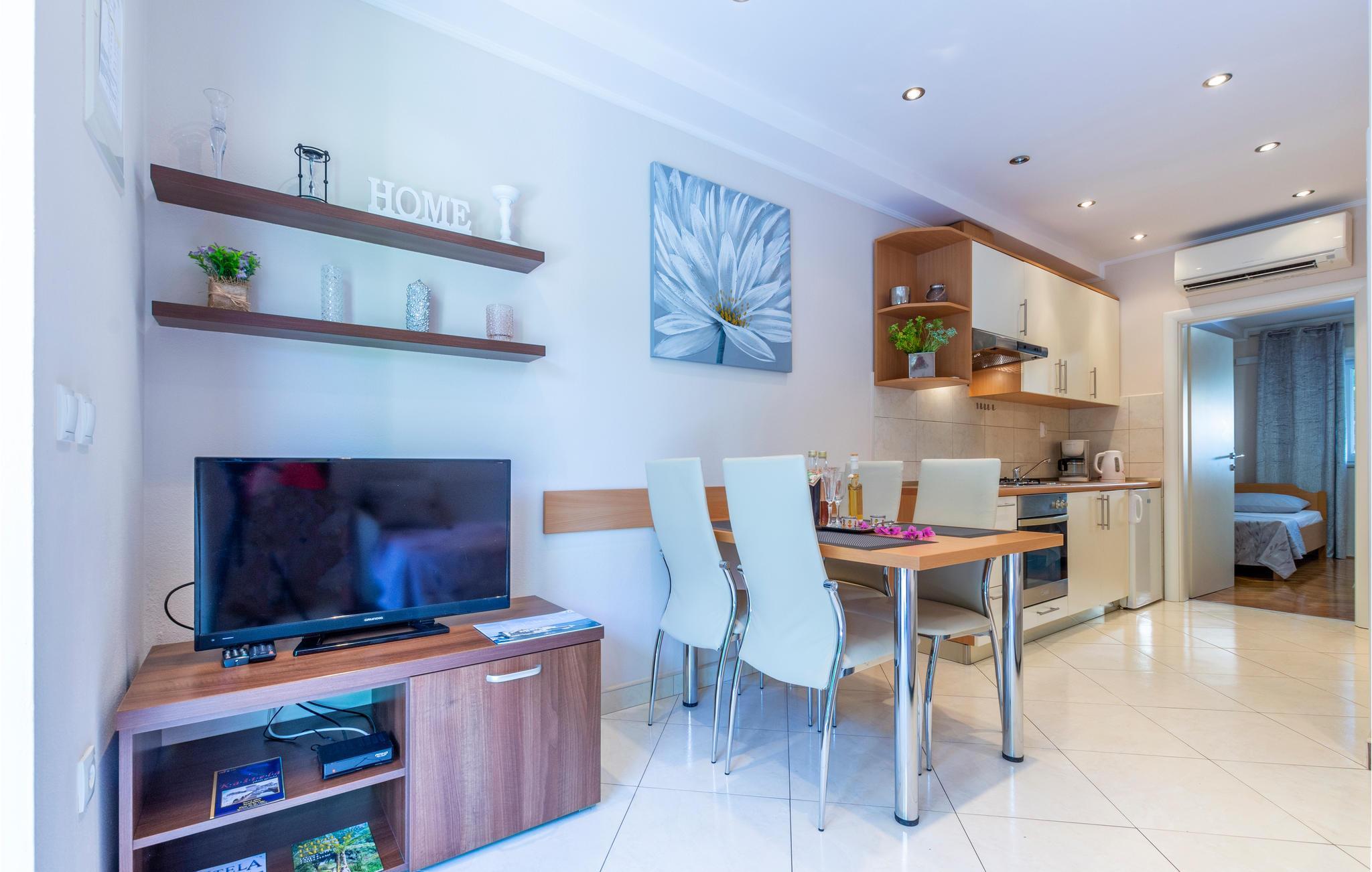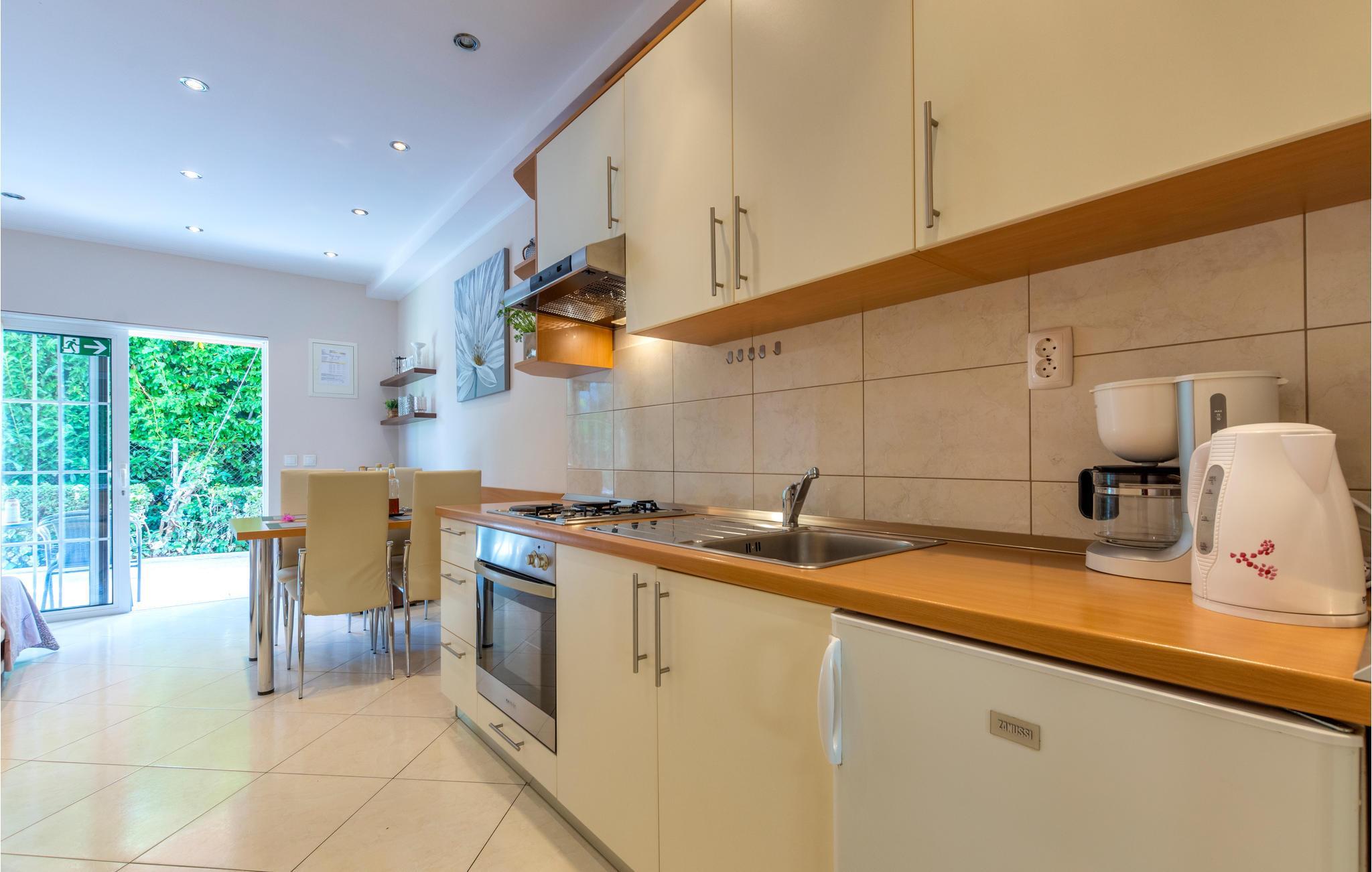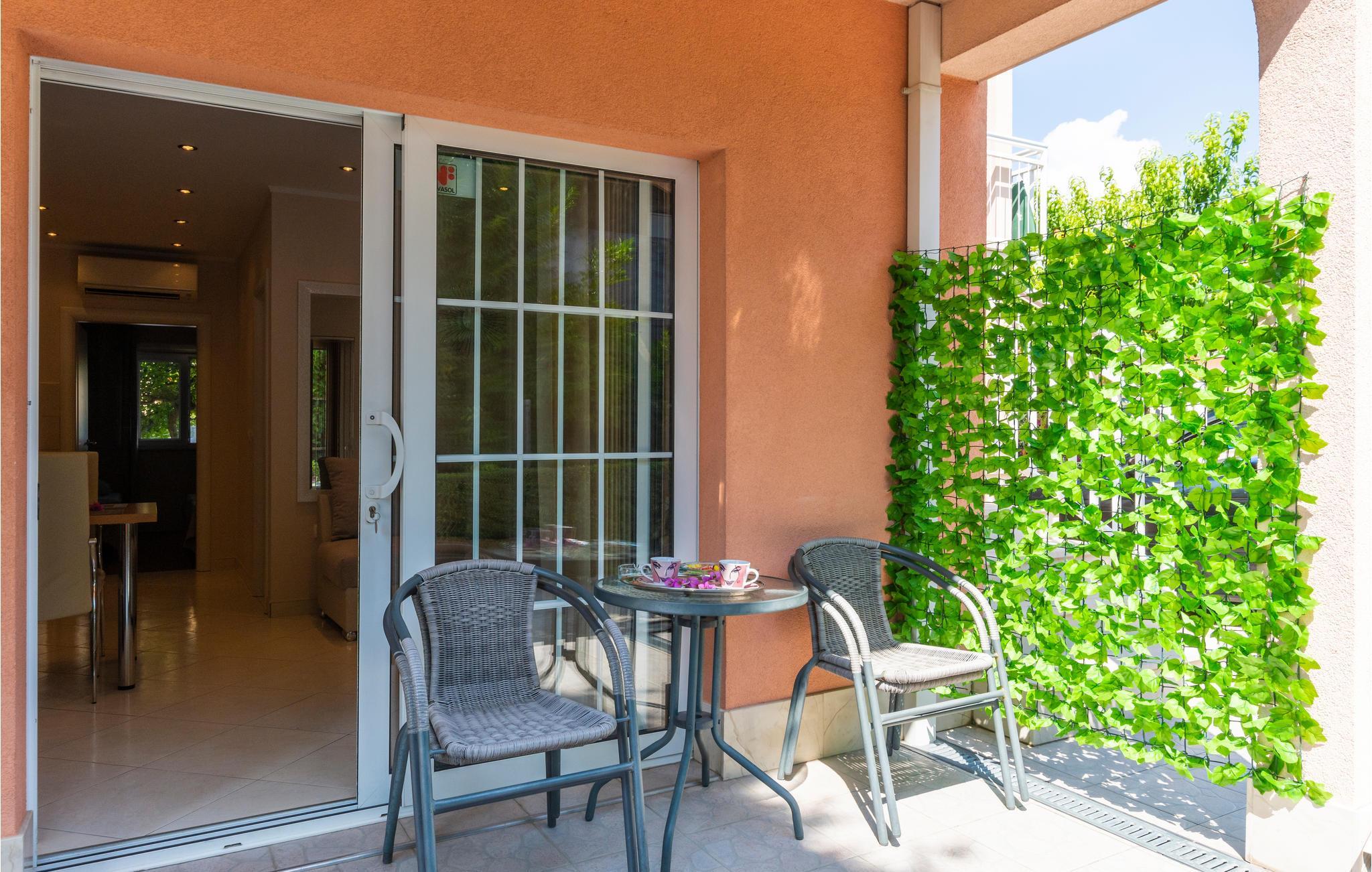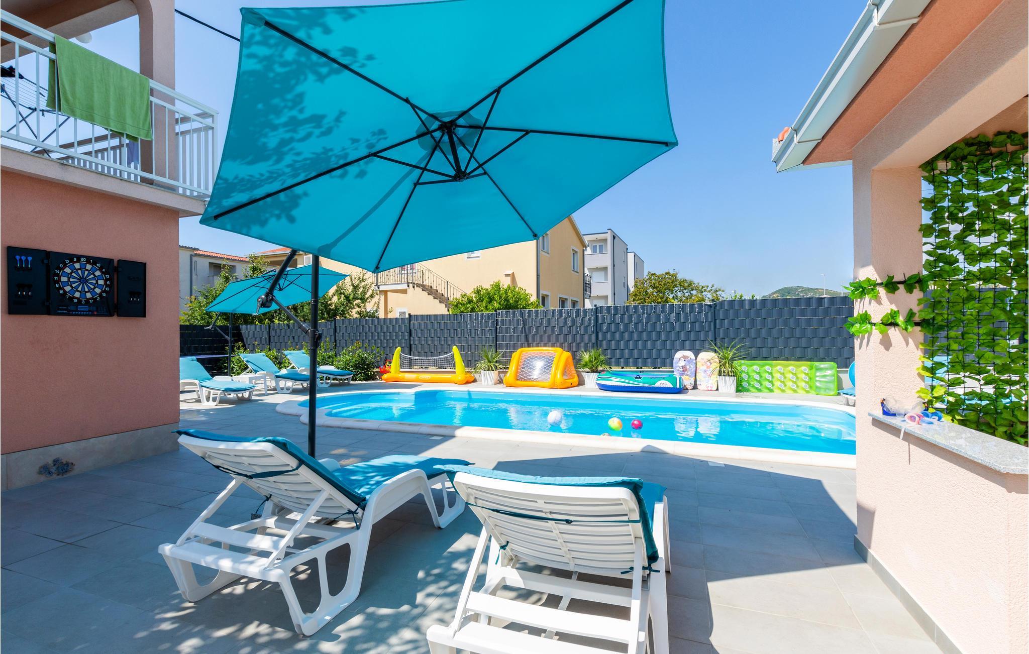 Da die Hauptstraße in der Nähe ist, haben Sie eine ideale Ausgangssituation für Tagesausflüge. Besuchen Sie z. B. die Städte Split und Trogir, Sie sind unbedingt einen Besuch wert. Der Außenpool, neben welchem sich die schattenspendende Terrasse befindet, steht zur gemeinschaftlichen Nutzung zur Verfügung.
