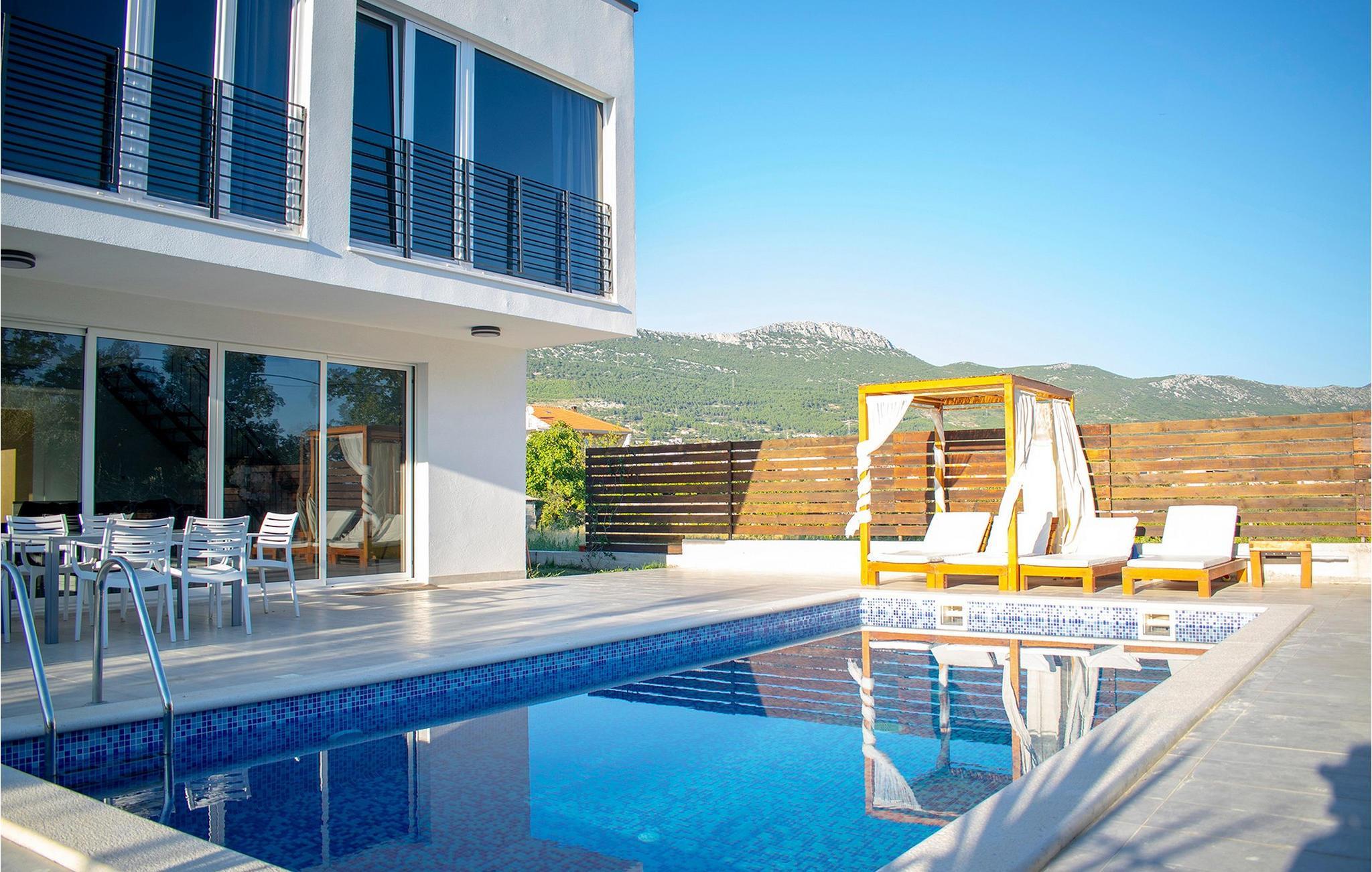 Verbringen Sie einen Traumurlaub in diesem modernen Ferienhaus mit Pool und Meerblick.