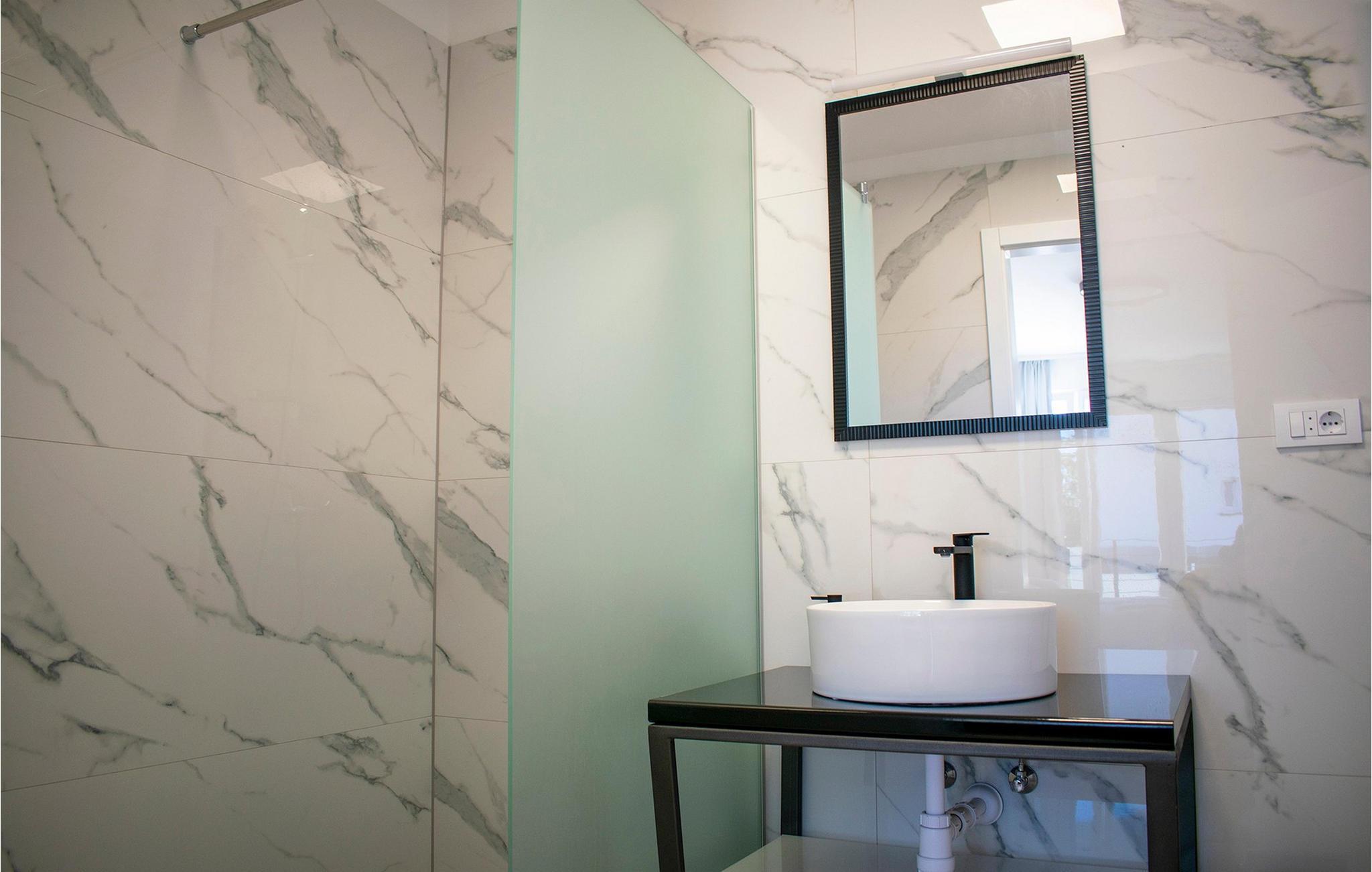Badezimmer (nr. 5) - WC. Warmes und kaltes Wasser. Dusche