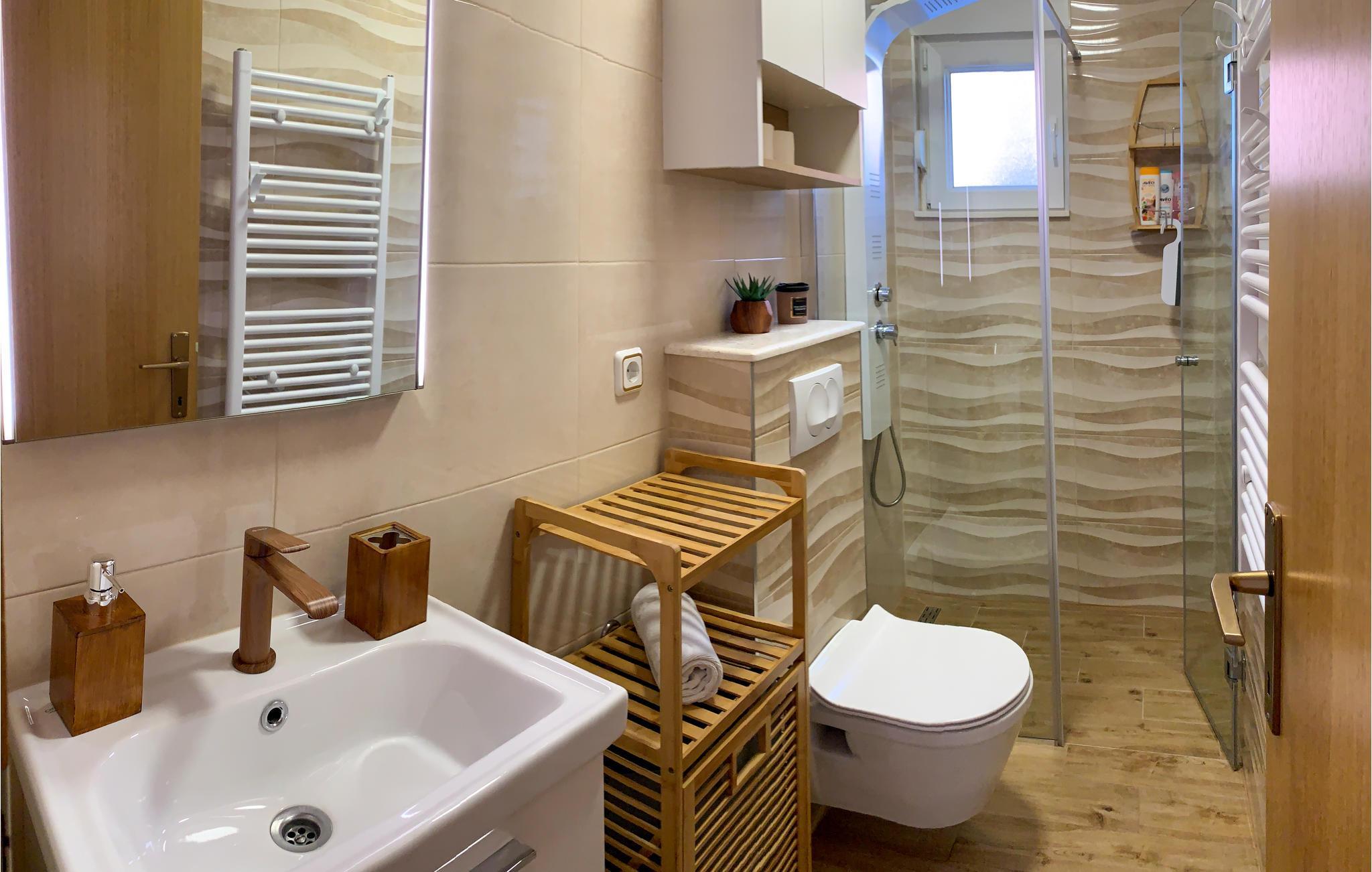 Badezimmer 4m2 (nr. 2) - WC. Warmes und kaltes Wasser. Dusche