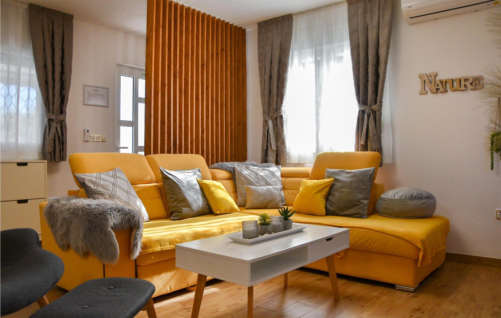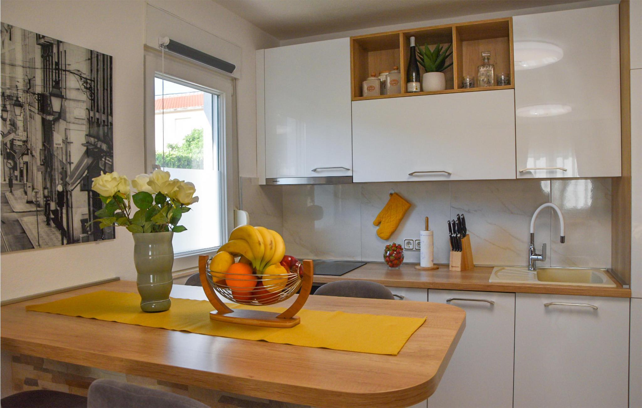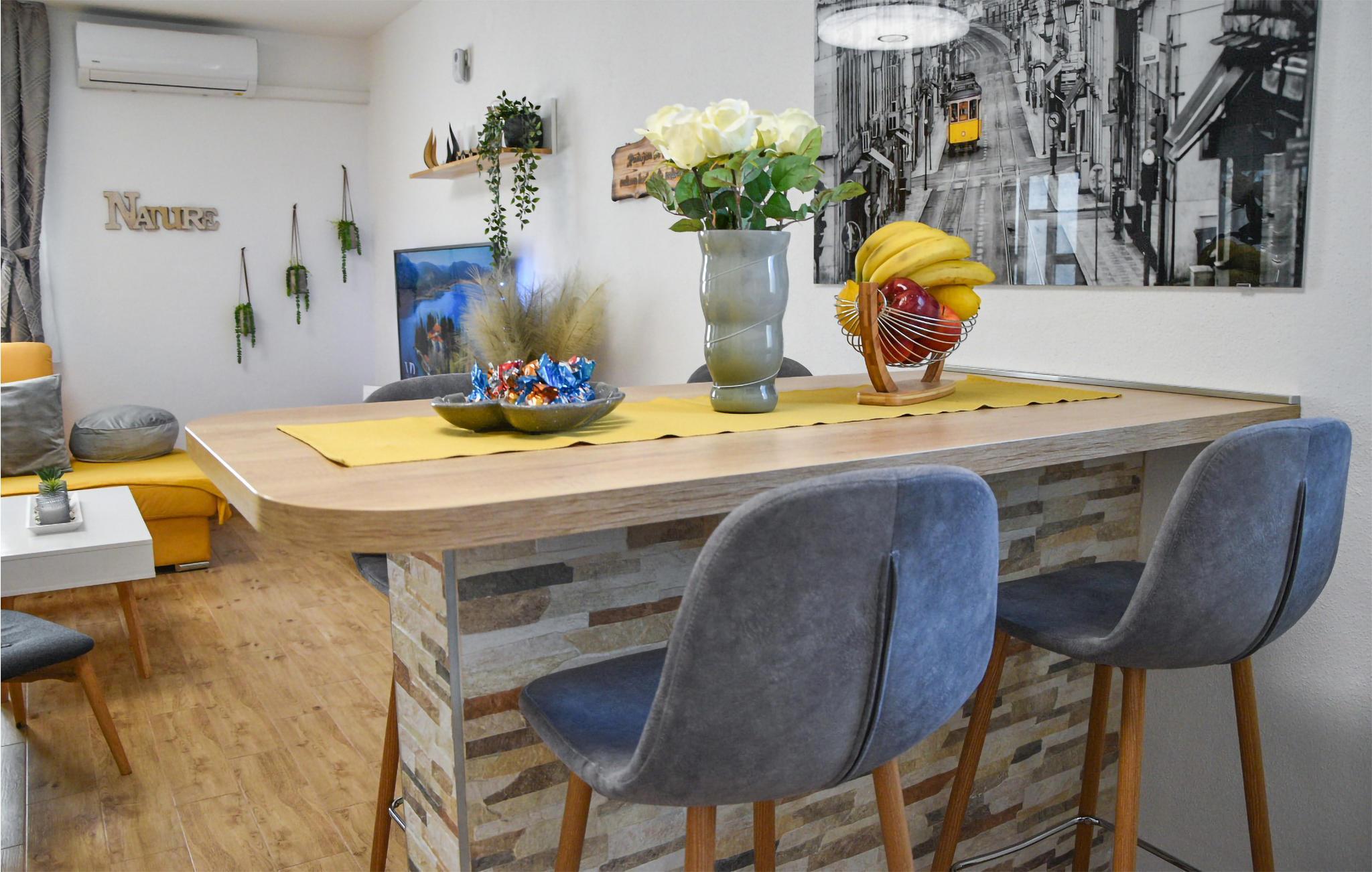 Schlendern Sie zum Meer und genießen Sie das klare Wasser am Kiesstrand. Fahren Sie nach Trogir, spazieren Sie über die Brücke in die Altstadt und erkunden Sie die Bauwerke, die von der reichen Vergangenheit dieser beeindruckenden Stadt zeugen, darunter der Cipiko Palast, die Kirche Sveti Petar und die Gebäude am Platz Johannes Paul II.