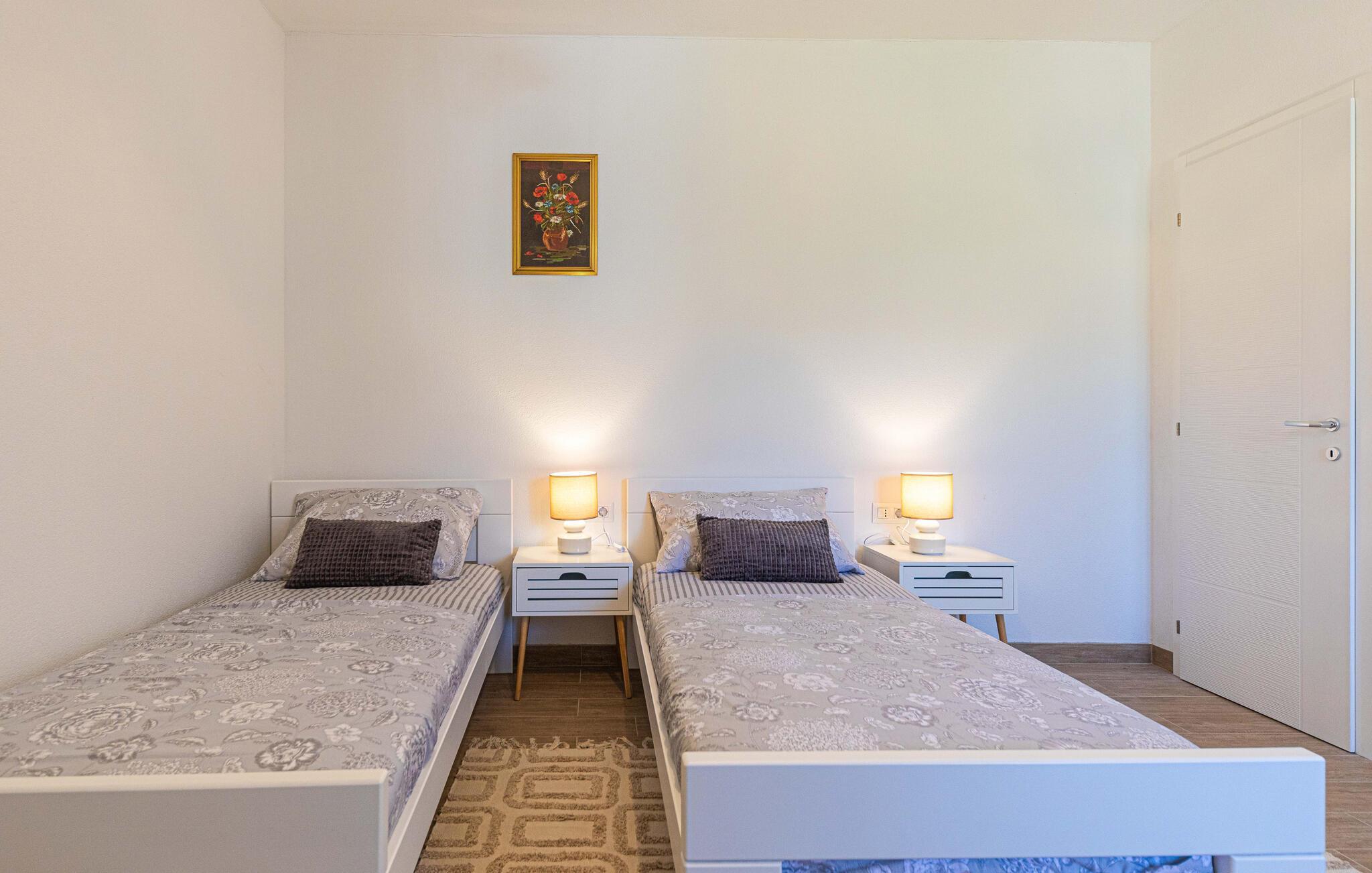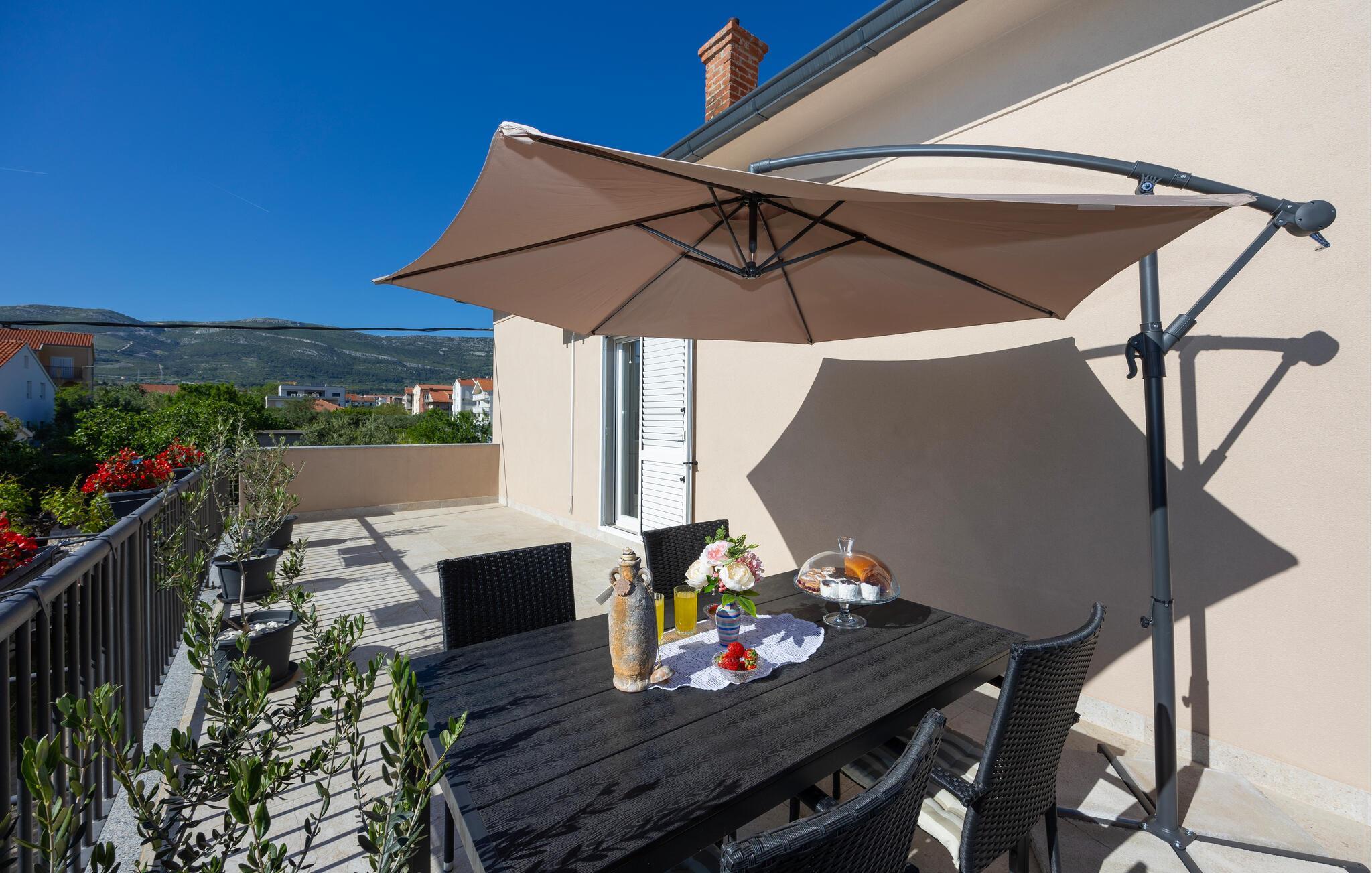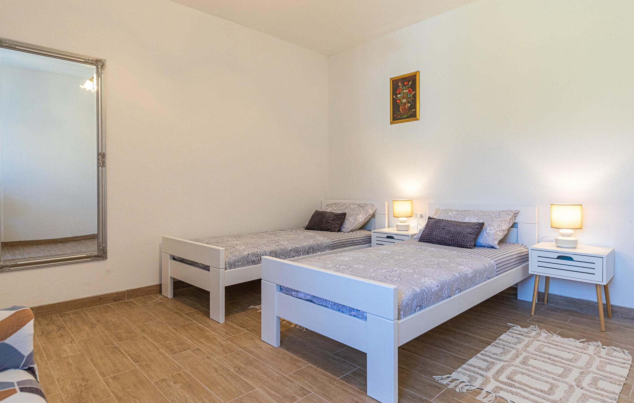 Spazieren Sie zum Meer und genießen Sie das klare Wasser am Kiesstrand. Unternehmen Sie einen Ausflug nach Trogir, spazieren Sie über die Brücke in die Altstadt und erkunden Sie die Bauwerke, die von der reichen Vergangenheit dieser beeindruckenden Stadt zeugen, darunter der Cipiko Palast, die Kirche Sveti Petar und die Gebäude am Platz Johannes Paul II.