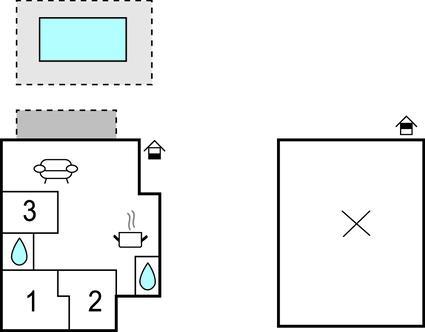 Badezimmer 3m2 (nr. 1) - WC. Warmes und kaltes Wasser. Dusche