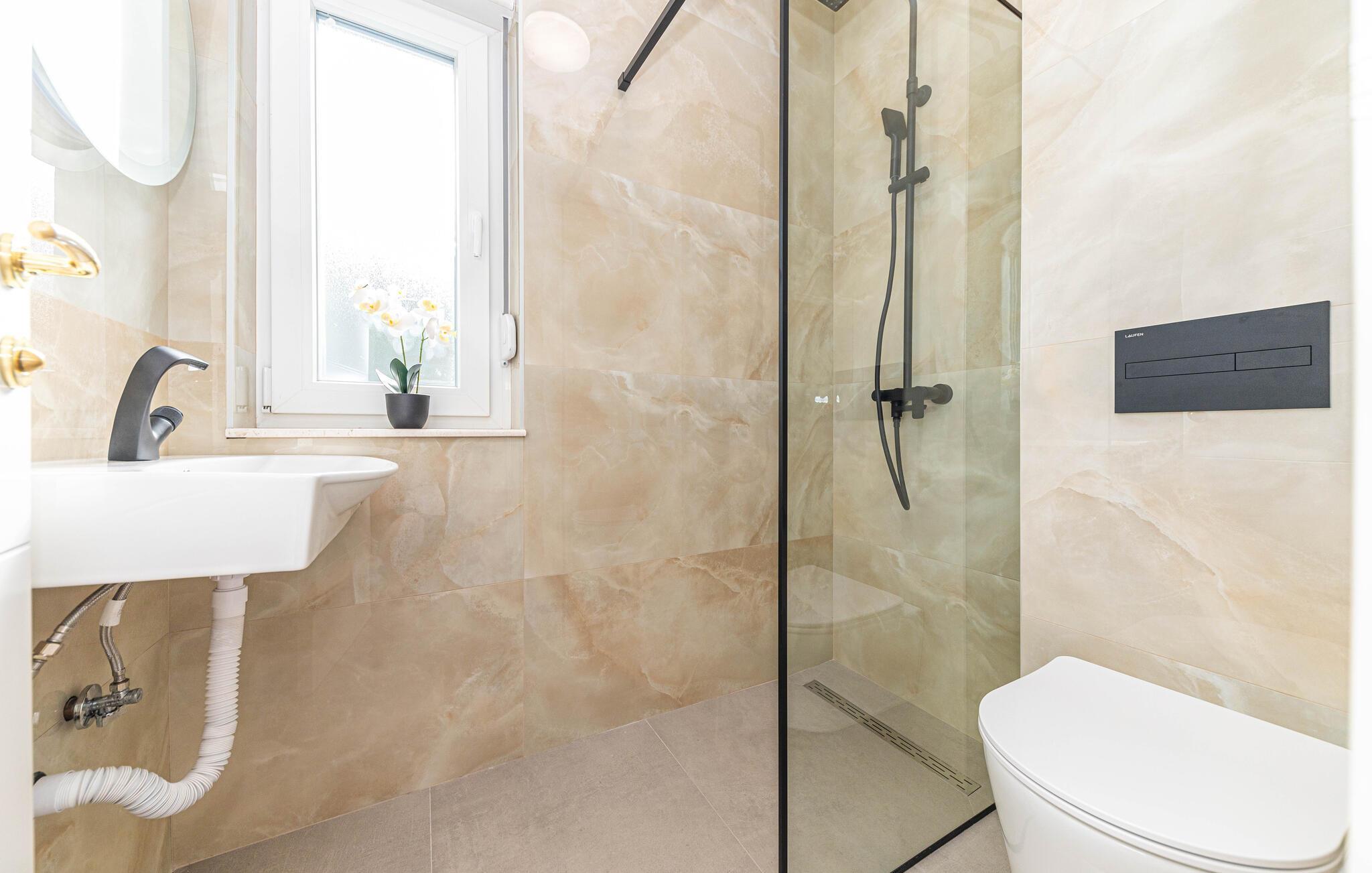 Badezimmer 4m2 (nr. 2) - WC. Warmes und kaltes Wasser. Dusche