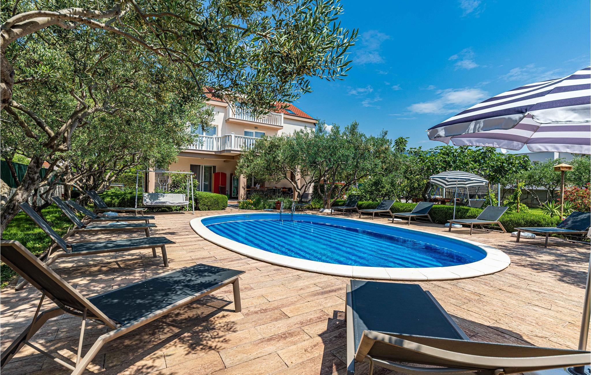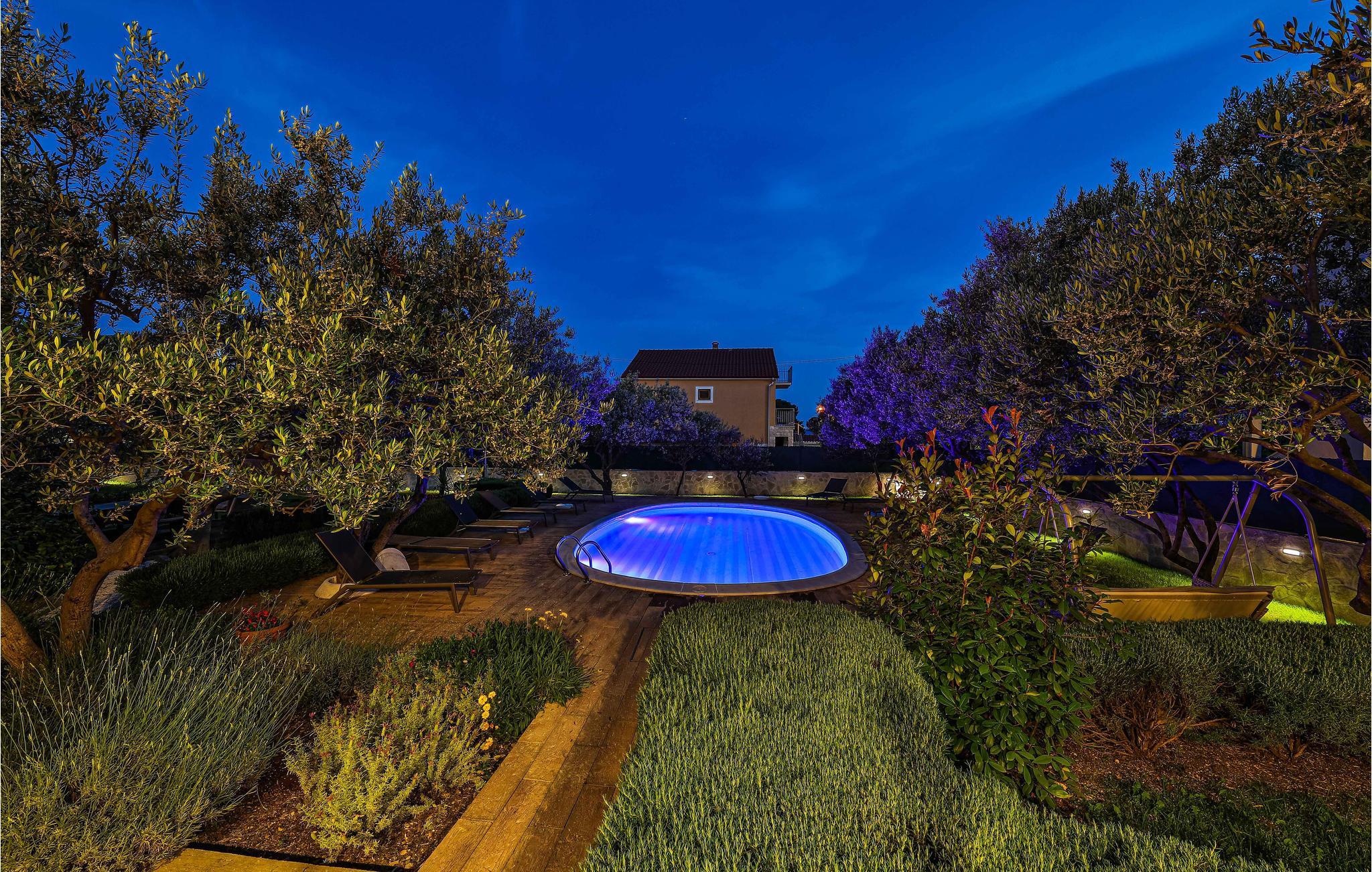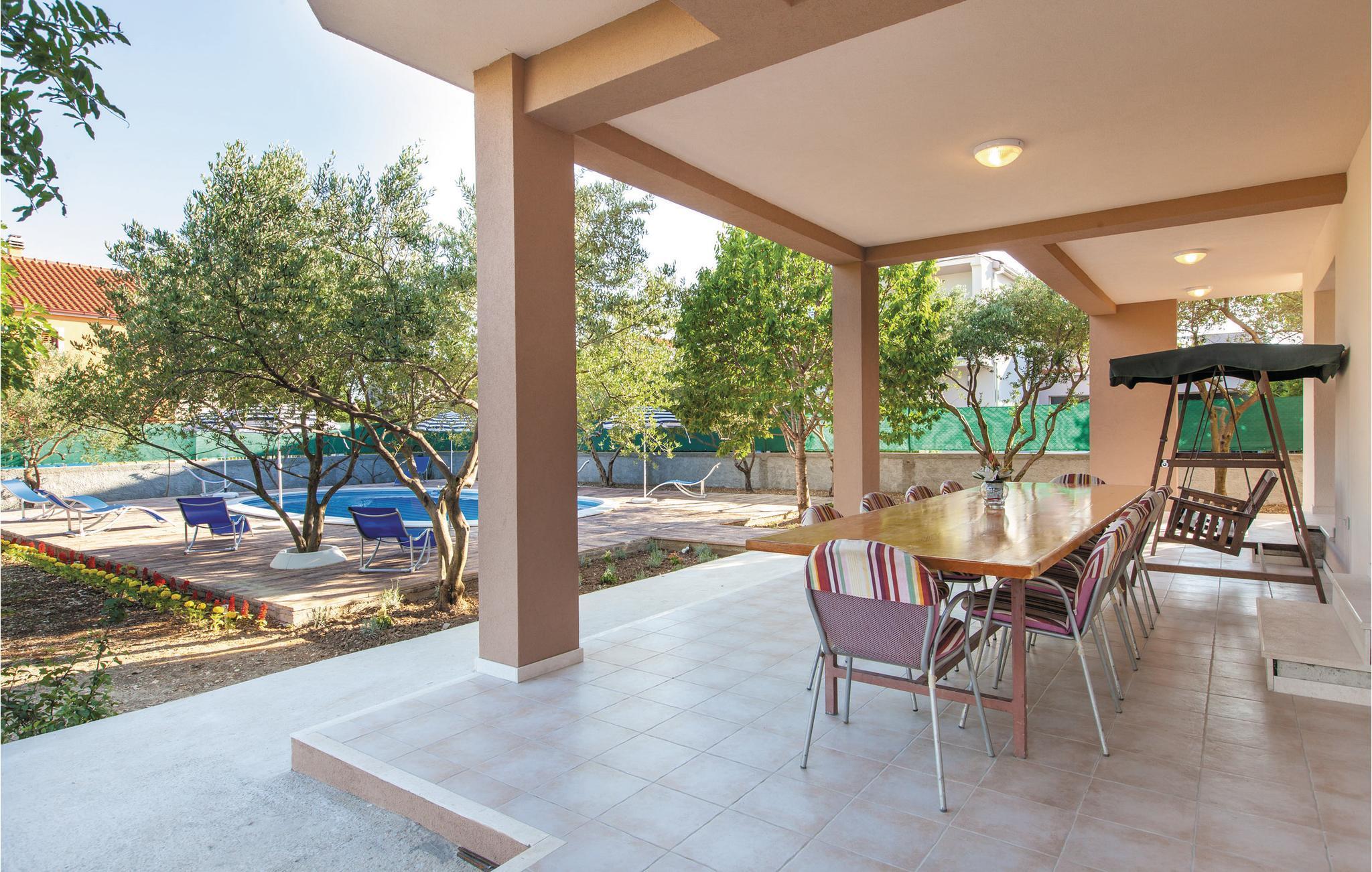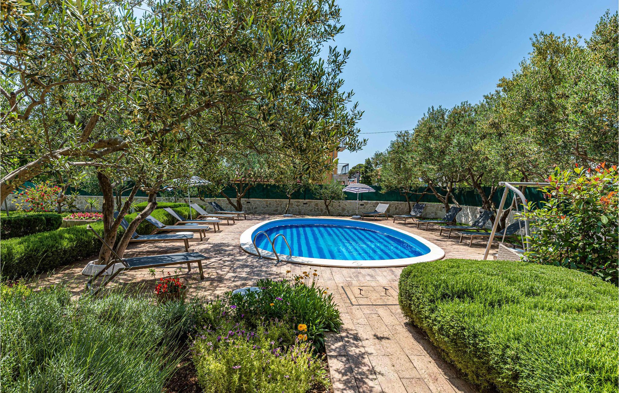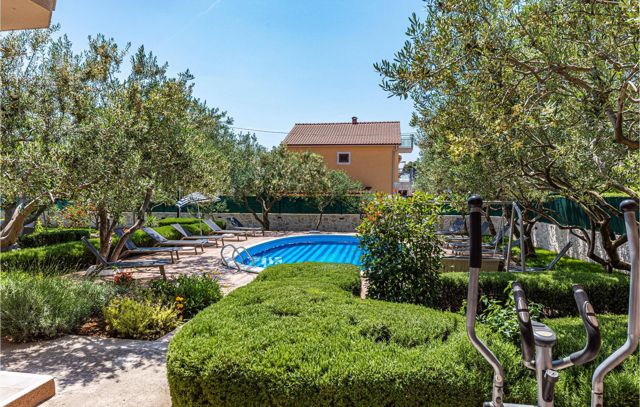 Moderne Ferienvilla mit Pool in Kastel Stafilic, ist ideal für den gemeinsamen Urlaub mehrerer Familien. Das Haus erstreckt sich auf drei Etagen, wobei das Erdgeschoss mit den oberen Etagen über eine Außentreppe verbunden ist. Im Erdgeschoss liegen drei Schlafzimmer, zwei Bäder, sowie ein großer Wohnbereich mit Esszimmer und Küche. Im 1. Stock sind eine Teeküche, zwei Bade- und Schlafzimmer sowie ein Freizeitraum. Über Innentreppen erreichen Sie das Dachgeschoss (mind. Deckenhöhe 100 cm) mit Teeküche und dem Wohnbereich, sowie zwei Bade- und Schlafzimmer. Der große Garten mit Pool sowie einem Volleyballspielfeld runden den Urlaub ab. Die Nähe zur historischen Stadt Trogir sowie zum Flughafen und dem Strand macht diese Destination besonders interessant.