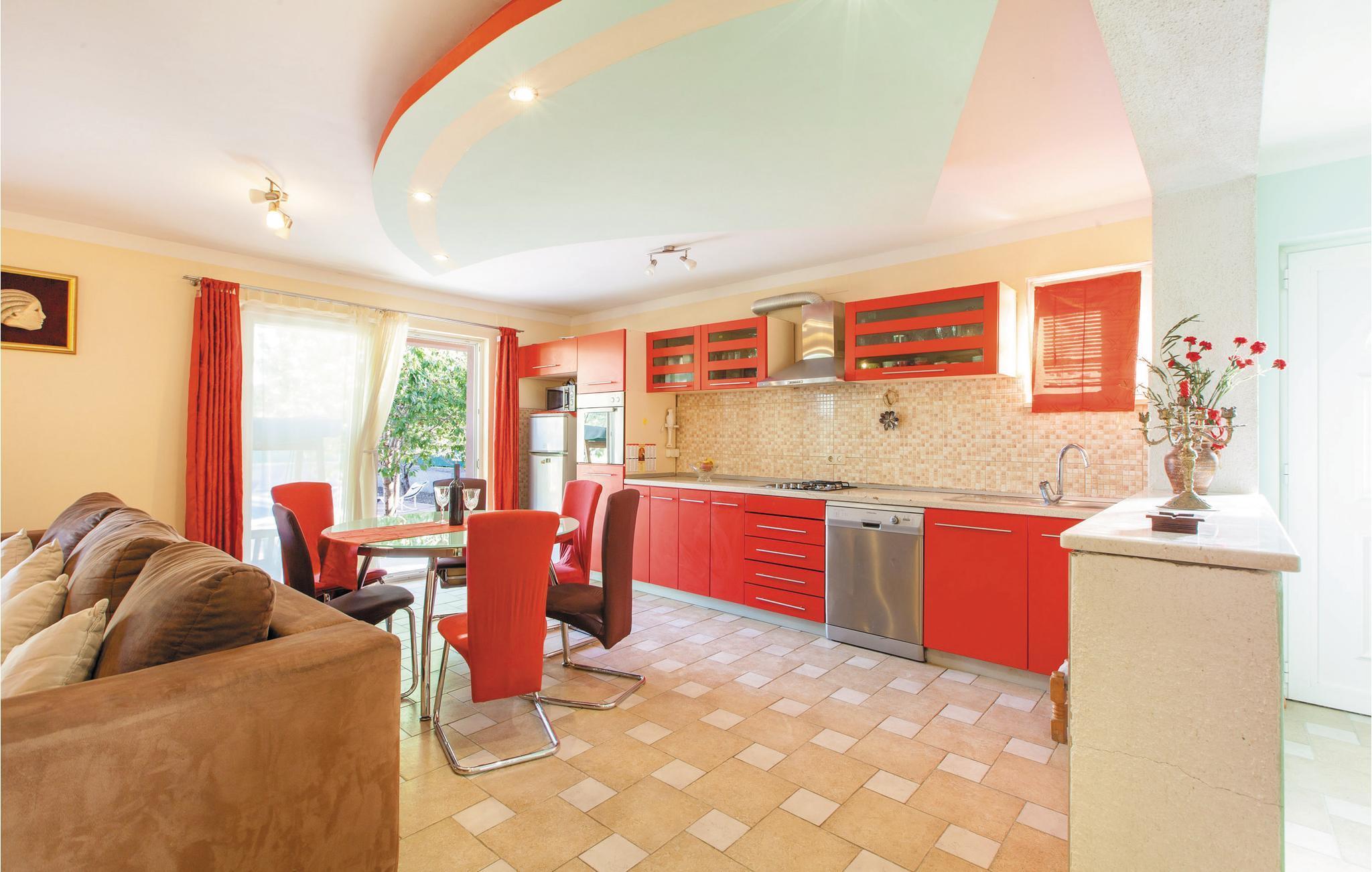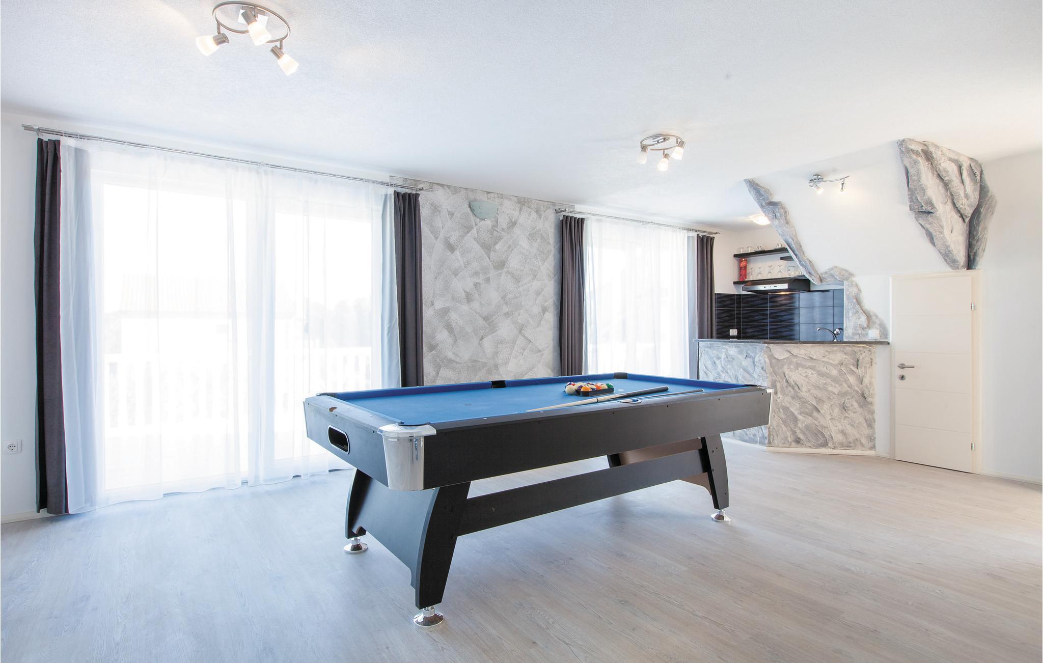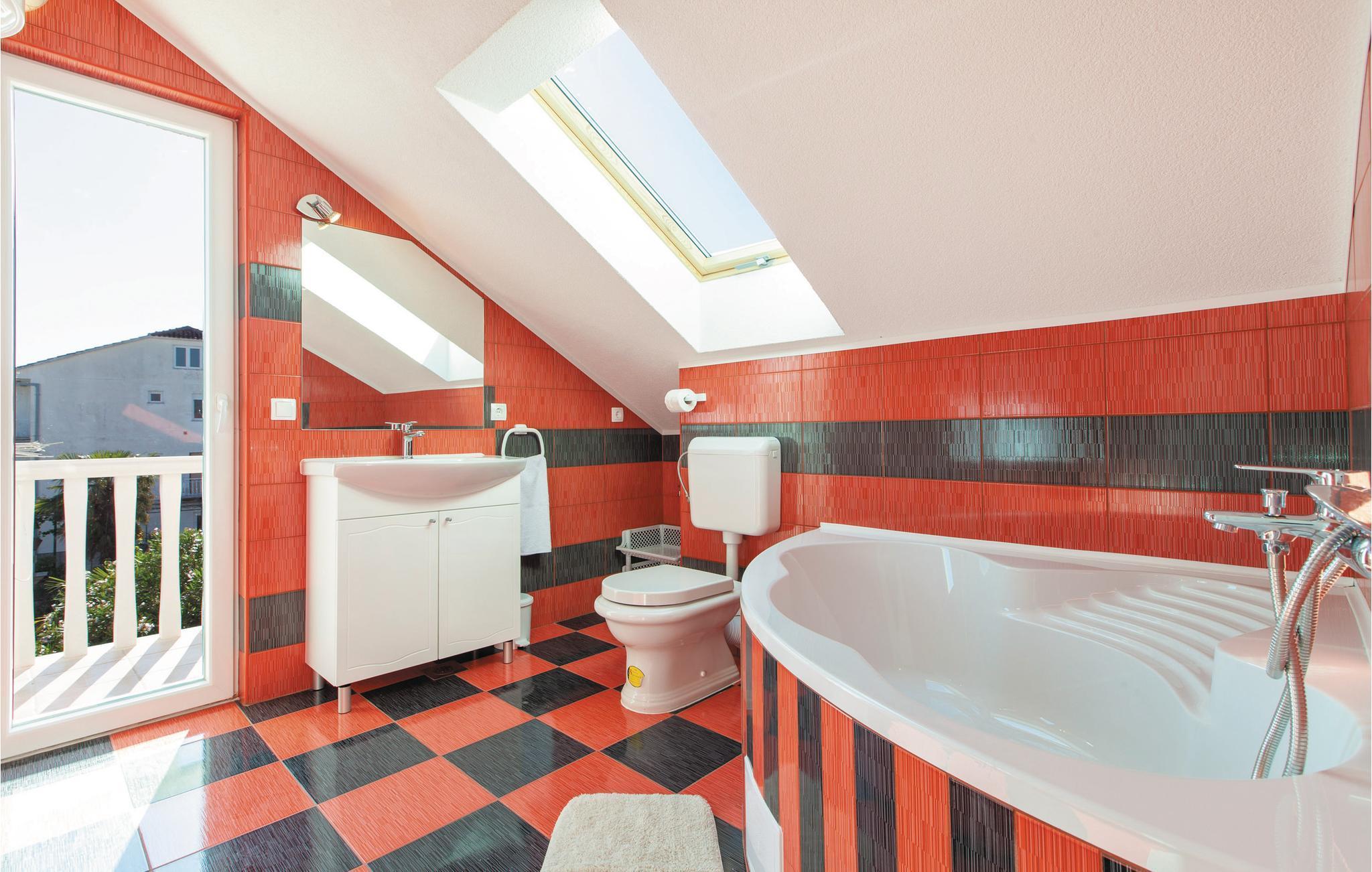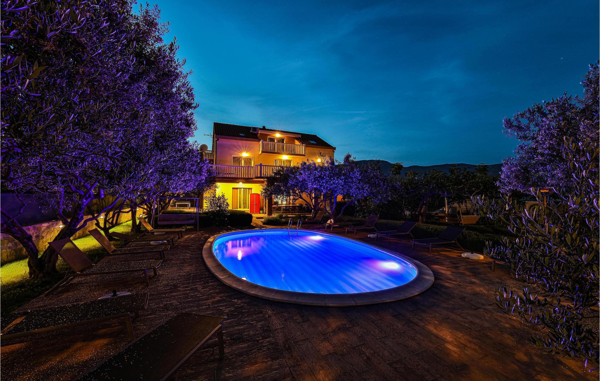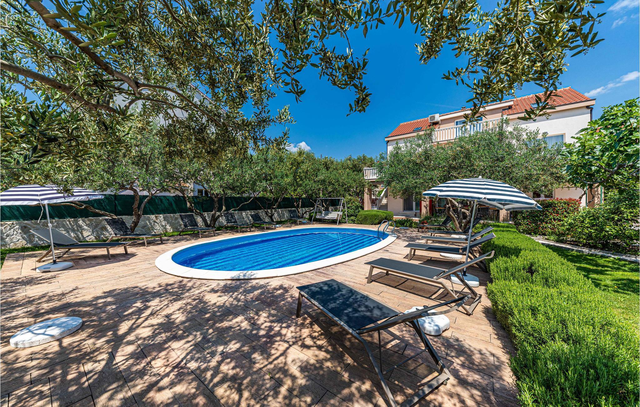 Moderne Ferienvilla mit Pool in Kastel Stafilic, ist ideal für den gemeinsamen Urlaub mehrerer Familien. Das Haus erstreckt sich auf drei Etagen, wobei das Erdgeschoss mit den oberen Etagen über eine Außentreppe verbunden ist. Im Erdgeschoss liegen drei Schlafzimmer, zwei Bäder, sowie ein großer Wohnbereich mit Esszimmer und Küche. Im 1. Stock sind eine Teeküche, zwei Bade- und Schlafzimmer sowie ein Freizeitraum. Über Innentreppen erreichen Sie das Dachgeschoss (mind. Deckenhöhe 100 cm) mit Teeküche und dem Wohnbereich, sowie zwei Bade- und Schlafzimmer. Der große Garten mit Pool sowie einem Volleyballspielfeld runden den Urlaub ab. Die Nähe zur historischen Stadt Trogir sowie zum Flughafen und dem Strand macht diese Destination besonders interessant.