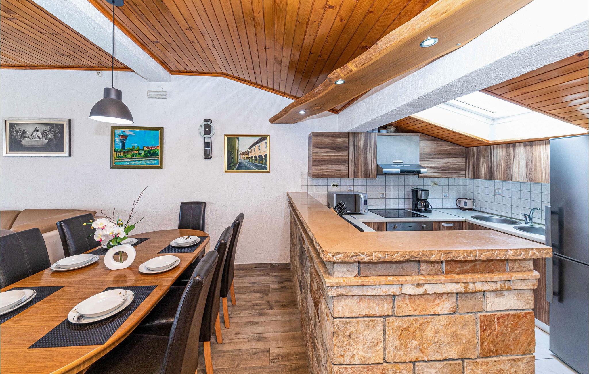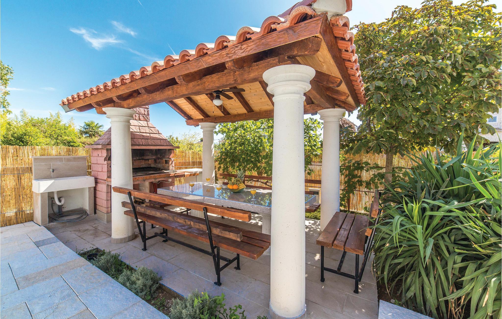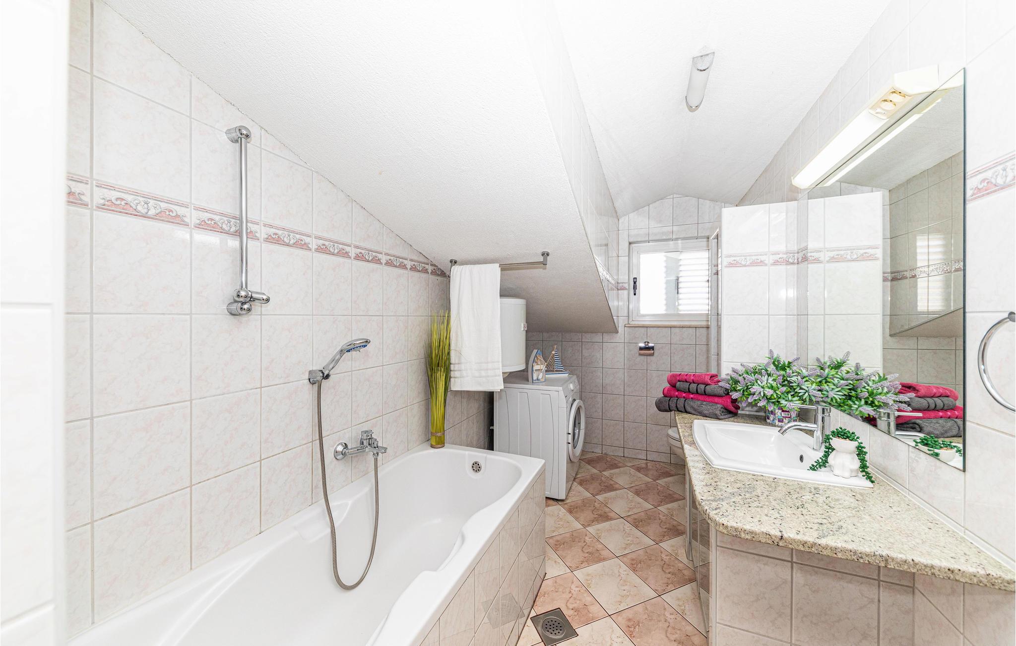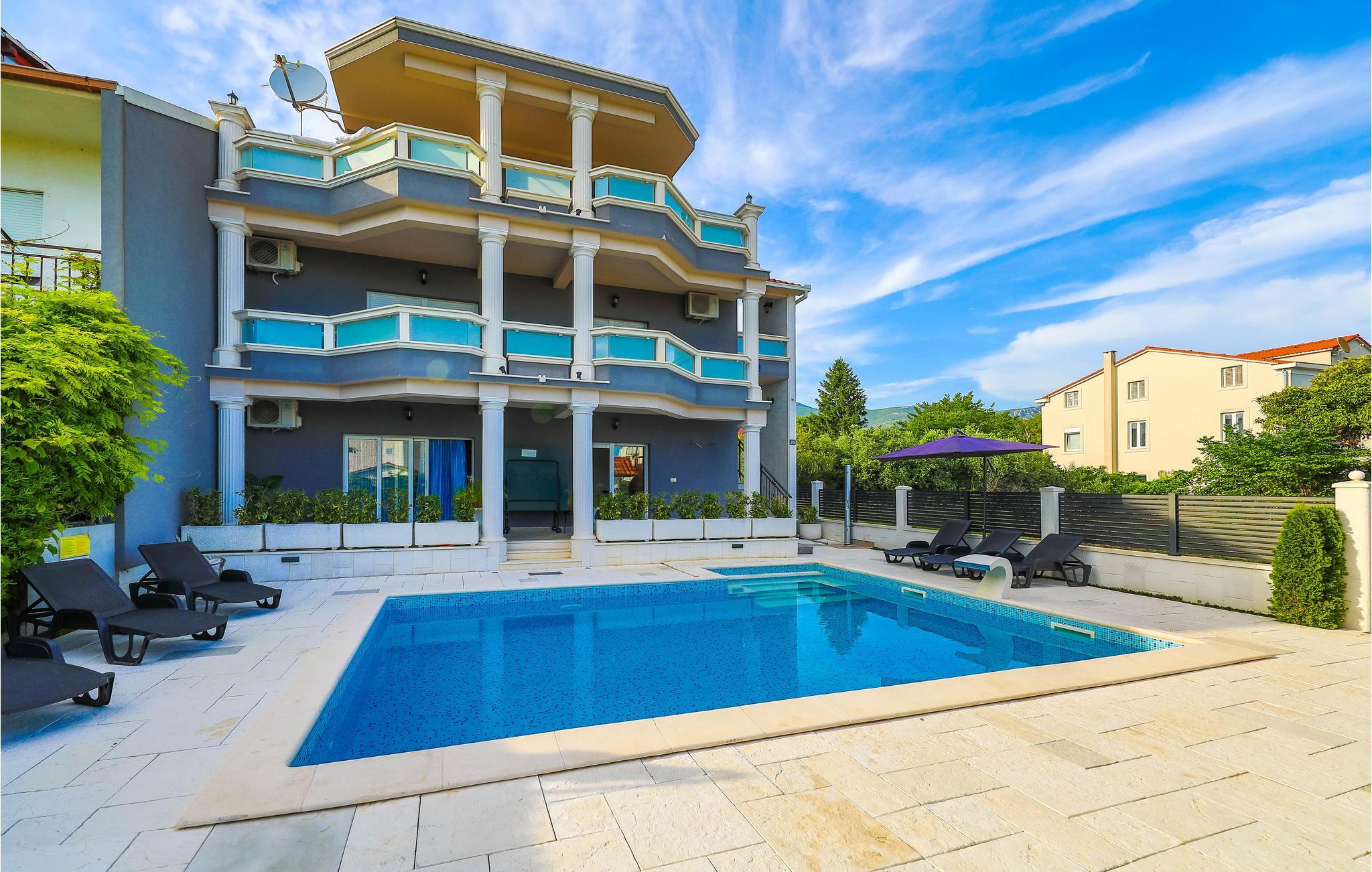 In einem neuen und modernen Wohnhaus befinden sich diese zwei komfortablen Ferienwohnungen in der ersten und zweiten Etage. Jedem Apartment stehen zwei Fahrräder zur Verfügung sowie ein Gemeinschaftspool für eine Erfrischung an heißen Sommertagen. Auf dem Grundstück befinden sich ein Pavillon mit Grill und ein Kinderspielplatz. Im Erdgeschoß liegt für sportliche Gäste ein gemeinschaftlicher Fitnessraum. In ca. 8 km Entfernung erreichen Sie die Stadt Trogir mit einer Vielzahl von Sehenswürdigkeiten, Sport- und Freizeitmöglichkeiten sowie kulturelle Veranstaltungen. Jeder Ferienwohnung stehen je zwei Parkplätze im Schatten zur Verfügung.