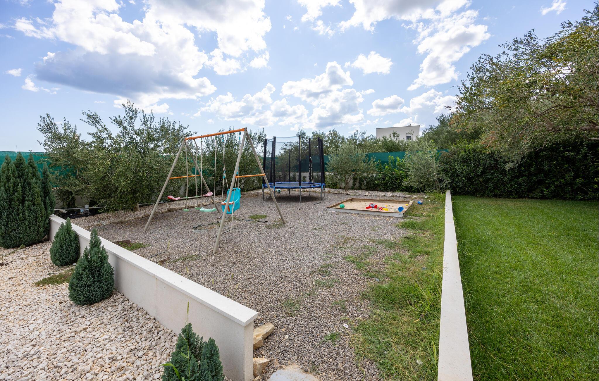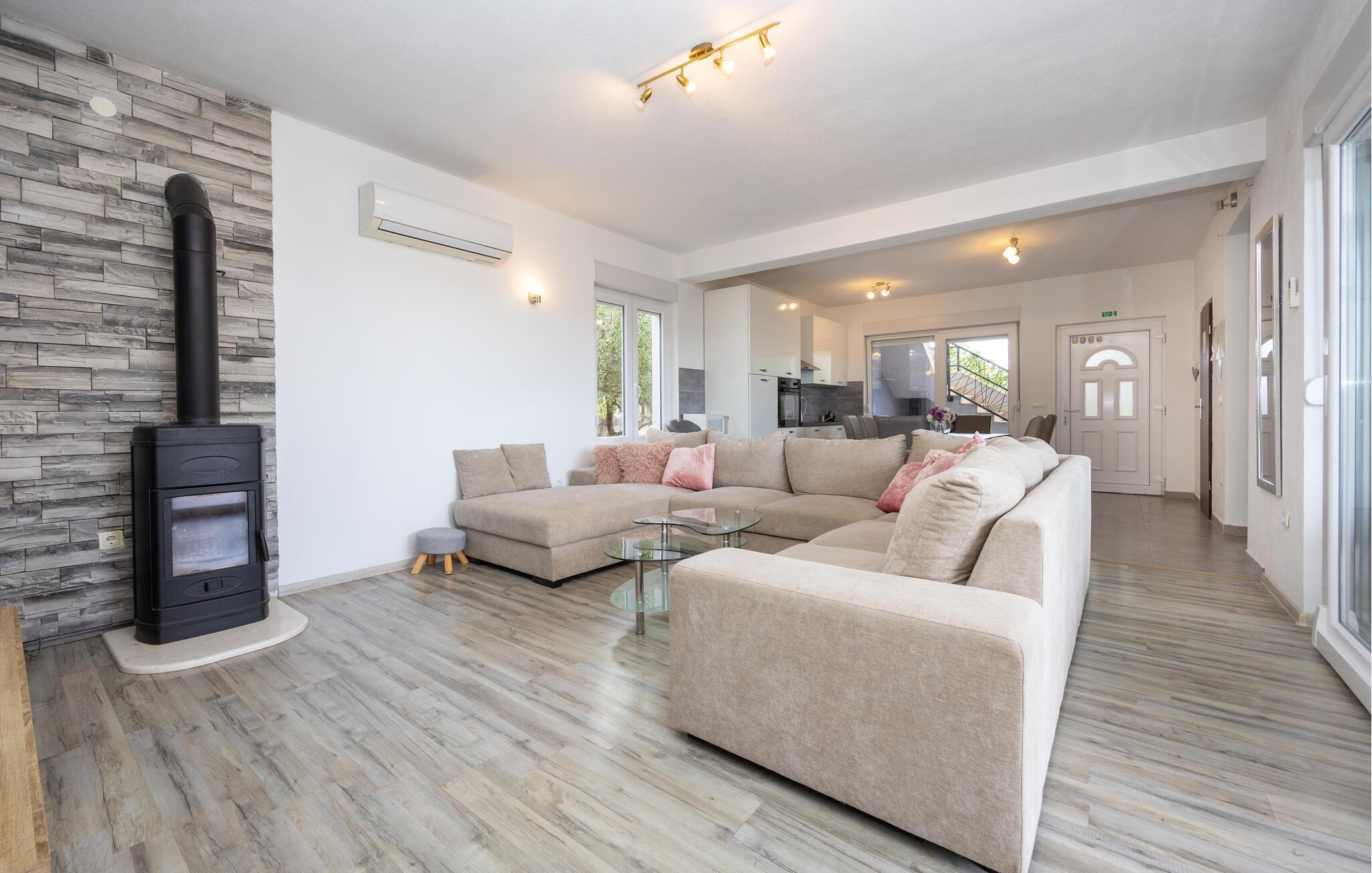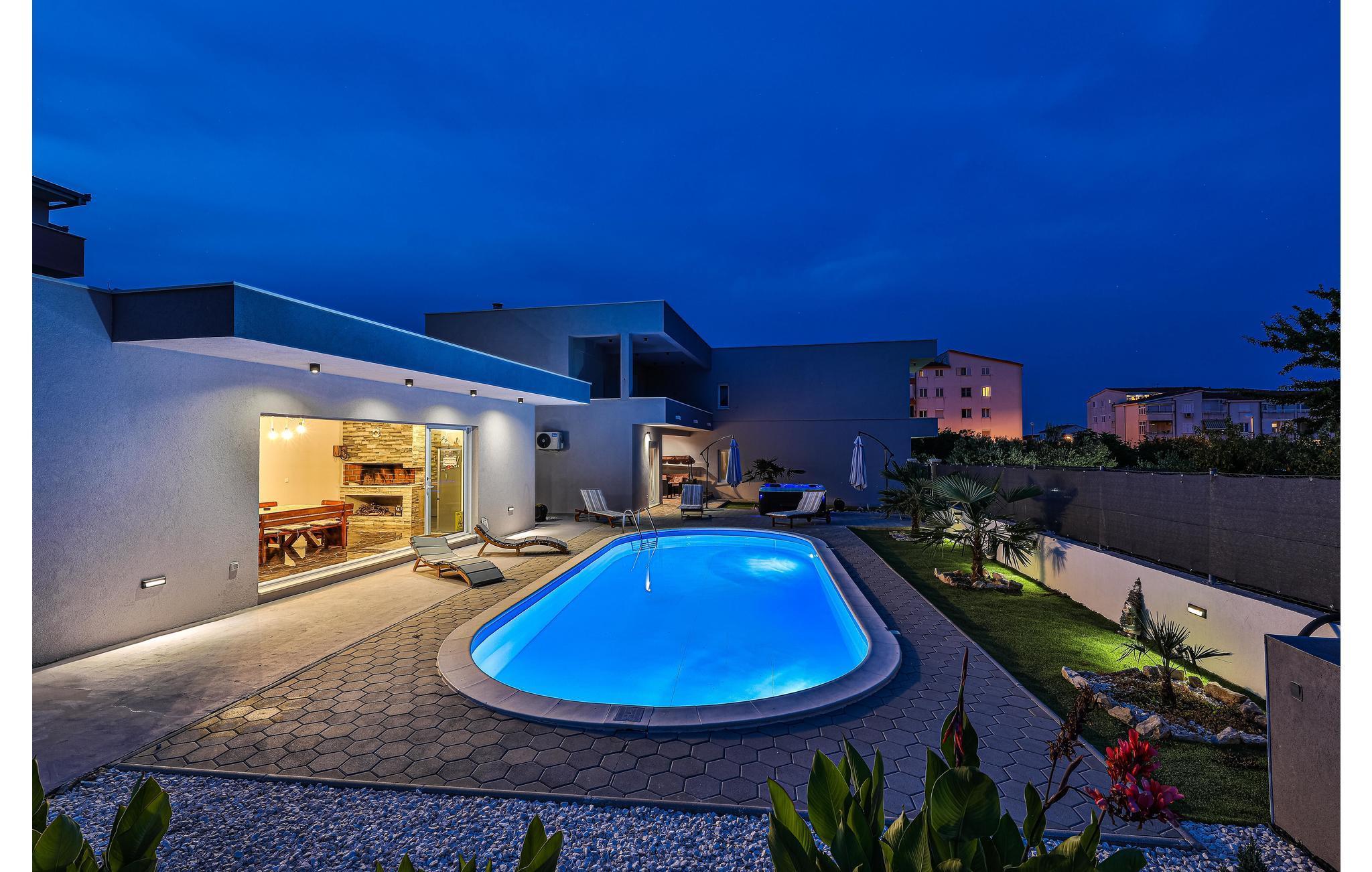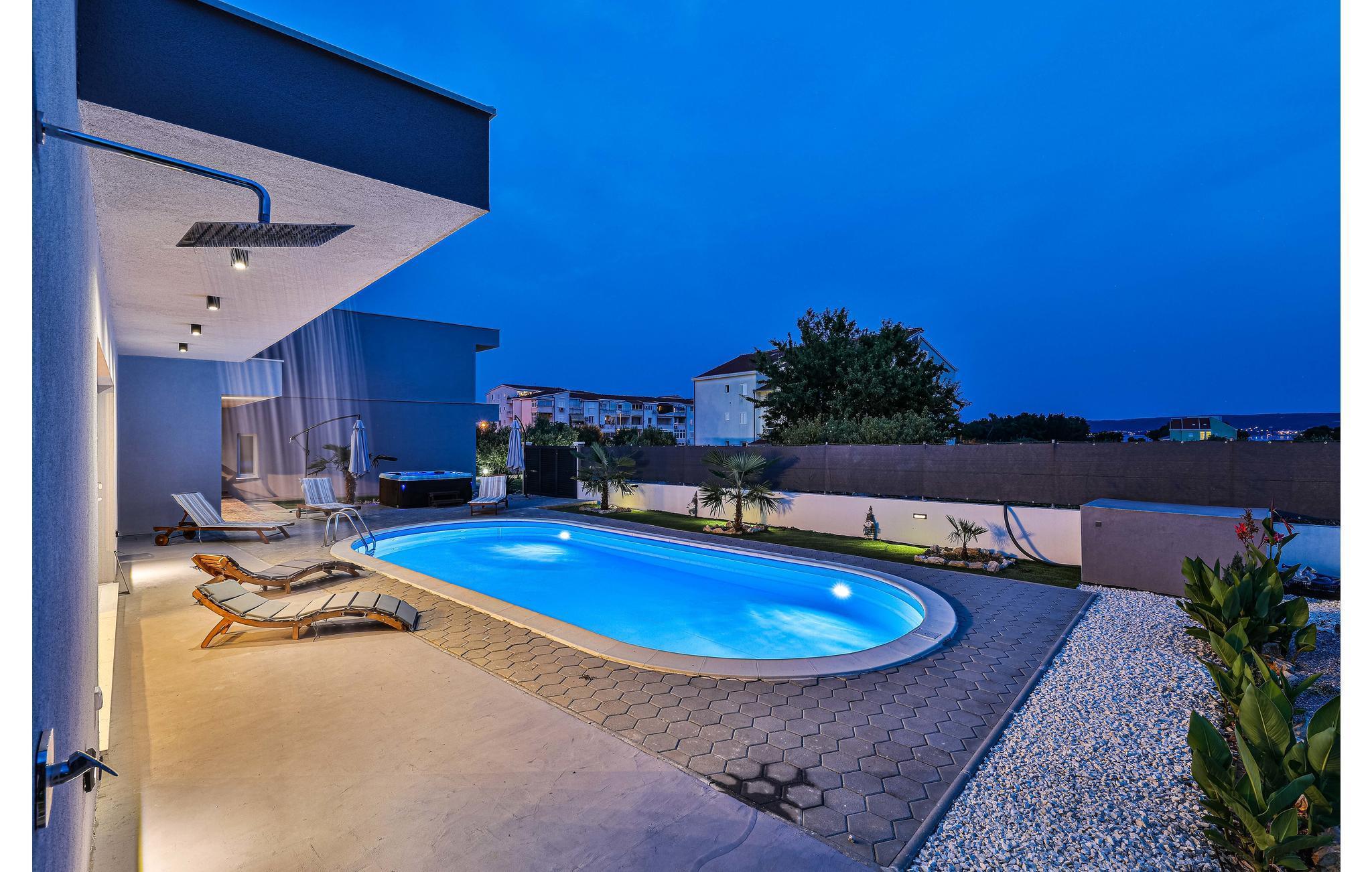 Das Ferienhaus mit Pool und geschmackvollem Interieur, sowie einem geräumigen Exterieur von 1200 m² liegt in einer idyllischen Umgebung, nicht weit von Trogir (6 km) und Split (18 km). Besuchen Sie in der Nähe die Krka Wasserfälle, den Wallfahrtsort Medugorje, den Blaue See und die Ruinenstadt Salona. Der Bungalow besteht aus einer Wohnküche, drei Schlafzimmern, drei Bädern und zusätzlichem WC. Entspannen Sie auf den Terrassen und nutzen Sie den Grillbereich, der im Sommer unabkömmlich ist. Erfrischen können Sie sich im Pool vor dem Haus oder im Meer, etwa 400 m entfernt. Das umzäunte Grundstück ermöglicht den Kindern ein unbeschwertes Spielen.