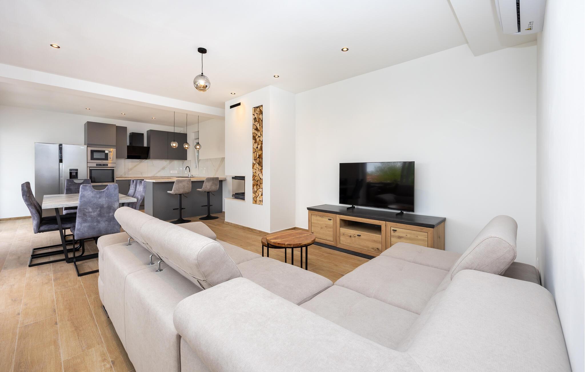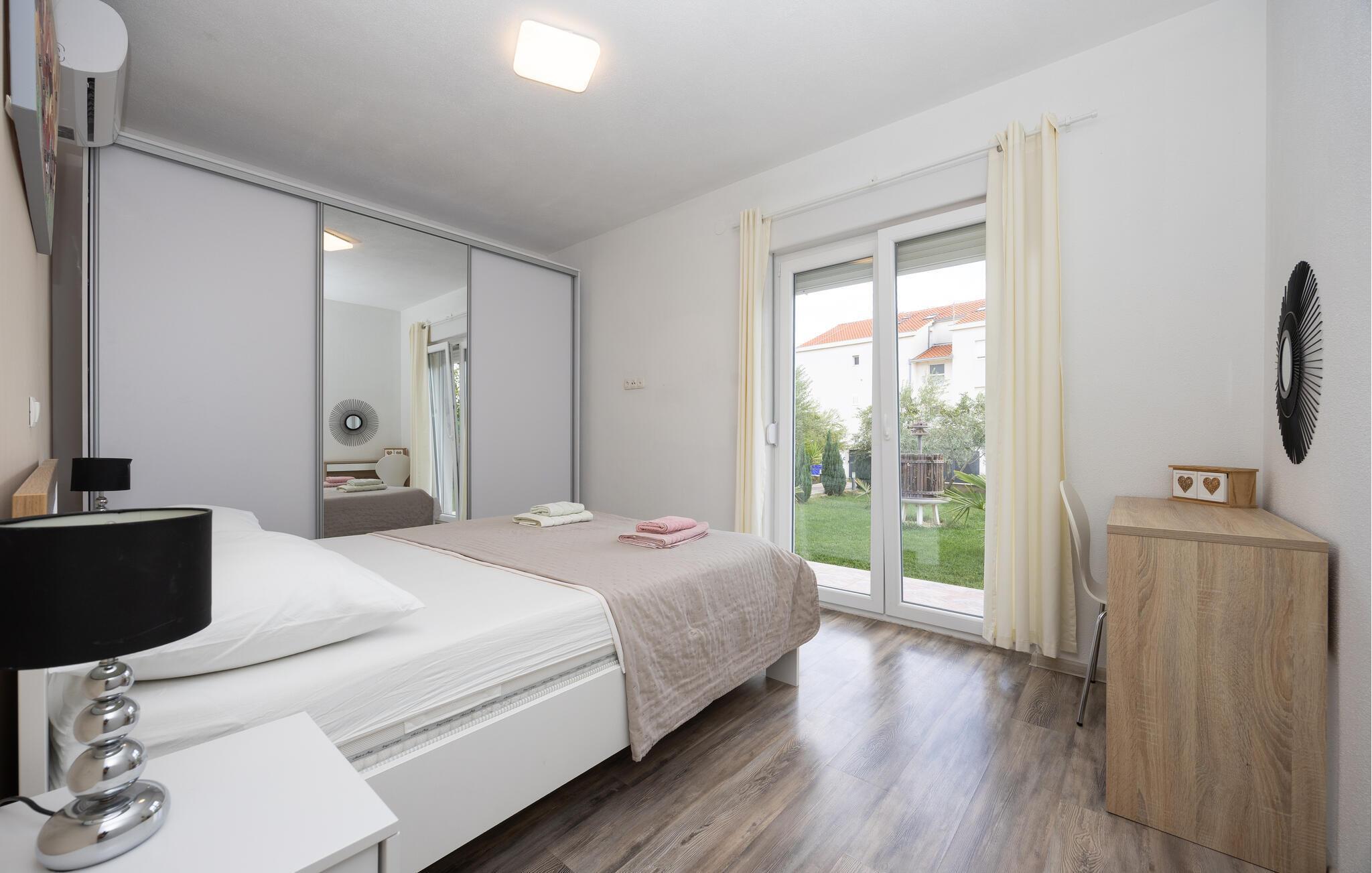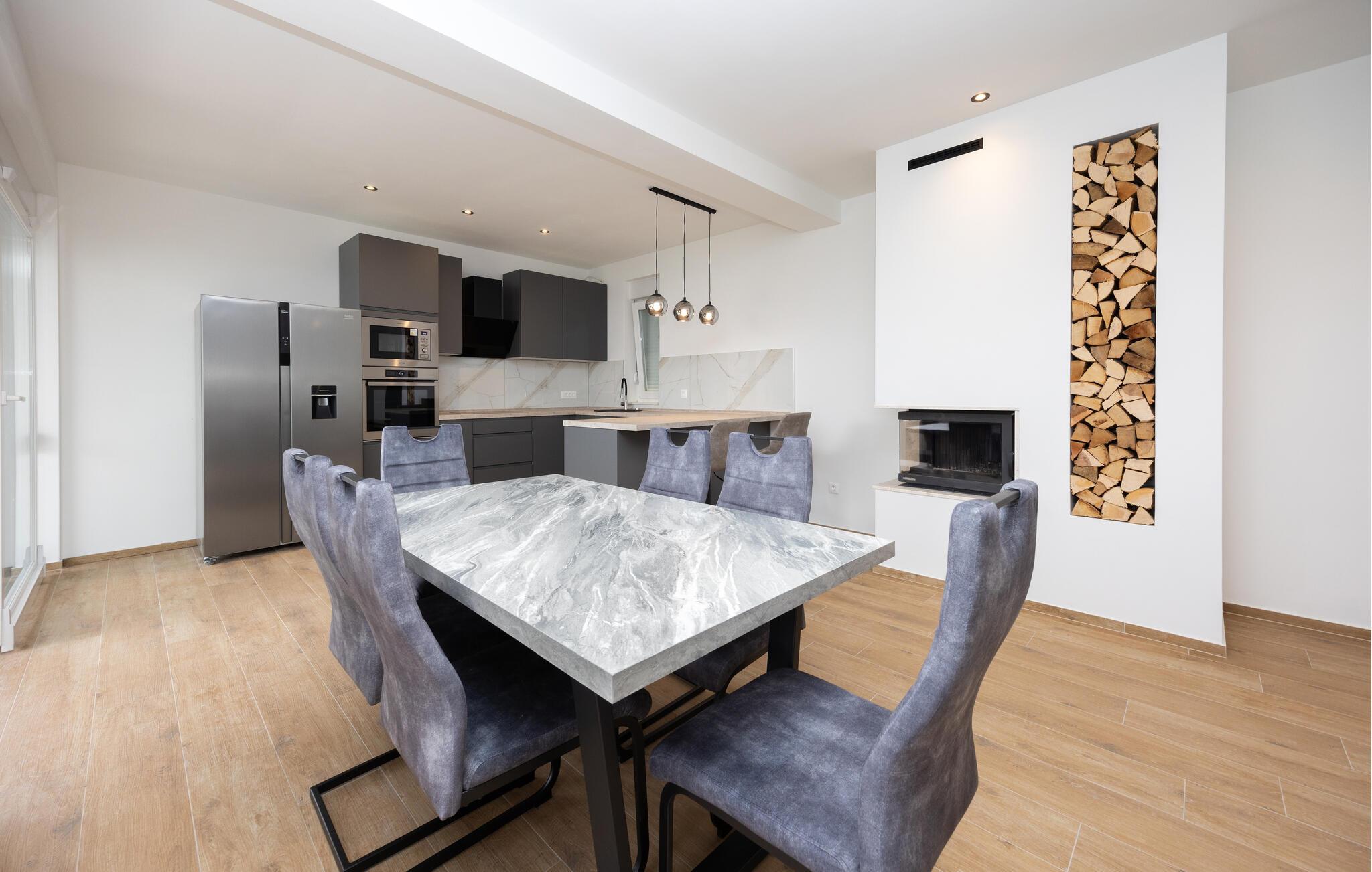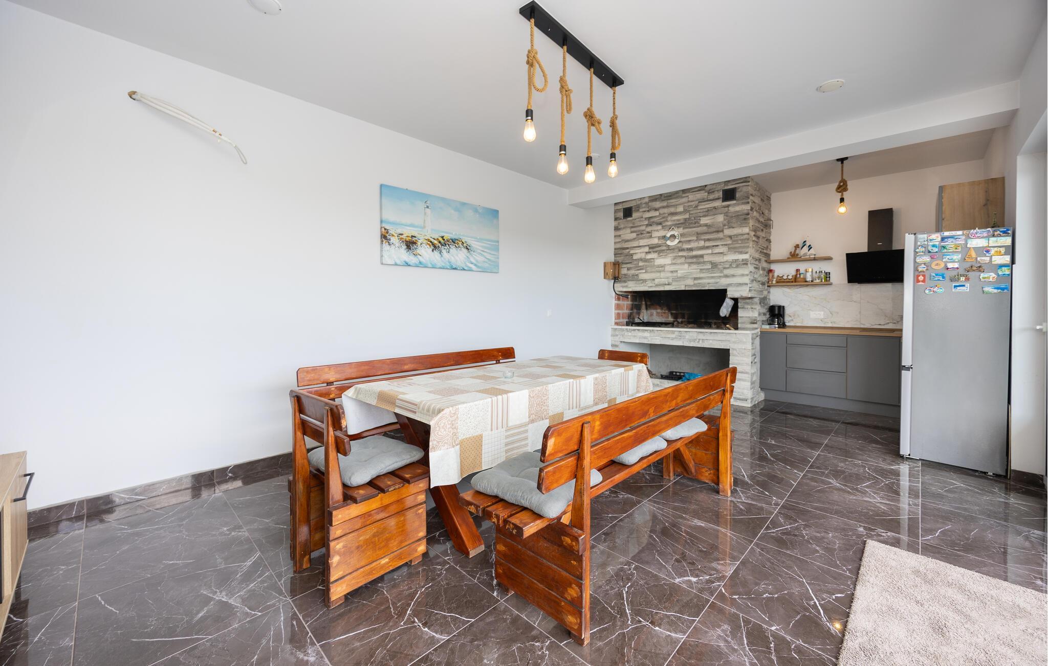 Das Ferienhaus mit Pool und geschmackvollem Interieur, sowie einem geräumigen Exterieur von 1200 m² liegt in einer idyllischen Umgebung, nicht weit von Trogir (6 km) und Split (18 km). Besuchen Sie in der Nähe die Krka Wasserfälle, den Wallfahrtsort Medugorje, den Blaue See und die Ruinenstadt Salona. Der Bungalow besteht aus einer Wohnküche, drei Schlafzimmern, drei Bädern und zusätzlichem WC. Entspannen Sie auf den Terrassen und nutzen Sie den Grillbereich, der im Sommer unabkömmlich ist. Erfrischen können Sie sich im Pool vor dem Haus oder im Meer, etwa 400 m entfernt. Das umzäunte Grundstück ermöglicht den Kindern ein unbeschwertes Spielen.