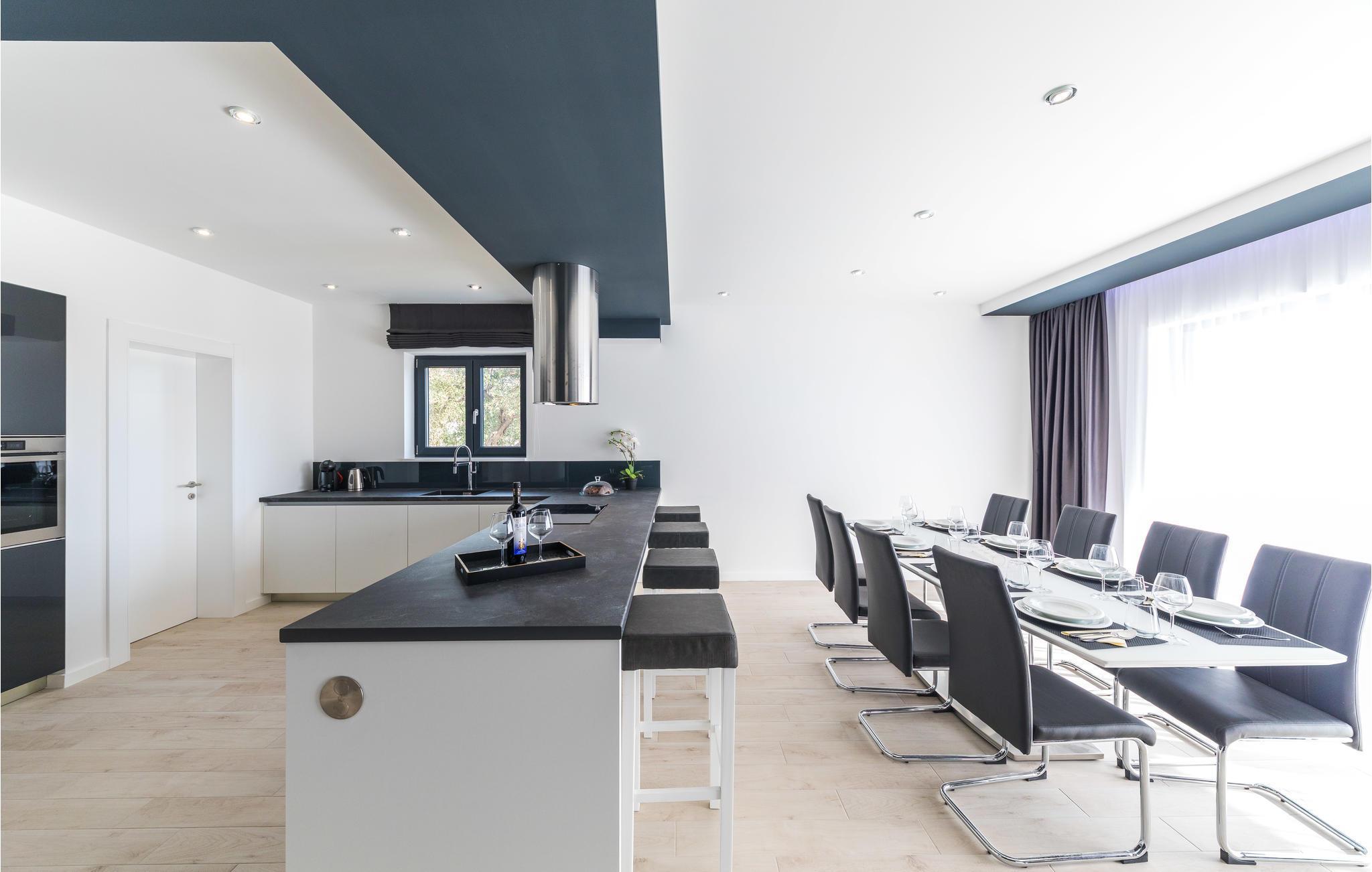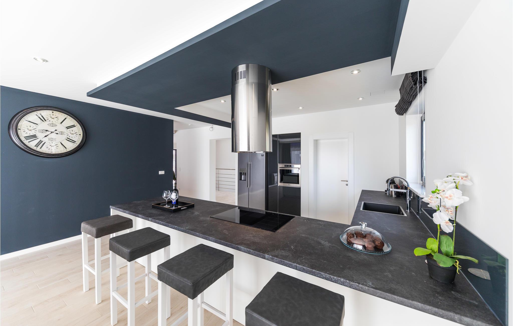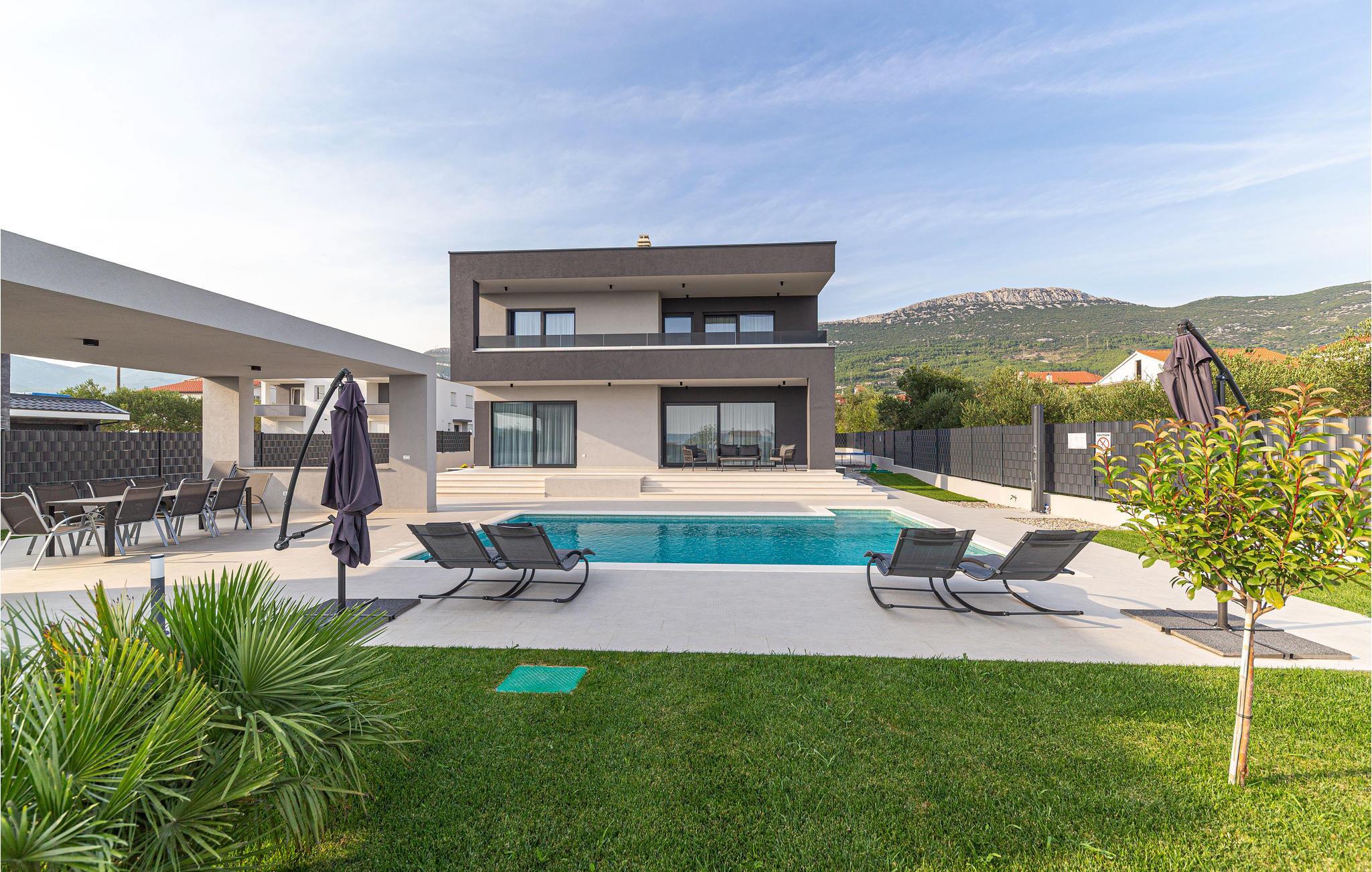 In Kaštel Stari, nicht weit von Trogir entfernt, liegt dieses schöne Ferienhaus mit Pool. Im ersten Stock befindet sich ein geräumiges Wohnzimmer, Küche, WC. Im Flur führen Treppen ins Erdgeschoss, wo sich ein Wasch- und Haushaltsraum befindet. Vom Wohnzimmer und Essbereich gelangen Sie auf eine überdachte Terrasse mit herrlichem Pool, der Ihnen die nötige Erfrischung an heißen Sommertagen bietet. Verbringen Sie auch angenehme Grillabende mit Ihren Lieben. Vom Wohnzimmer aus führen Innentreppen in die zweite Etage mit vier Schlafzimmern und dazugehörigen Bädern, sowie Zugang auf einen Balkon mit Aussicht auf das herrliche Meer. Wir empfehlen Ihnen, während Ihres Aufenthalts die Städte Trogir und Split zu besuchen, die Sie mit zahlreichen kulturell-historischen Sehenswürdigkeiten und einem reichen gastronomischen Angebot überzeugen werden.