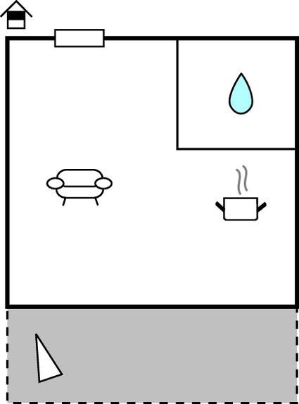 Wohnraum/Küche 25m2 - 2 Schlafmöglichkeiten. (Doppelbett(en)).
