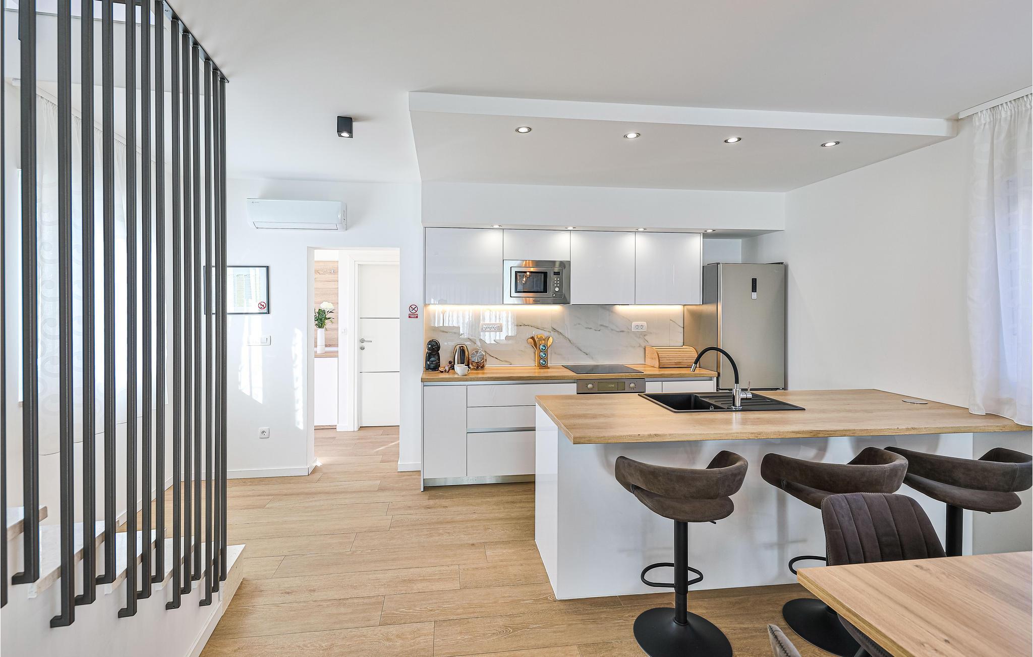Diese moderne Unterkunft werden Sie und Ihre Urlaubsgemeinschaft so richtig genießen können. Nur wenige Kilometer westlich von Split gelegen, erwartet Sie eine brandneue und stilvolle Ausstattung. Dank 4 Schlafzimmern und 4 Badezimmern ist genug Privatsphäre für alle Gäste garantiert. Bei gutem Wetter nehmen Sie Ihre Mahlzeiten wahrscheinlich nur zu gerne im lauschigen Essbereich neben Ihrem eigenen Swimmingpool ein.