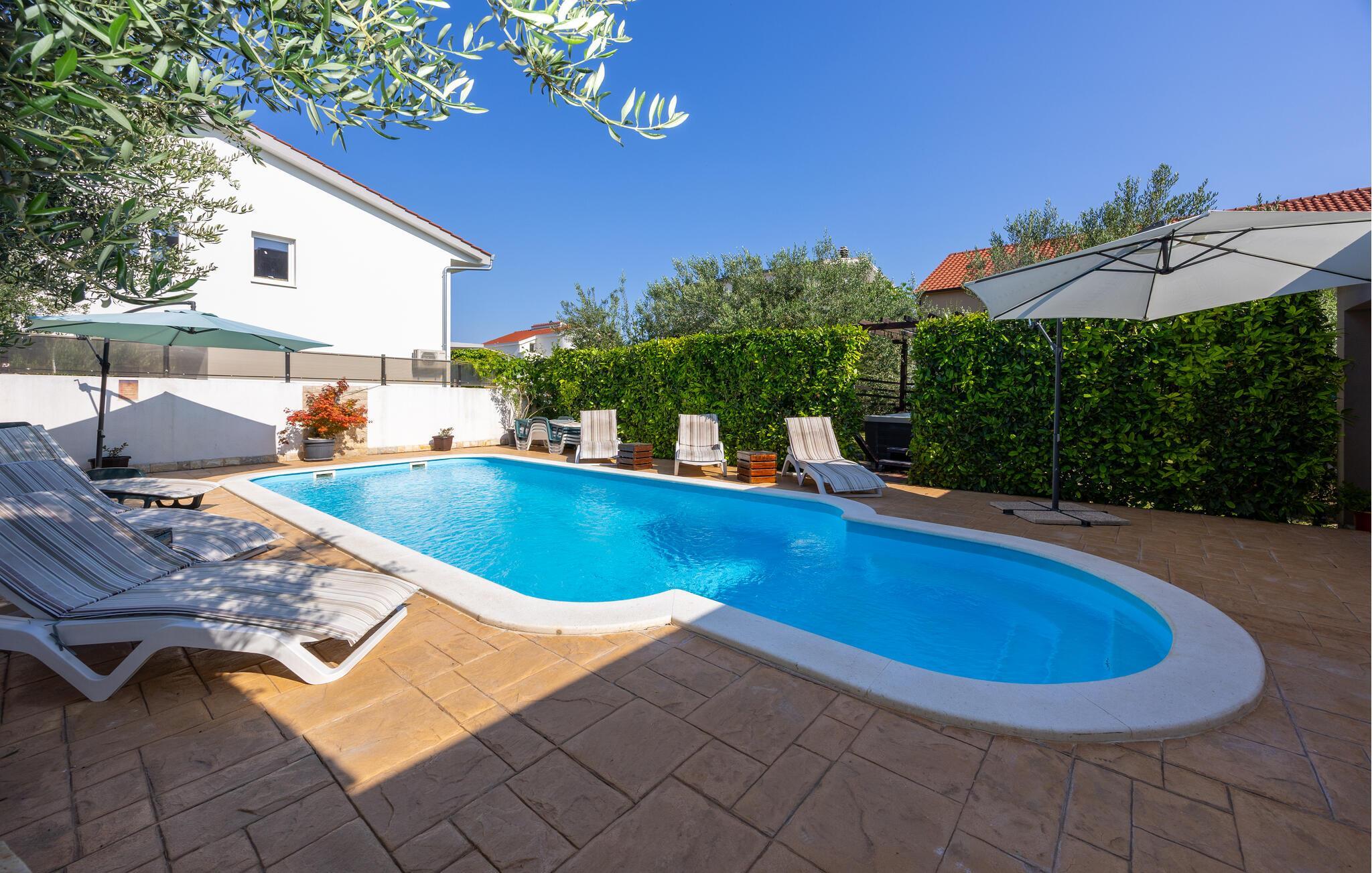 Das Haus liegt zwar ca. 900 m vom Strand entfernt, aber durch die gute Verkehrsverbindung sind Sie in nur etwa 2 Minuten mit dem Auto im Zentrum des Geschehens und von herrlichen Stränden entfernt. Erkunden Sie das historische Trogir, dessen Denkmäler UNESCO-Welterbe sind sowie die 7 Kastelas zwischen Trogir und Split, wo Sie eine Vielzahl von Sommerveranstaltungen in Form von Konzerten, Events und Ausstellungen besuchen können. Lassen Sie sich nieder auf den Strandabschnnitten zwischen diesen malerischen Orten und überzeugen Sie sich vom mediterranen Flair. Die Restaurants an den Uferpromenaden verwöhnen Sie mit Meeresfrüchten und traditionellen Köstlichkeiten.