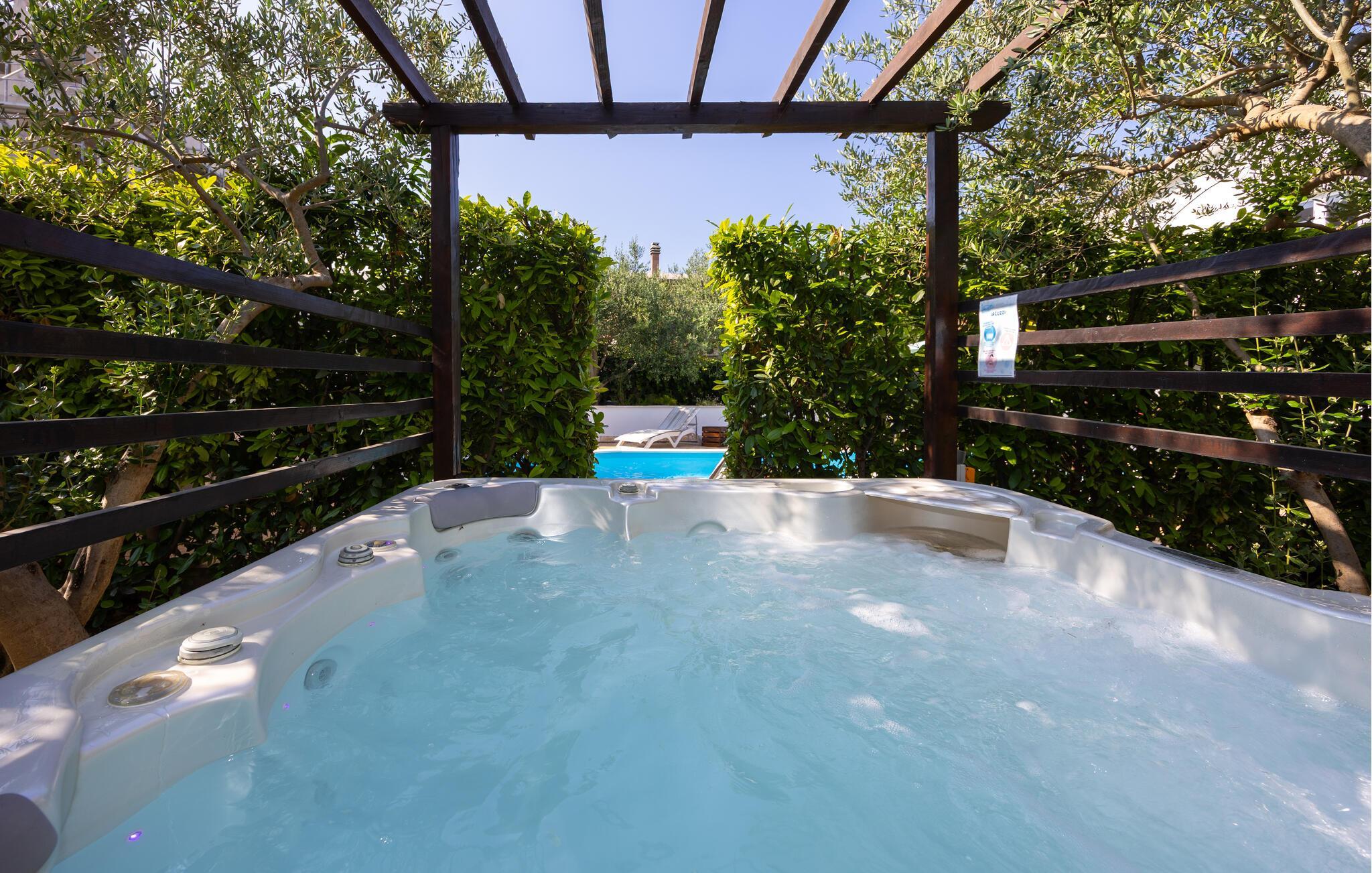 Ihre Wohnung im Erdgeschoss ist komfortabel und einladend und verspricht Ihnen die ideale Umgebung, um zu entspannen. Das Grundstück, auf dem ein Pool dominiert, ist eingezäunt und dadurch eignet es sich gut für Kinder und Haustiere. Der Pool und die Sommerküche sind nur für Sie bestimmt und lässt Sie vollständige Privatsphäre genießen.