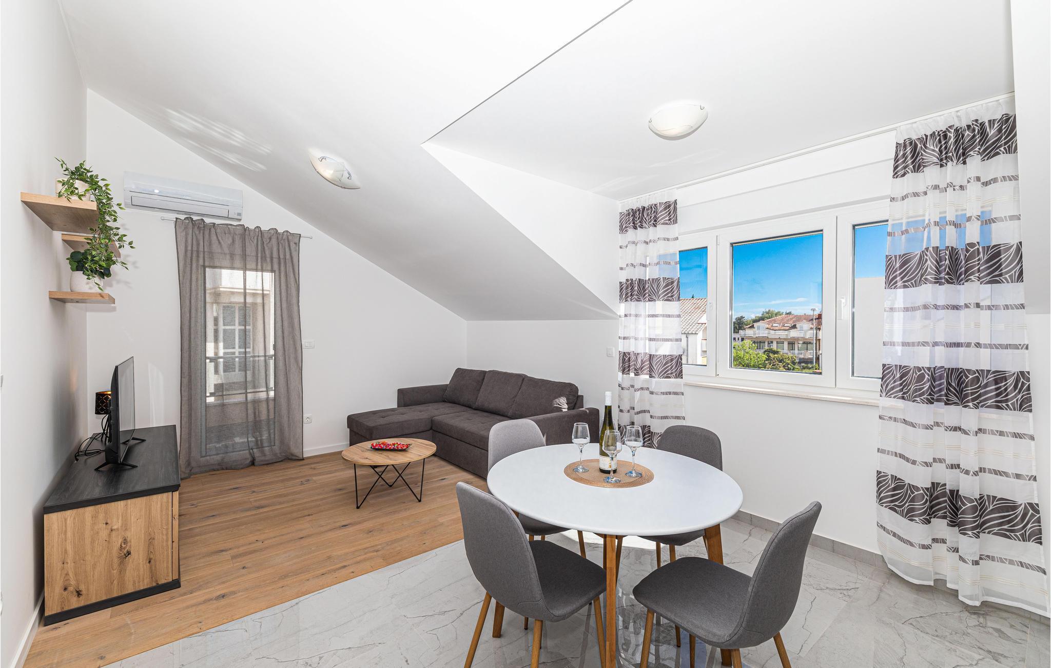 Später können Sie Ihre Strandtasche schnappen und die wenigen Schritte zum Kiesstrand gehen und in das kristallklare Wasser eintauchen. Lassen Sie sich auf der Wasseroberfläche treiben und genießen die Sonne auf Ihrer Haut. Die Lage zwischen Trogir und Split gibt Ihnen viele Ausflugsmöglichkeiten. Entdecken Sie die historischen Städte und flanieren durch die Straßen und Gassen und besichtigen die vielen Sehenswürdigkeiten.