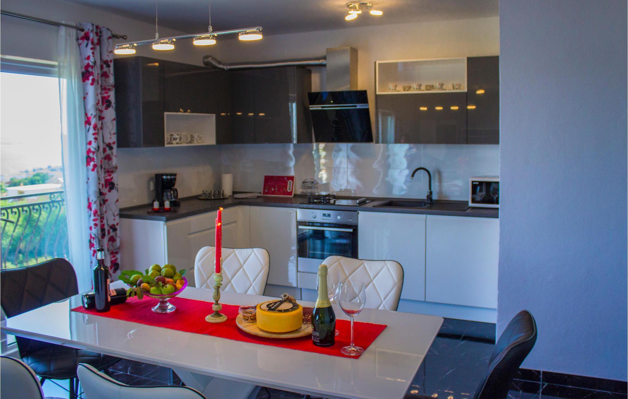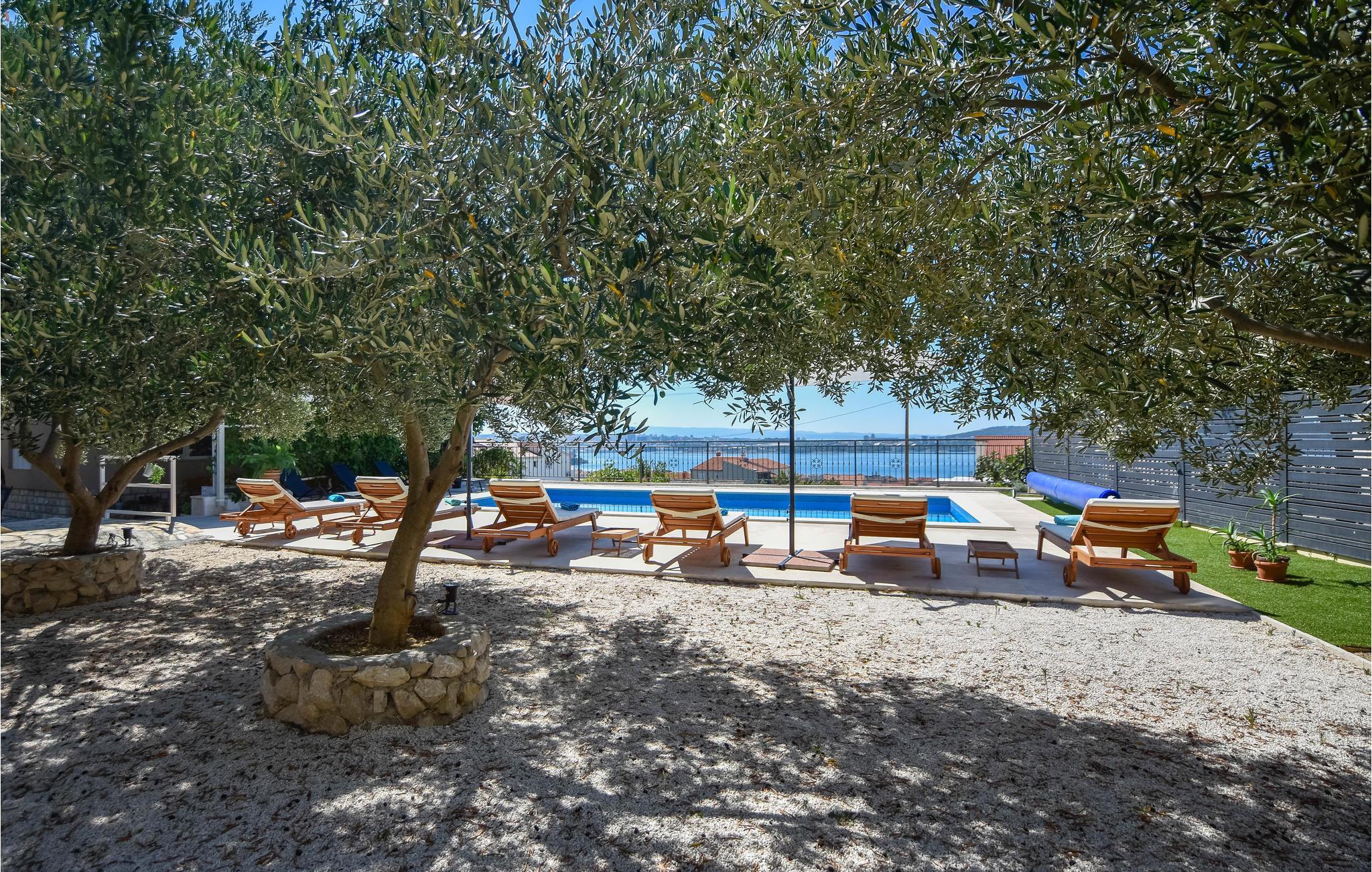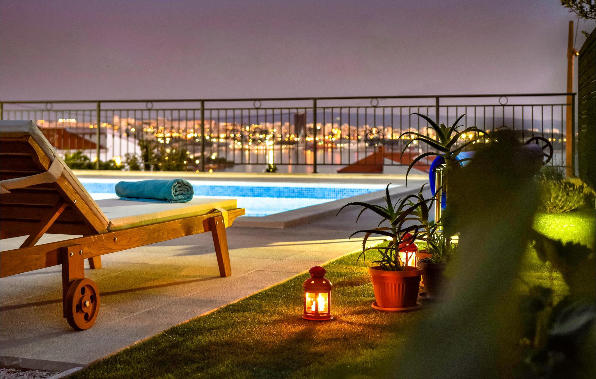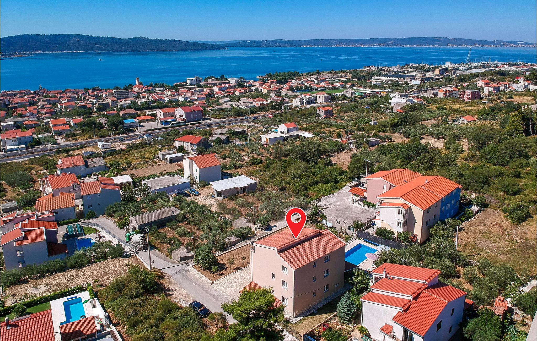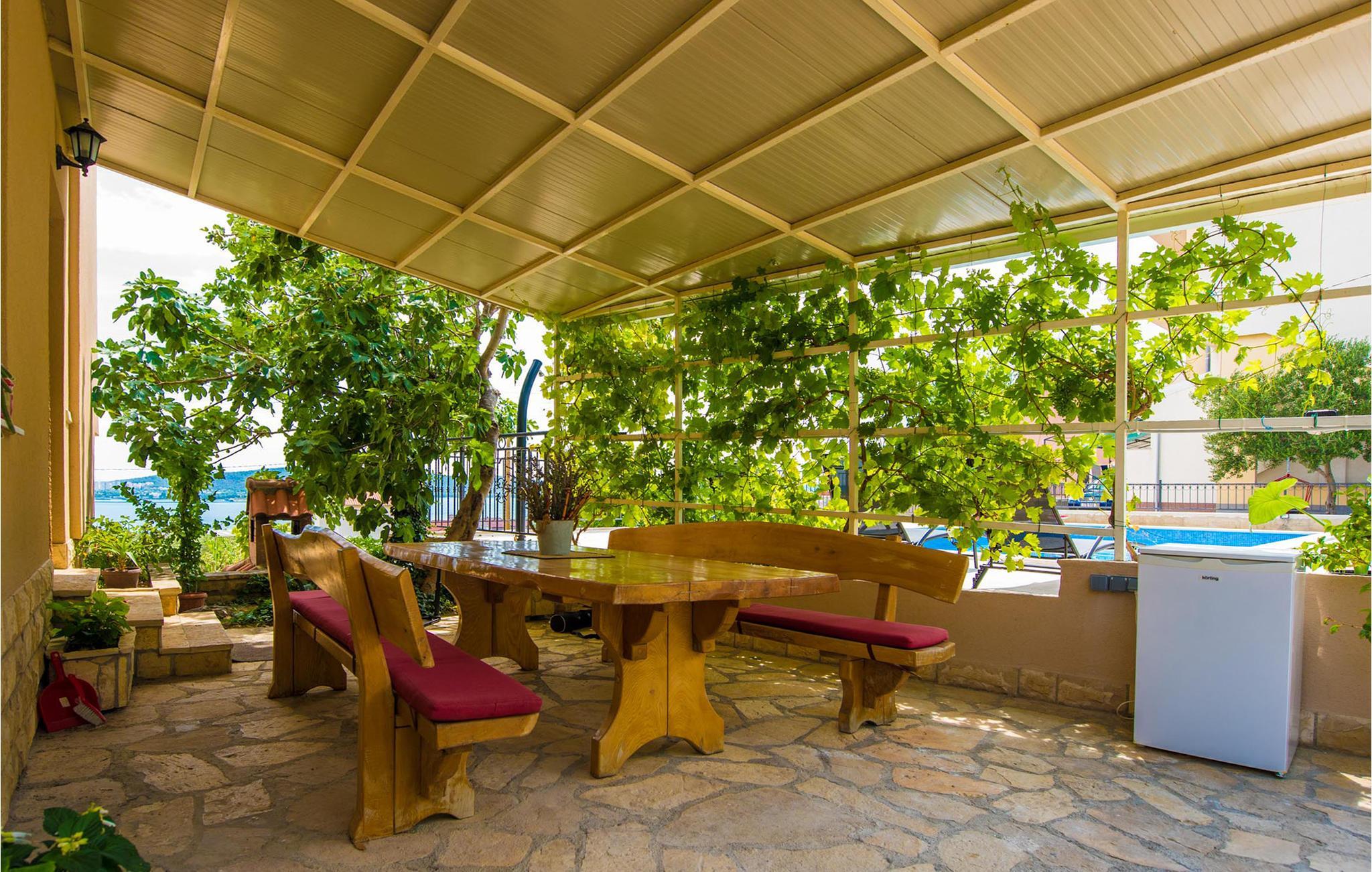 Das komfortable Ferienhaus mit Pool erstreckt sich auf 3 Etagen, die mit Innentreppen verbunden sind. Es eignet sich ideal für einen Urlaub mit mehreren Familien und Freunden. Die Inneneinrichtung im 2. und 3. Stock ist modern mit jeweils 2 Badezimmern pro Etage. Der funktionell eingerichtete 1. Stock bietet Ihnen ebenso einen angenehmen Aufenthalt. Von der Terrasse genießen Sie die Panoramaaussicht auf die ganze Bucht, von Split bis nach Trogir. Im Pool mit Hydromassagedüsen können Sie sich erfrischen und entspannen. Besuchen Sie die historischen Städte Trogir und Split mit vielen kulturell-historischen Sehenswürdigkeiten, vielen Unterhaltungsmöglichkeiten für jede Altersgruppe und Restaurants mit hervorragender Dalmatinischer Küche.