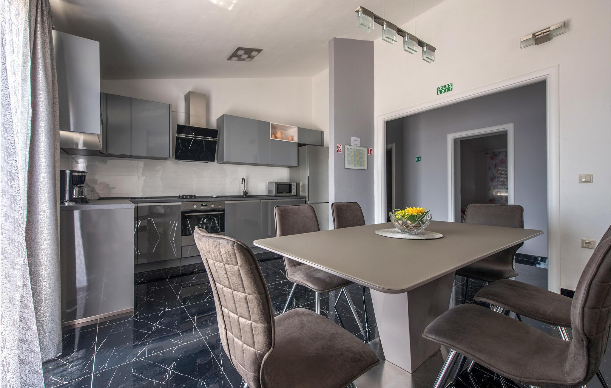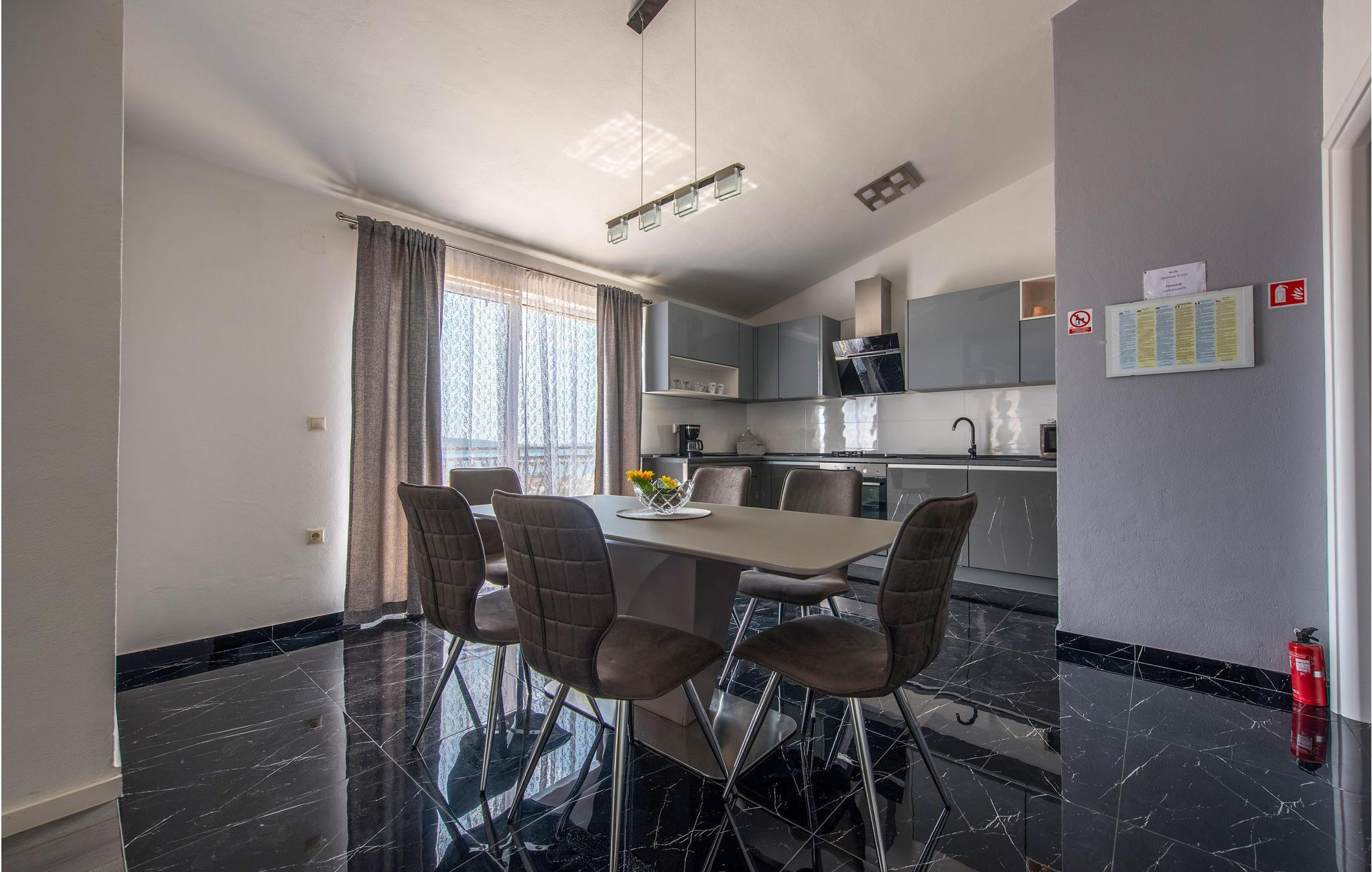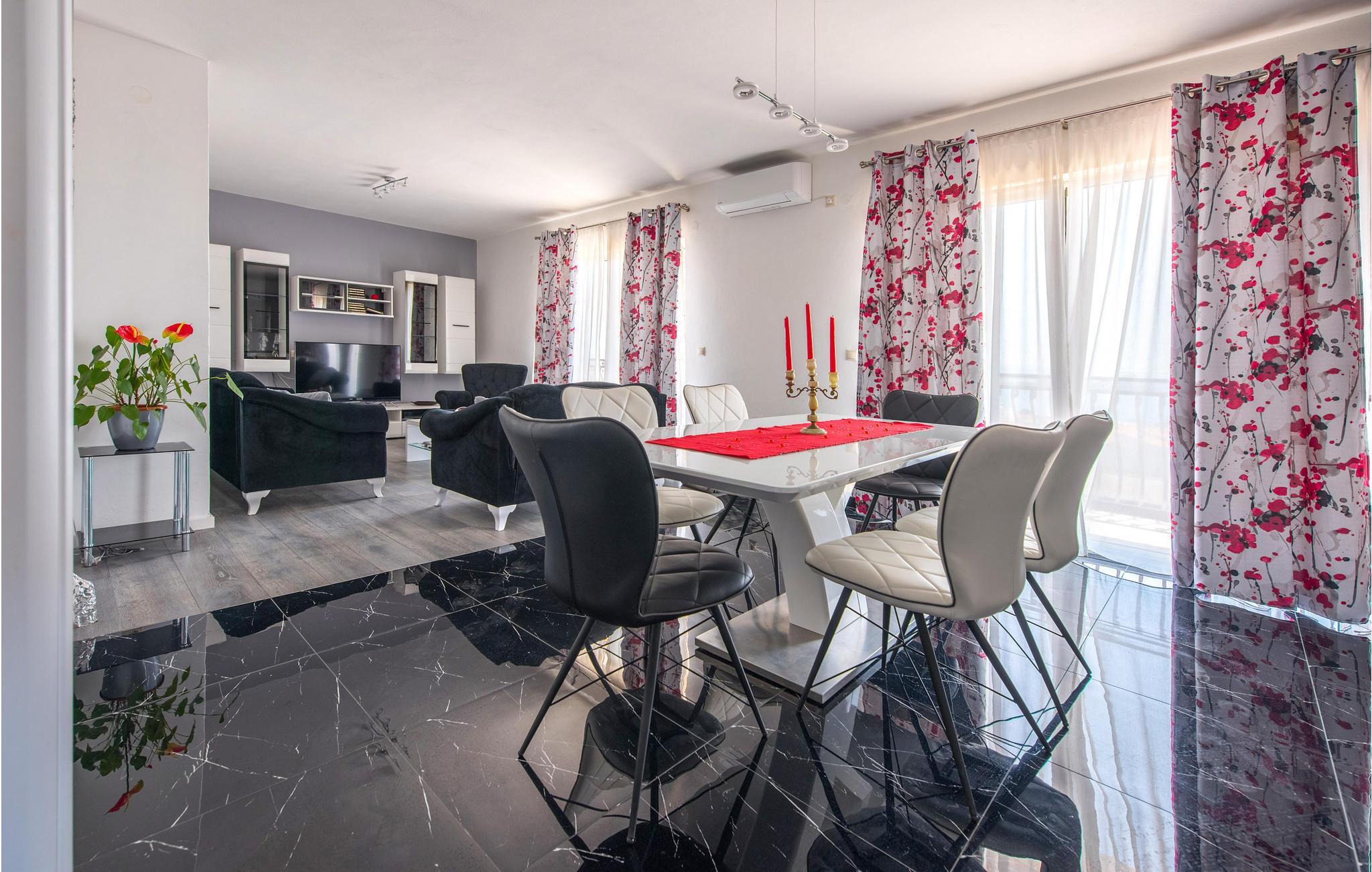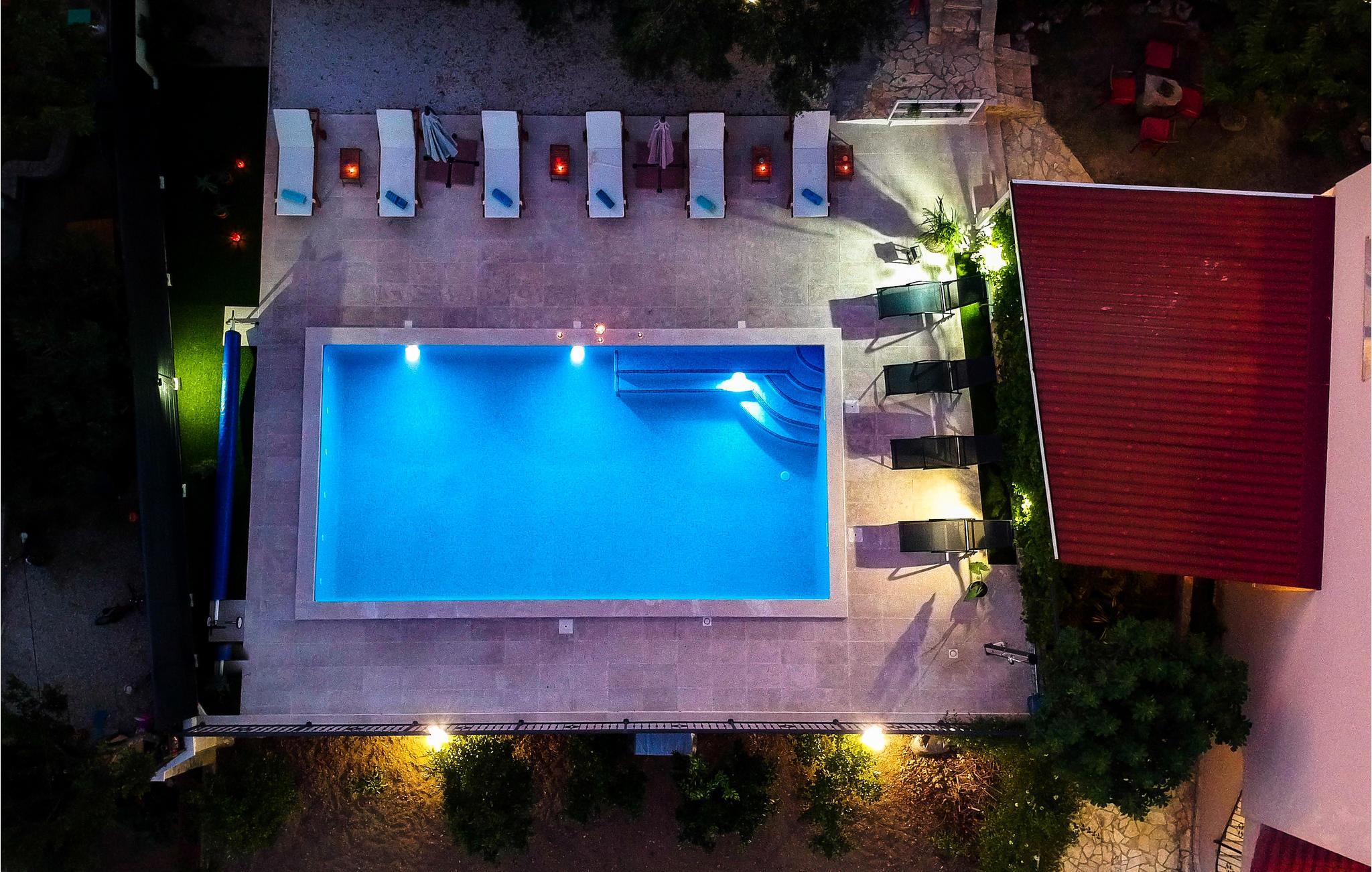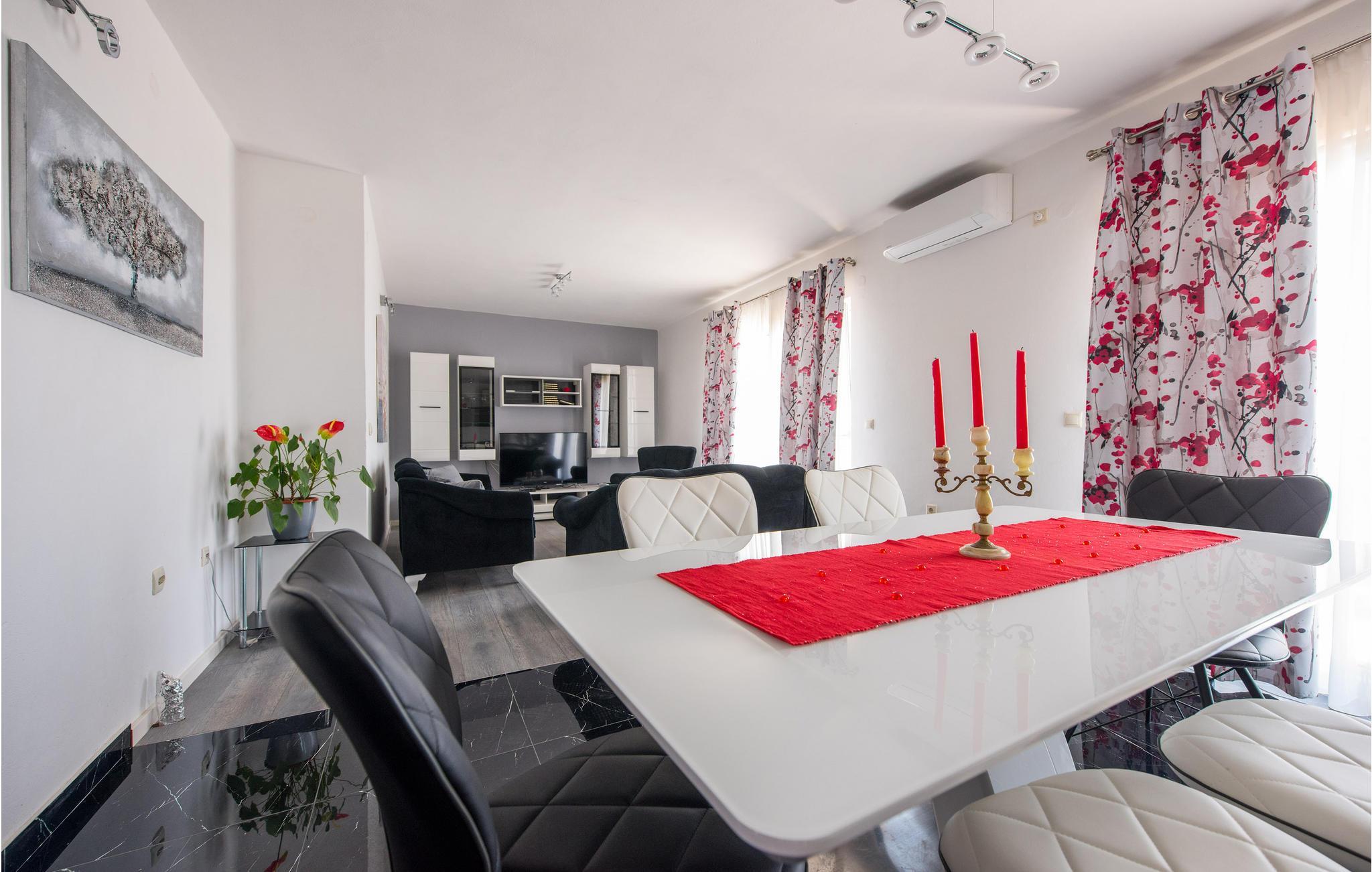 Das komfortable Ferienhaus mit Pool erstreckt sich auf 3 Etagen, die mit Innentreppen verbunden sind. Es eignet sich ideal für einen Urlaub mit mehreren Familien und Freunden. Die Inneneinrichtung im 2. und 3. Stock ist modern mit jeweils 2 Badezimmern pro Etage. Der funktionell eingerichtete 1. Stock bietet Ihnen ebenso einen angenehmen Aufenthalt. Von der Terrasse genießen Sie die Panoramaaussicht auf die ganze Bucht, von Split bis nach Trogir. Im Pool mit Hydromassagedüsen können Sie sich erfrischen und entspannen. Besuchen Sie die historischen Städte Trogir und Split mit vielen kulturell-historischen Sehenswürdigkeiten, vielen Unterhaltungsmöglichkeiten für jede Altersgruppe und Restaurants mit hervorragender Dalmatinischer Küche.