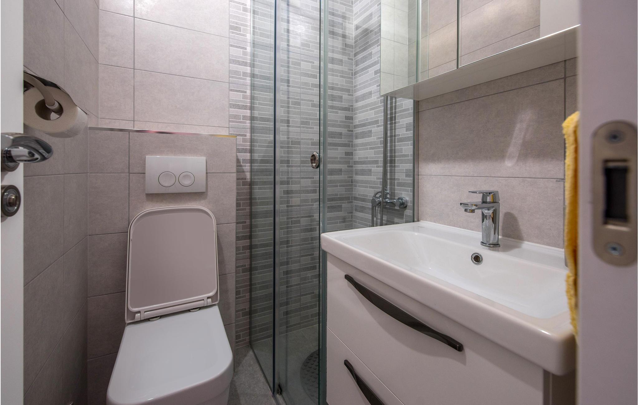 Badezimmer 4m2 (nr. 1) - WC. Warmes und kaltes Wasser. Dusche