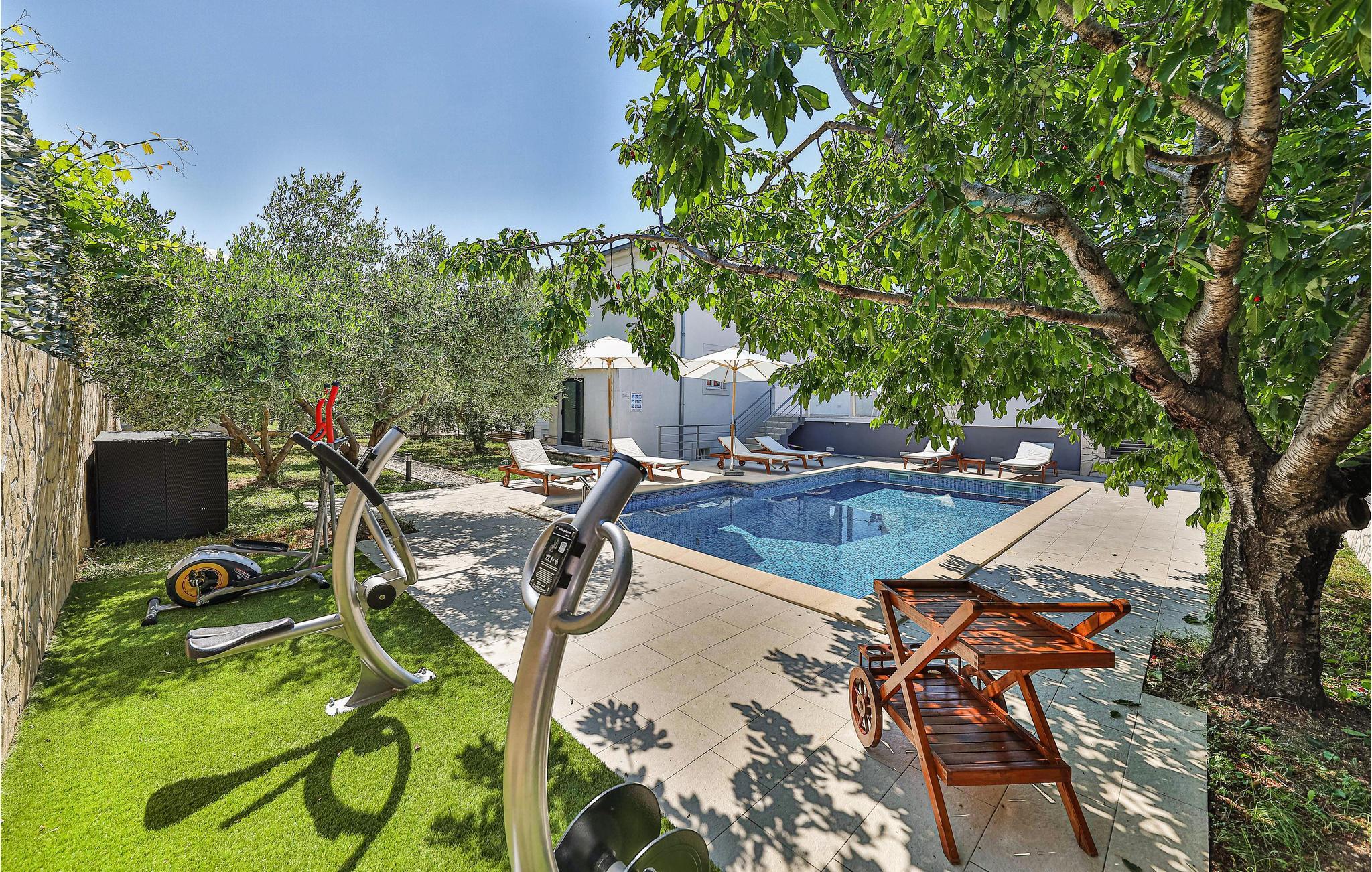Am Haus befindet sich ein Swimmingpool mit einem Whirlpool. Außerdem haben Sie hier auch eine Sauna und Fitness im Freien zur Verfügung und können zwischen mehreren offenen und überdachten Terrassen wählen.