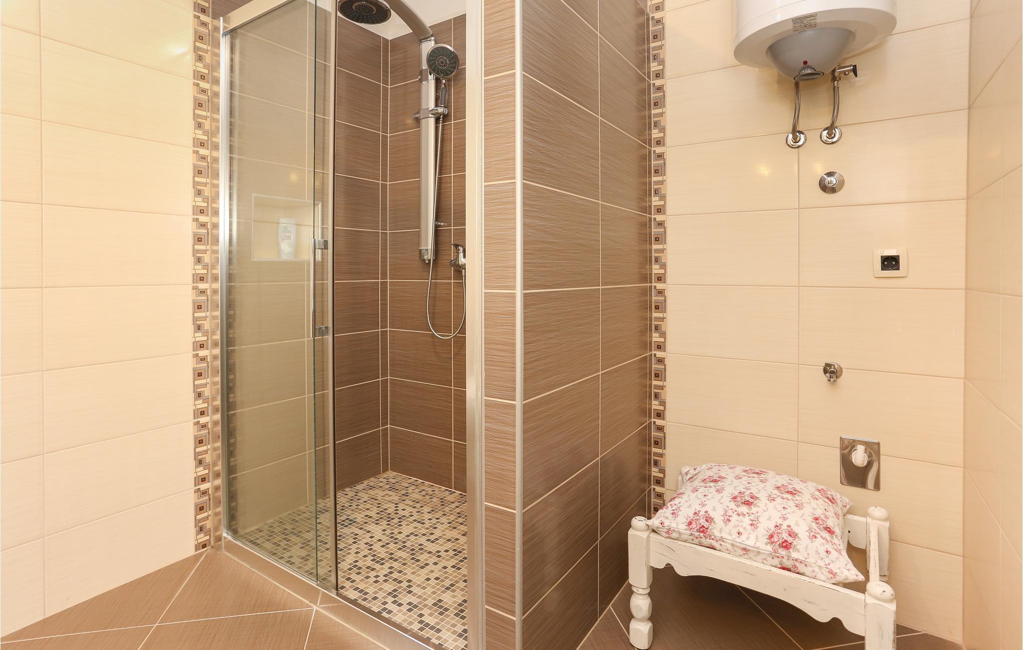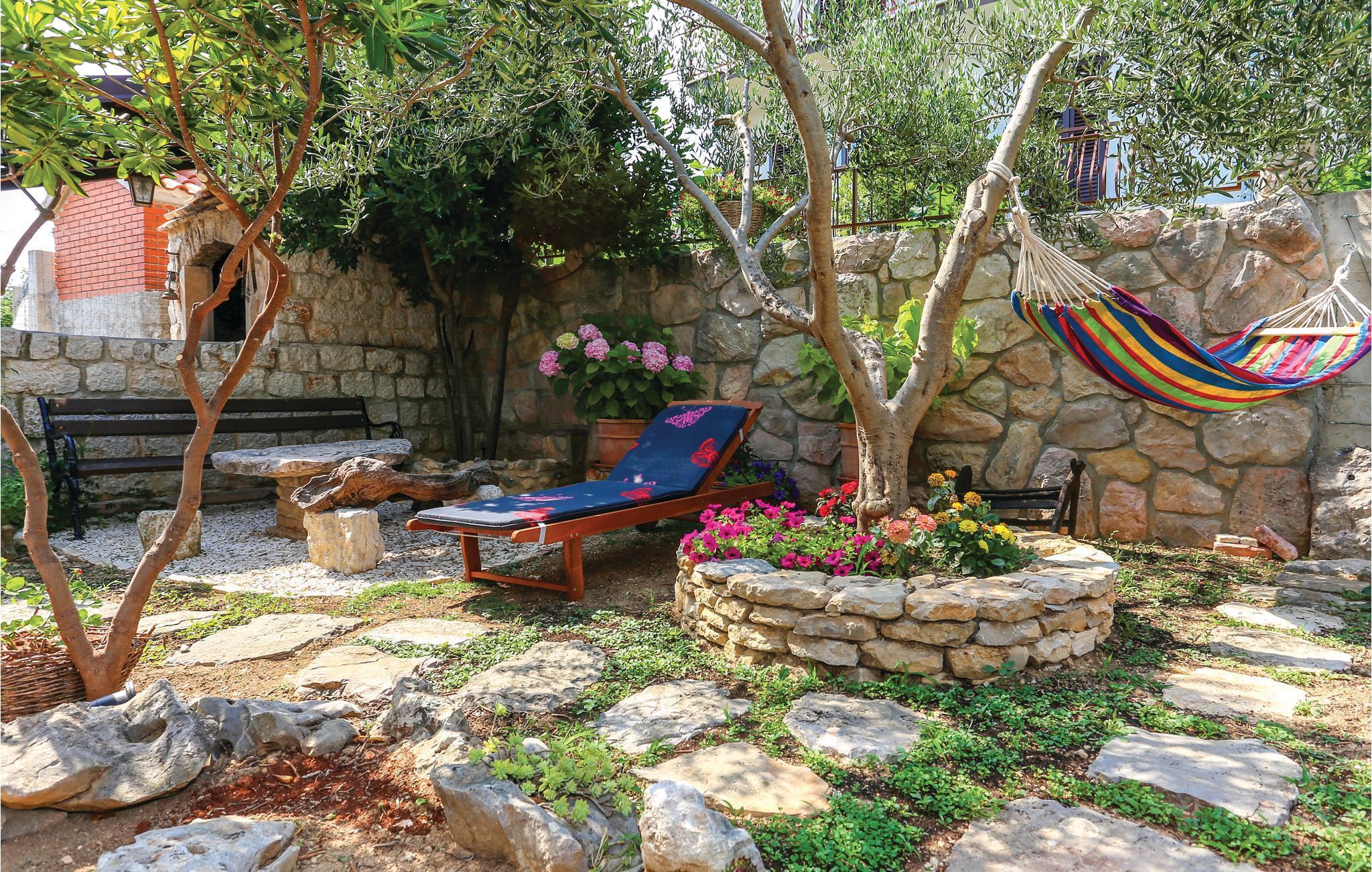 Verbringen Sie einen wunderbaren Sommerurlaub am Mittelmeer nahe der vielbesuchten Stadt Trogir in diesem traumhaften Ferienhaus. Es befindet sich in der Wohngegend von Kaštel Sucurac. Das Domizil mit Innentreppe besteht eigentlich aus zwei Wohnungen. Von der Terrasse im ersten Stock bietet sich ein schöner Meerblick. Auf der überdachten Terrasse im Erdgeschoss laden Außengrill sowie Gartenmöbel zum geselligen Zusammensein ein. Genießen Sie die Aussicht, die sich Ihnen auch vom umzäunten Garten bietet. Im Garten wachsen Sträucher und Obstbäume. Das Untergeschoss nicht vermietet wird.