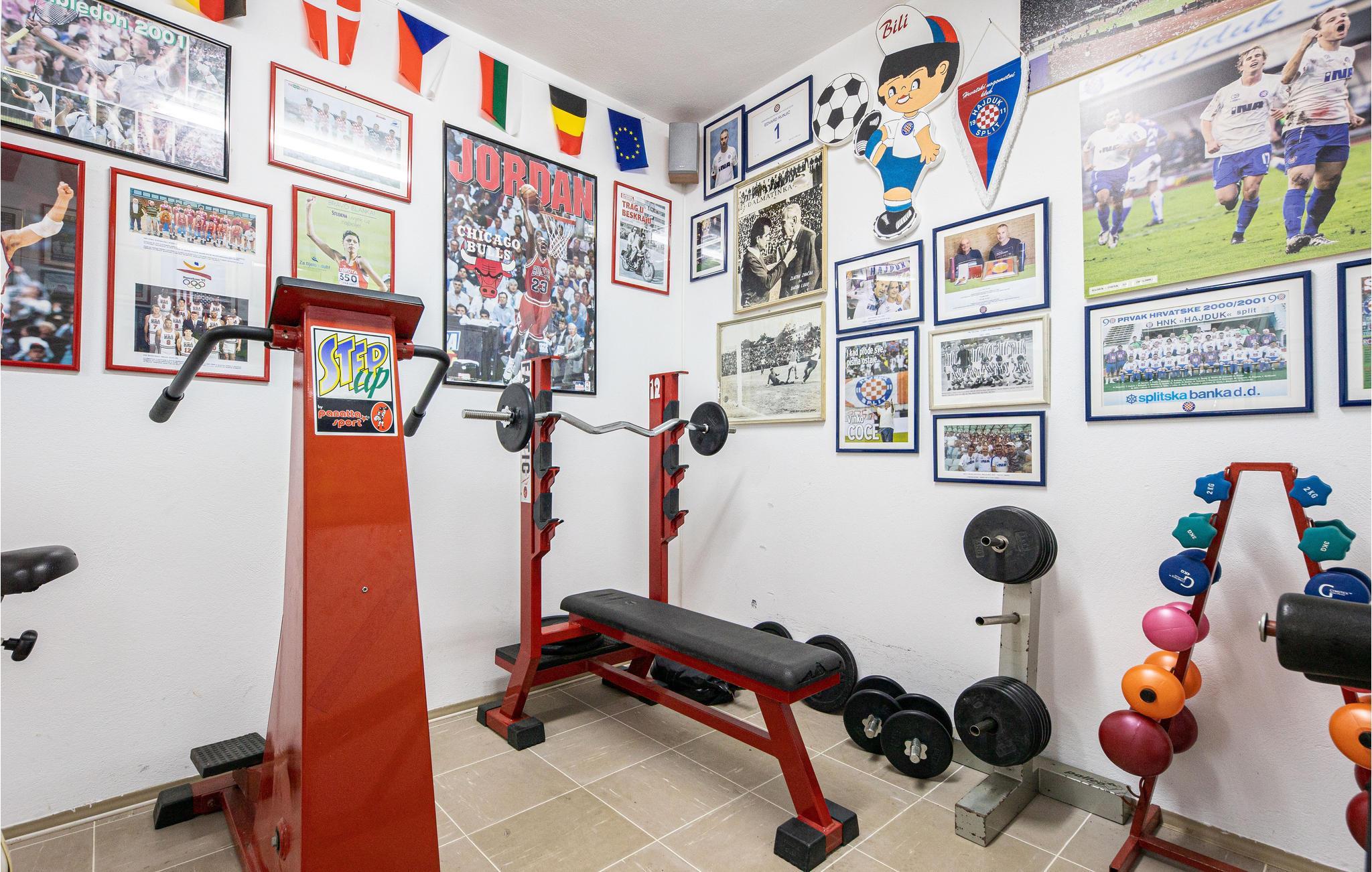 Sie machen hier in der Nähe der bekannten Stadt Trogir Urlaub. Genießen Sie einen Qualitätsurlaub in grüner Umgebung. Ein Haus mit zwei separaten Wohnungen im 1. Stock. Fitnessraum im Erdgeschoss. Auf dem großen und weitläufigen Anwesen, auf dem auch der Eigentümer lebt, gibt es mehrere grüne Flächen, wo man sportlichen Aktivitäten wie Volleyball, Badminton oder Tischtennis nachgehen kann. Für Kinder gibt es Schaukeln und eine Rutsche. Sie können die Zeit auch im Schatten des Waldes verbringen, der zum Anwesen gehört. Der Eigentümer hat auch einen schönen Gemüsegarten bepflanzt, den Sie benutzen dürfen. Auf dem Grundstück dominiert ein Außenpool, der schöne, entspannende Momente bieten wird. Im Schatten der Bäume können Sie auf dem Grill zubereitete Speisen mit Gemüse aus dem Garten des Eigentümers genießen. Die Umgebung eignet sich ideal fürs Radfahren, Wandern und Bergsteigen auf dem Labisnica. Wir sind zuversichtlich, dass Sie während Ihres Aufenthaltes viel erleben und viele angenehme Erinnerungen mit nach Hause bringen werden. Wanderungen auf dem Berg Labisnica (800 m Seehöhe) sind zu empfehlen.