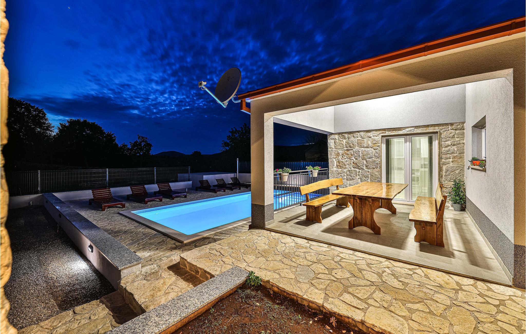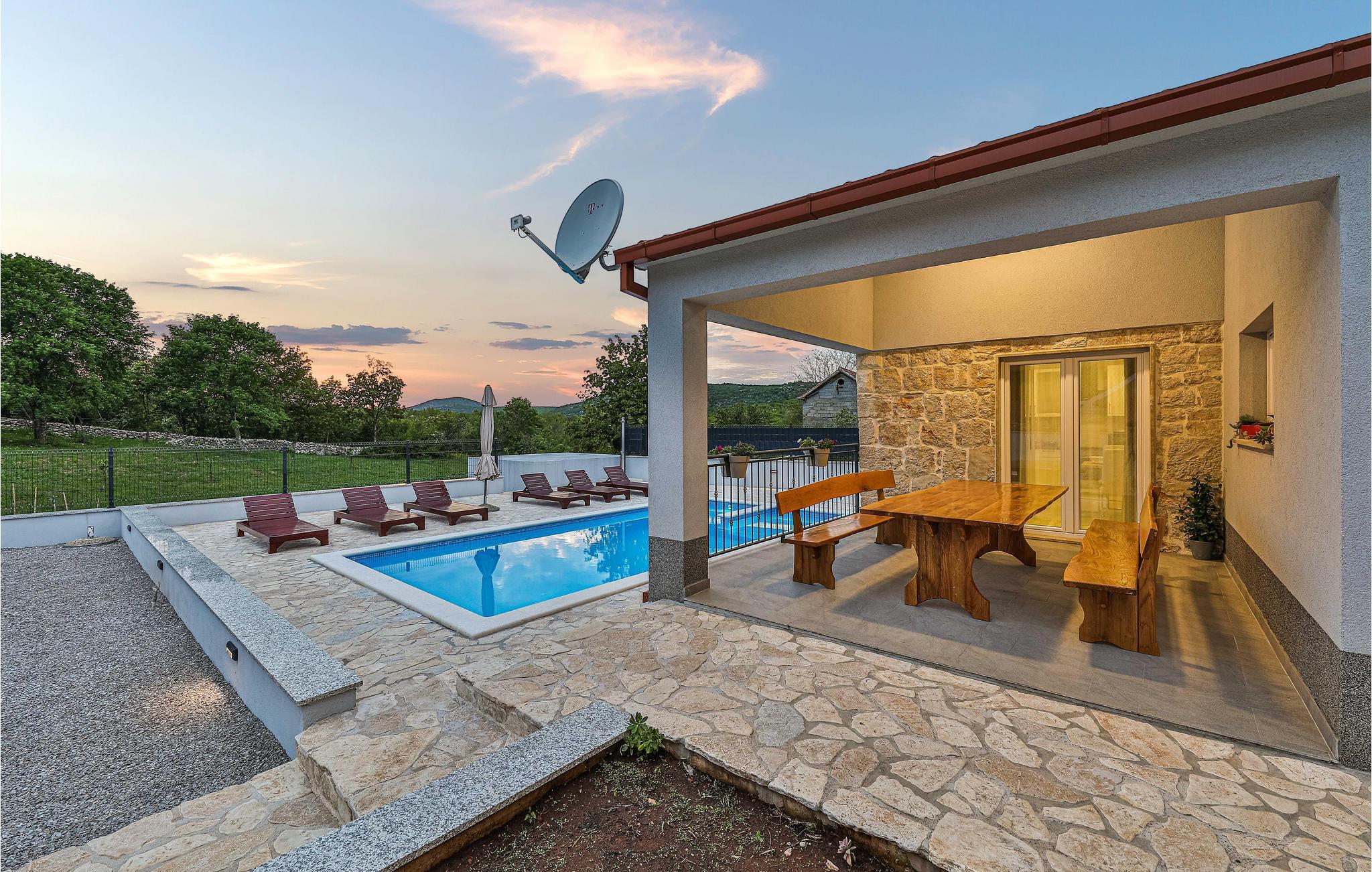 Freuen Sie sich mit Ihrer Familie auf Ihren Urlaub in diesem großen und schönen Haus. Die Unterkunft ist schlicht und helle eingerichtet. Sie können am Morgen entweder am großen Tisch in der Küche zusammenkommen oder Ihren Kaffee auf der Terrasse genießen. Der Pool lädt Sie schon in den Morgenstunden zum Baden und schwimmen ein. Nach den ersten Bahnen können Sie sich für Ihre Unternehmungen fertig machen.