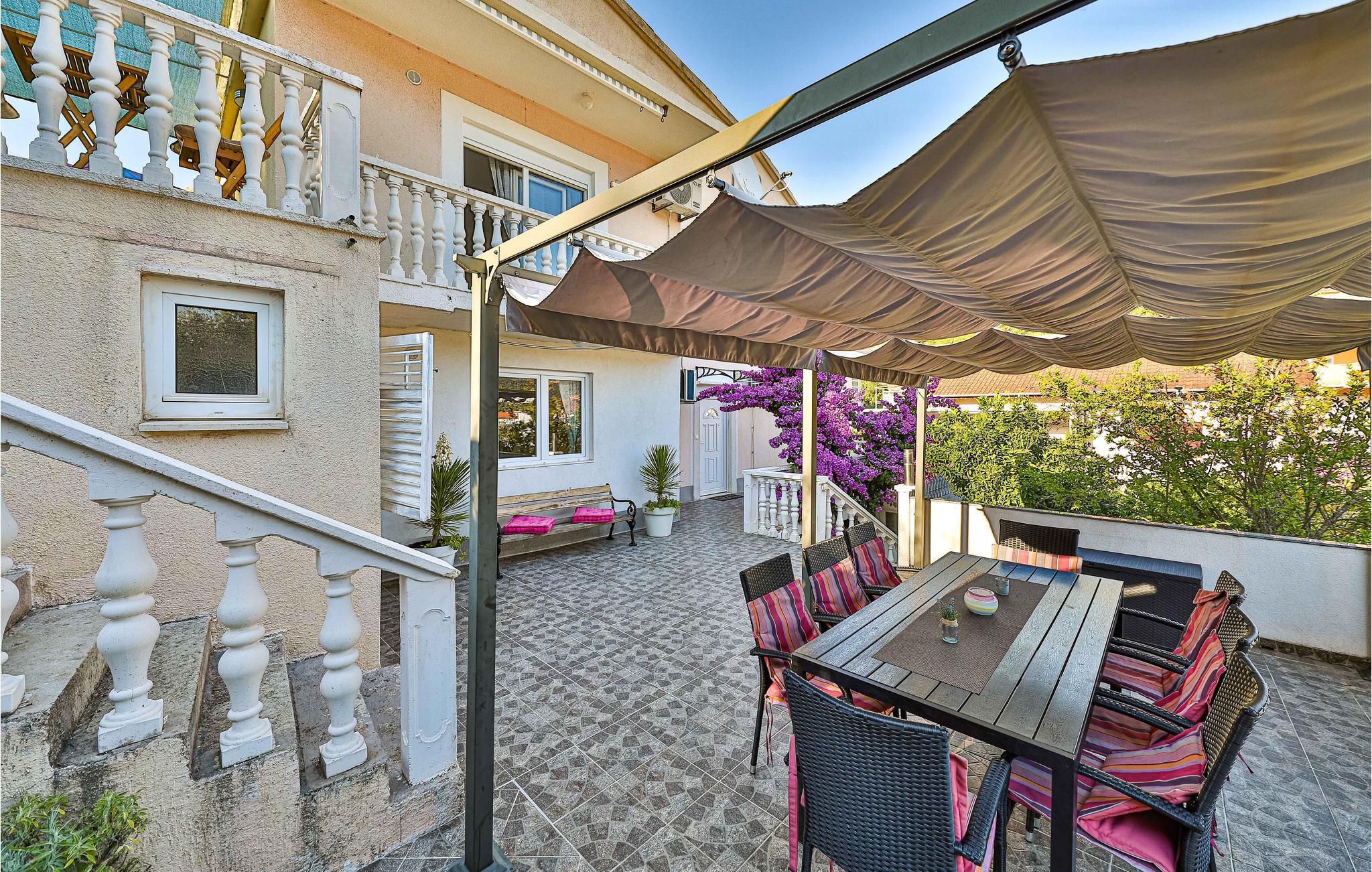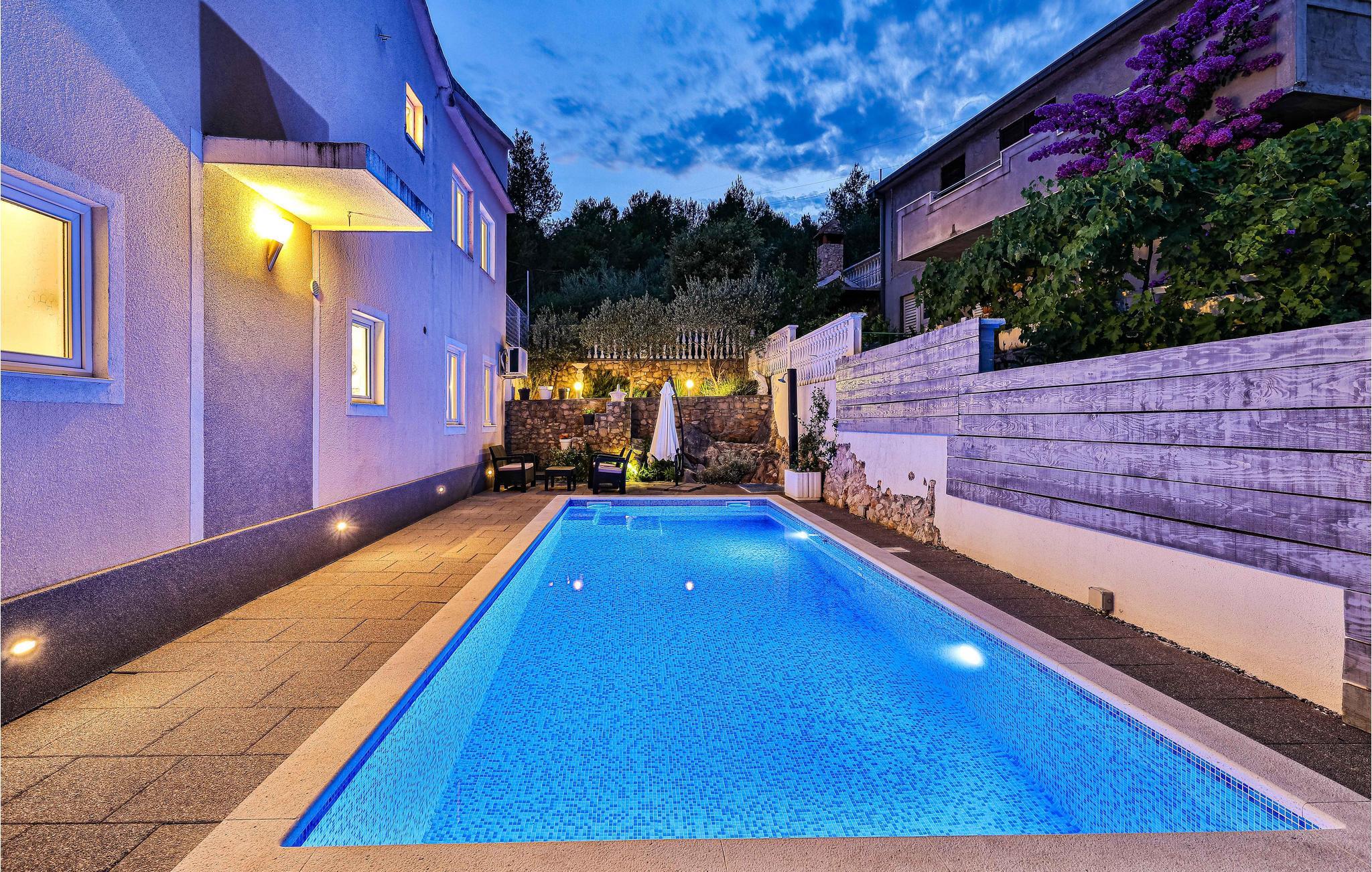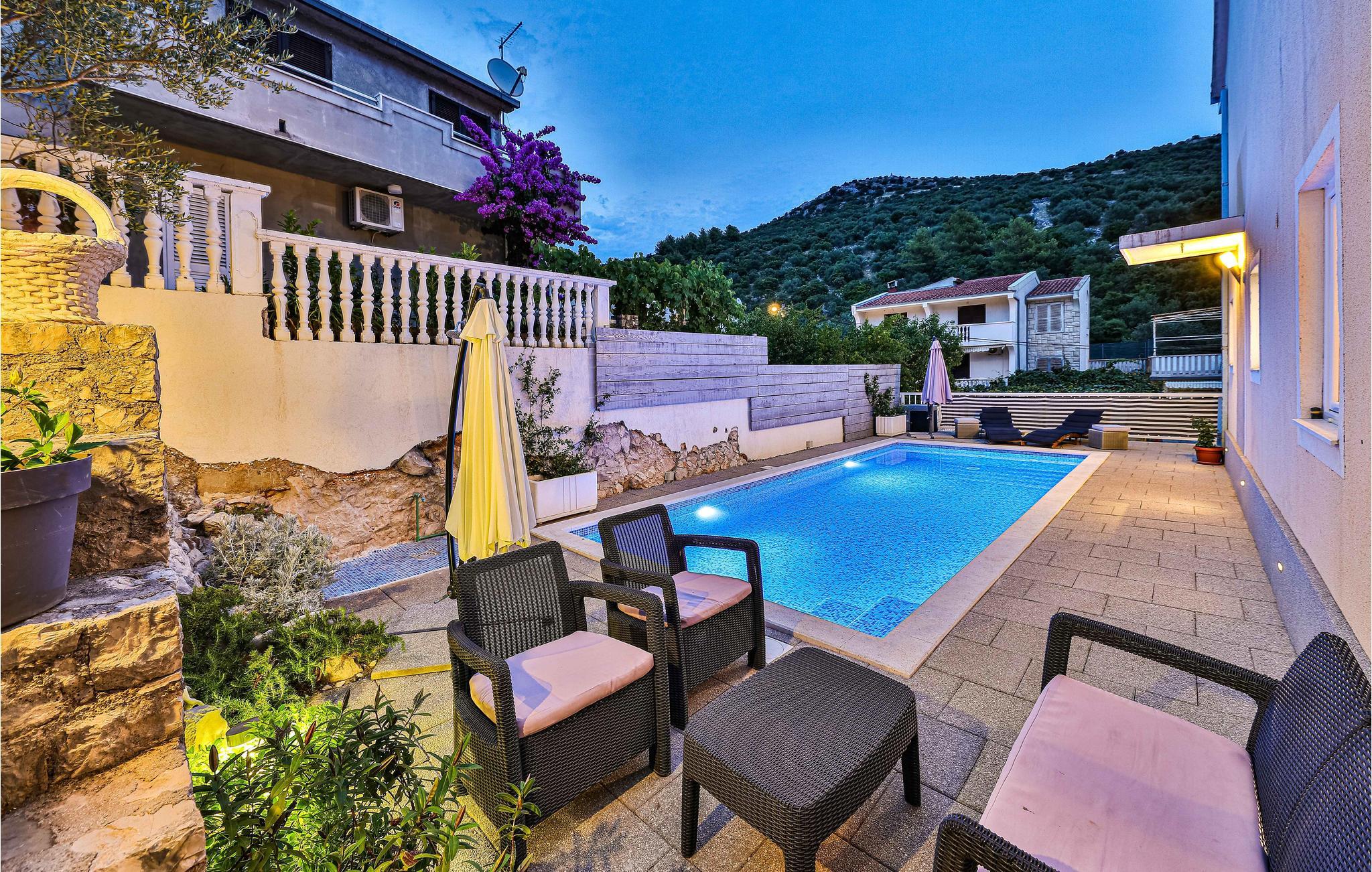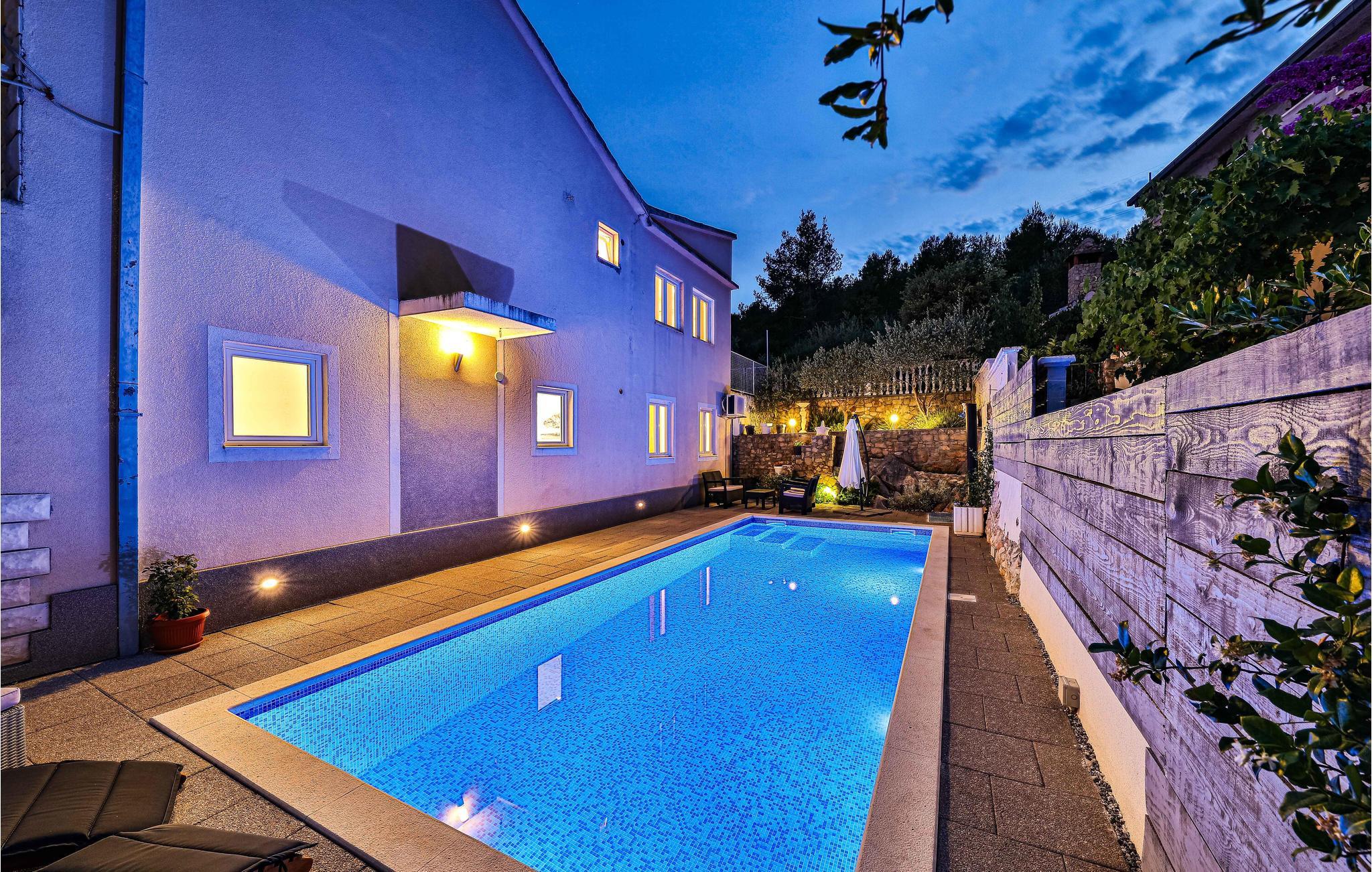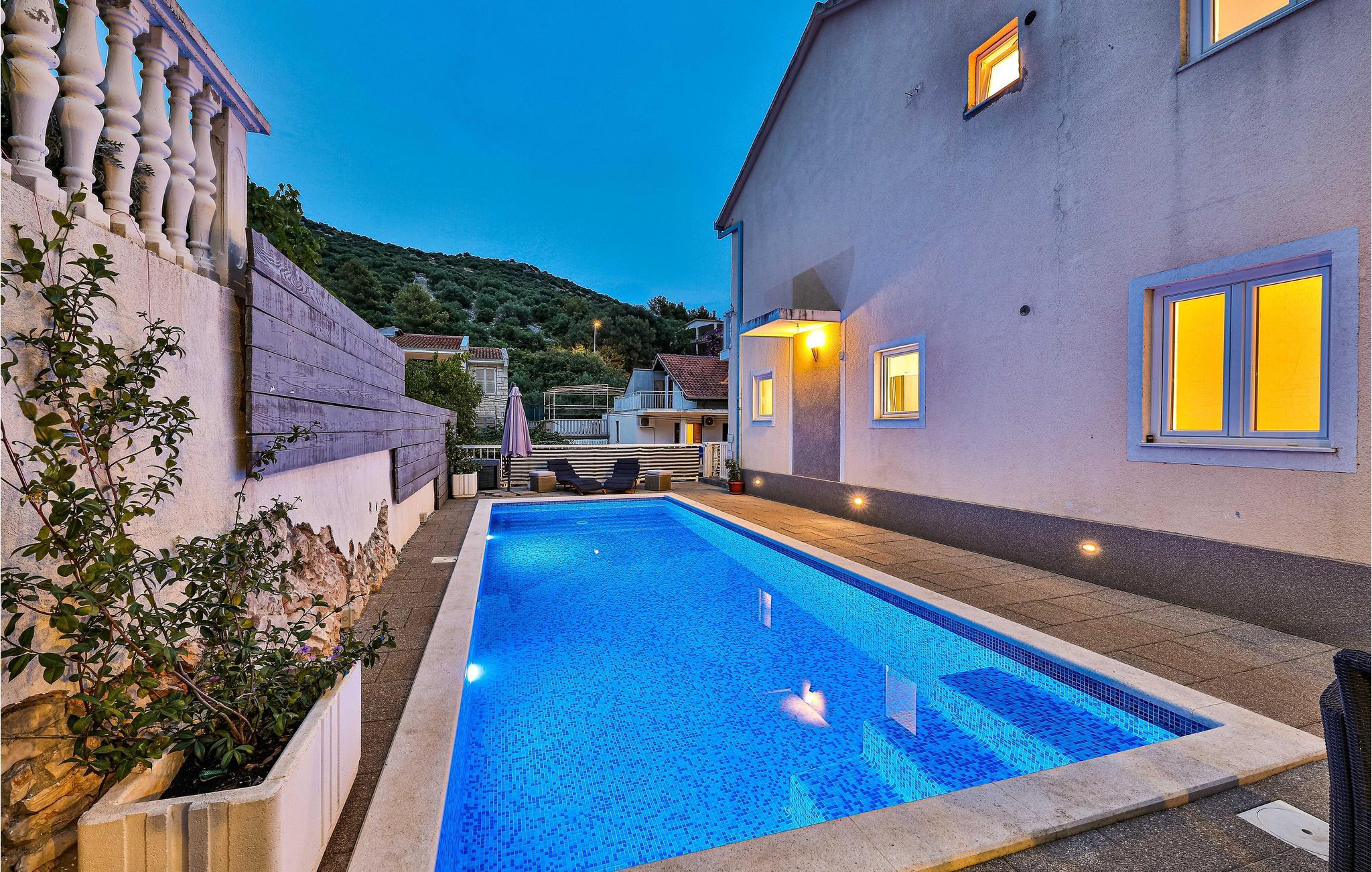 Dieses Ferienhaus mit Außenpool ist gut geeignet für den Urlaub von mehreren Familien oder Gruppen von Freunden. Das Haus erstreckt sich über zwei Etagen. Zur Verfügung stehen Ihnen sechs gemütliche Schlafzimmer, in denen Sie Ruhe und Erholung finden. Es gibt mehrere Terrassen, eine davon mit Grill. Im Ort Marina finden Sie während der Sommermonate ein reichhaltiges Unterhaltungsangebot, sowie Restaurants und Tavernen mit köstlichen Gerichten. Die Stadt Trogir ist auch einen Besuch wert.