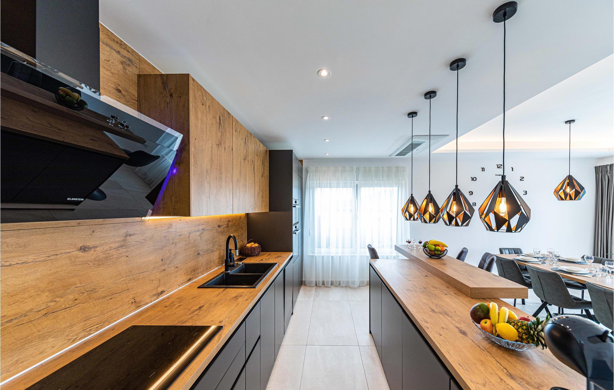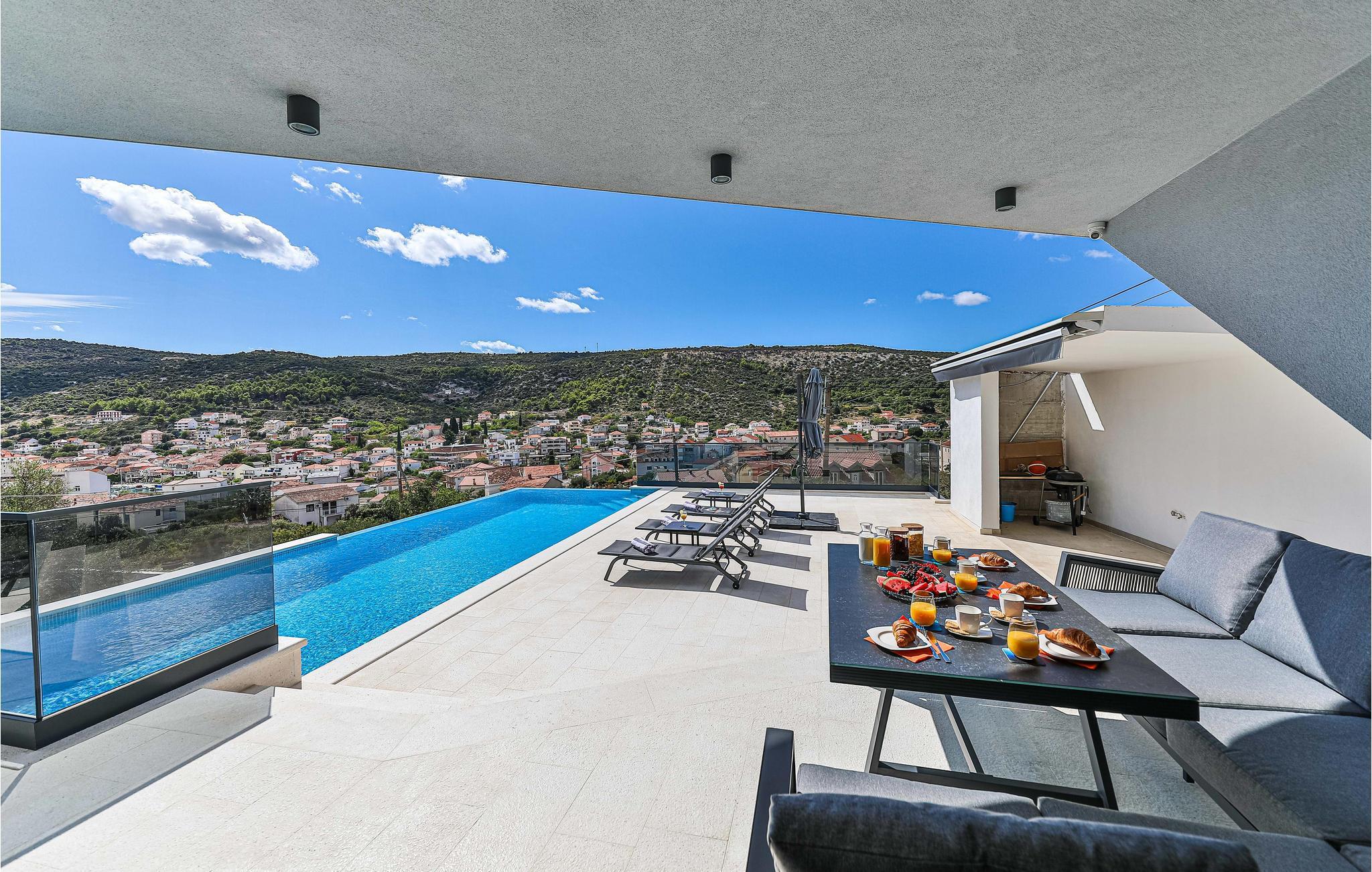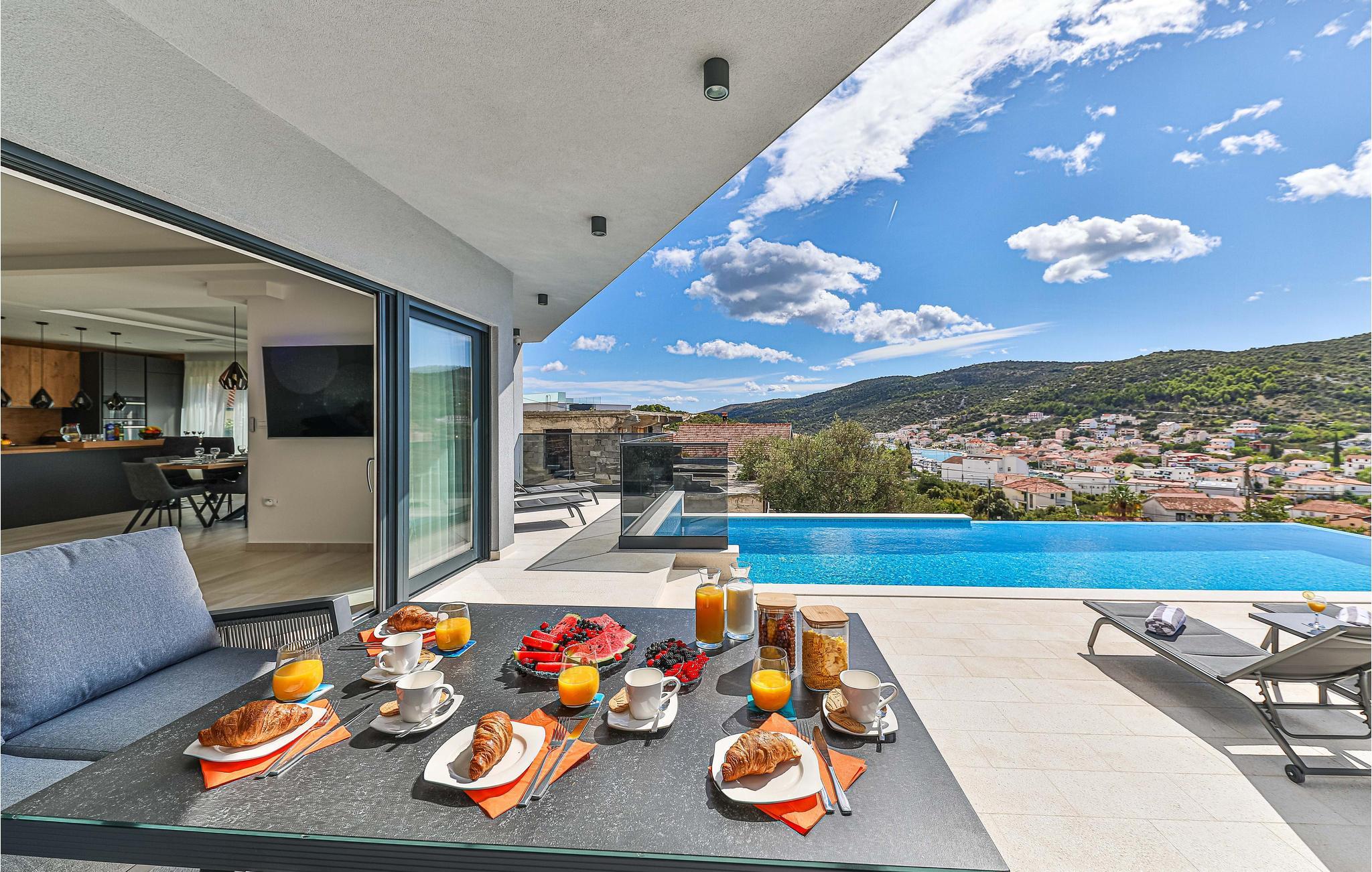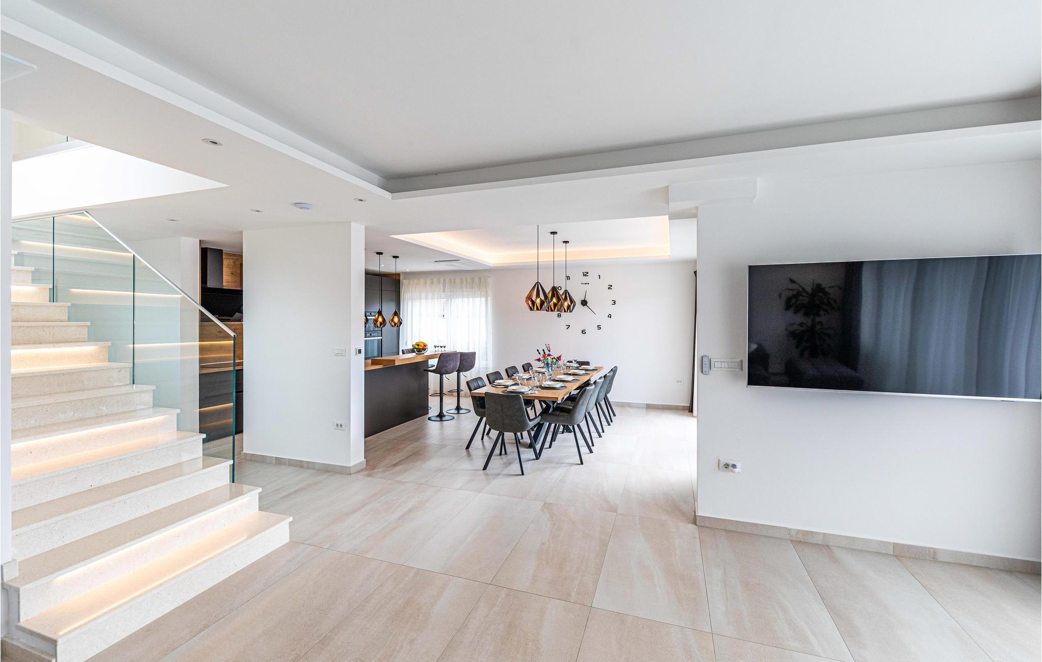 In Marina westlich von Trogir lädt Sie dieses komplett ausgestattete Ferienhaus zu einem erstklassigen Urlaub ein. Die hochwertige, komfortable Einrichtung macht einen modernen, geschmackvollen Eindruck und zeugt im ganzen Haus von bedachten Lösungen. Freuen Sie sich, Ihre Köstlichkeiten in der hübschen Küche zuzubereiten und gesellige Stunden im Wohnbereich zu verbringen.
