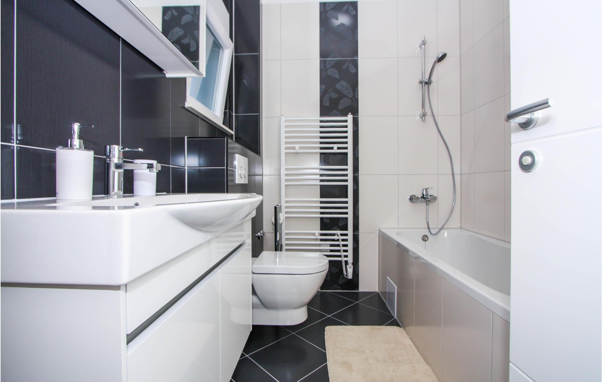 Badezimmer 4m2 (nr. 4) - WC. Warmes und kaltes Wasser. Badewanne