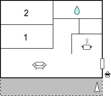 Badezimmer 5m2 (nr. 1) - WC. Warmes und kaltes Wasser. Dusche