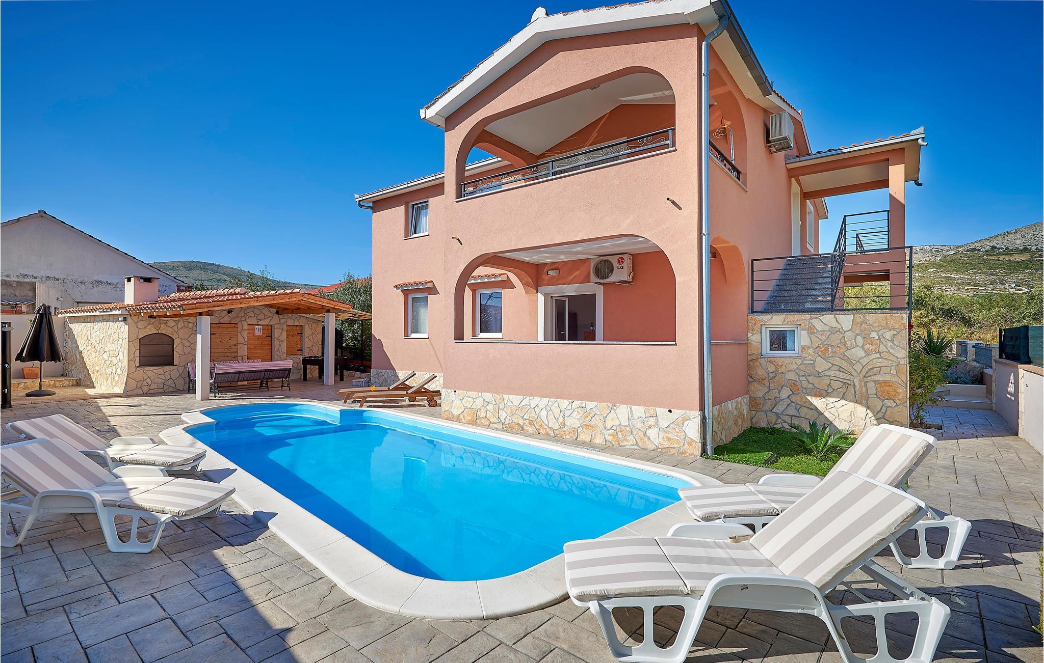 Das Grundstück wird von einem großen Pool mit Pavillon und Außenkamin dominiert, wo Groß und Klein Spaß haben werden. Mit dem Auto erreichen Sie in wenigen Minuten die schönen Stränden der Kastela Bucht, die sich von Trogir bis Split erstreckt. Besuchen Sie Trogir und Split, mit zahlreichen UNESCO-geschützten Sehenswürdigkeiten, Restaurants und Cafés. Im Sommer gibt es dort auch viele interessante Veranstaltungen.
