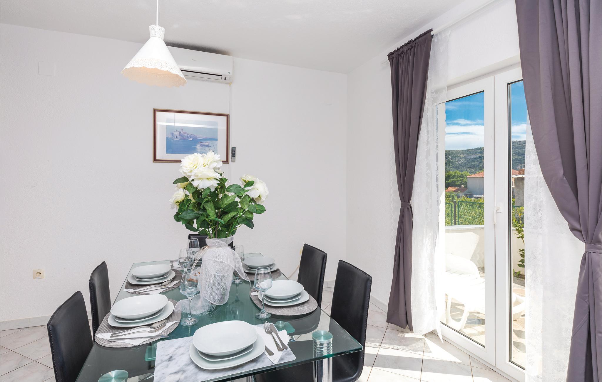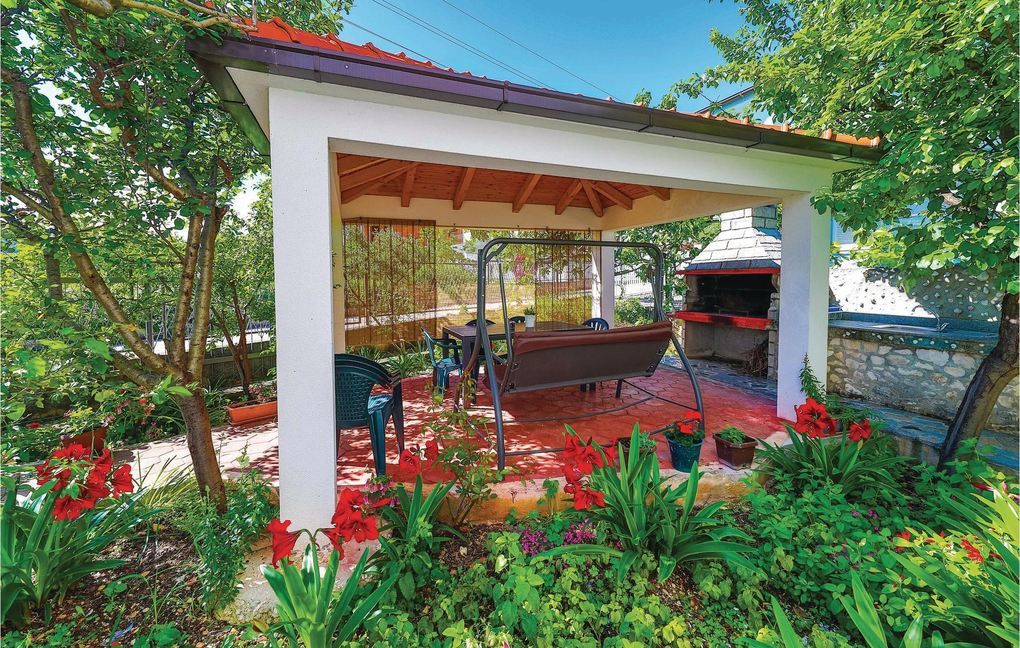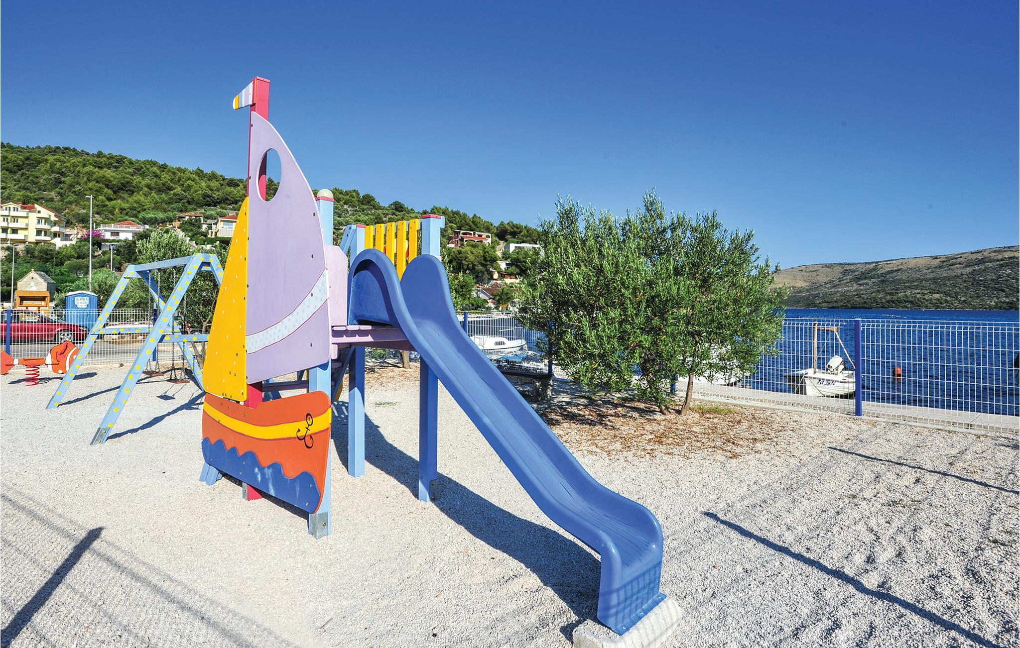 Das gemütlich eingerichtete Ferienhaus befindet sich im Ort Poljica, das nur wenige Kilometer von der Stadt Trogir entfernt ist. Entlang der örtlichen Strandpromenade gibt es verschiedene Verkaufsläden sowie Restaurants mit lokalen Köstlichkeiten. Im Erdgeschoss des Ferienhauses sind das Wohnzimmer mit Küche und Essbereich sowie ein Badezimmer während im Obergeschoss drei Schlafzimmer und ein Bad sind. Neben dem Haus ist eine überdachte Gartenlaube mit Kamin und daneben ist auch eine kleine Kinderspielecke. Im kleinen Ort gelangen Sie recht schnell zu den Stränden, über die nahe gelegene Landstraße.