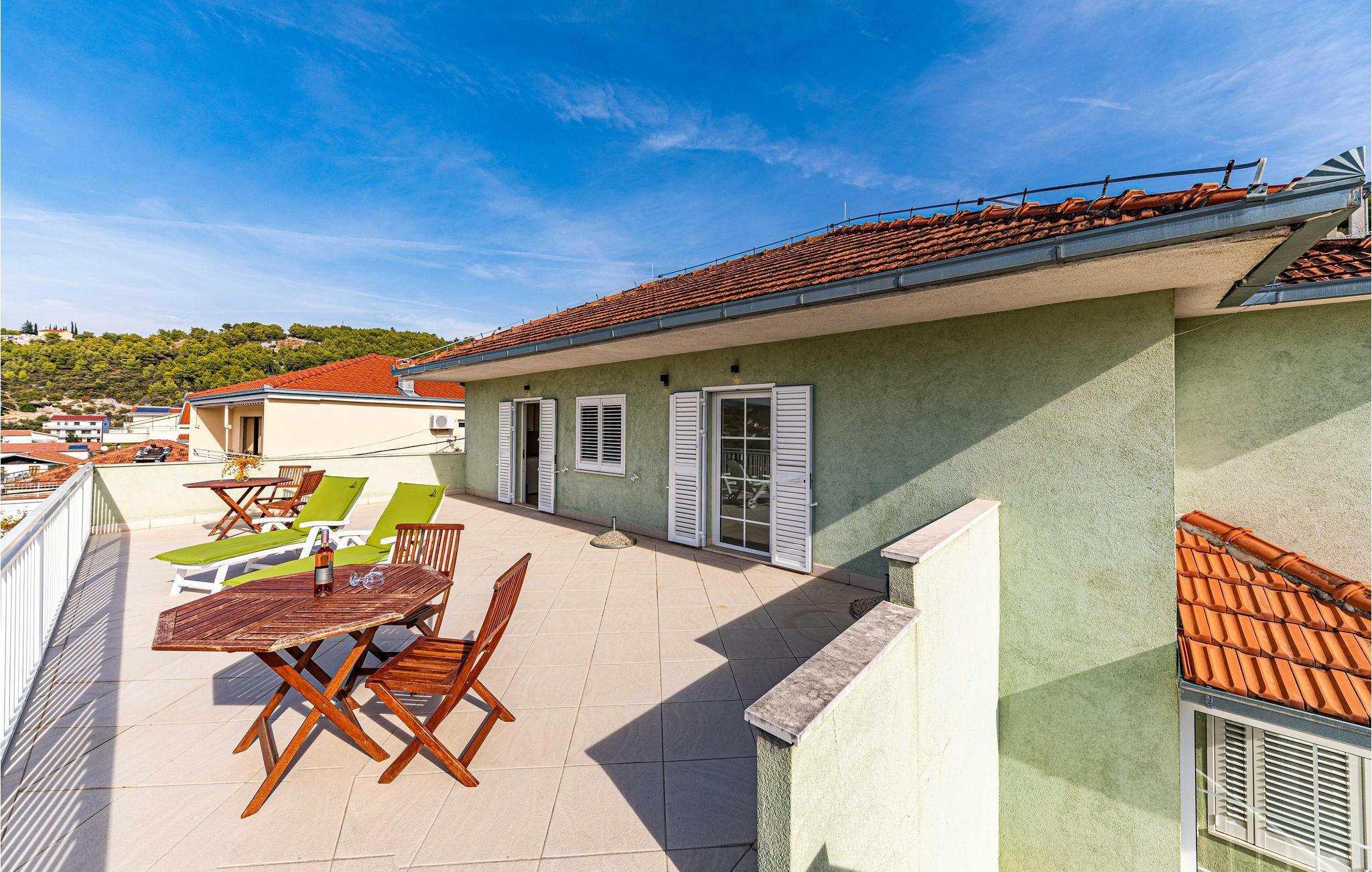 Genießen Sie Ihr Frühstück auf der sonnenverwöhnten Dachterrasse der Wohnung und planen Sie Ihre Aktivitäten für den anstehenden Tag. Vermutlich sind Sie für Strand, Meer und Sonne angereist und den nahen Kiesstrand erreichen Sie nach wenigen Minuten zu Fuß. Der familienfreundliche Strand fällt flach ab und eignet sich besonders für Kinder zum einfachen Baden und Spielen im Wasser. Aber auch Erwachsene kommen hier auf Ihre Kosten. Sie können Wassersport betreiben und sich auf der Wasseroberfläche treiben lassen. Probieren Sie sich am Windsurfen oder Tauchen oder schnorcheln Sie entlang der Küste. Planen Sie auch Ausflüge in die Städte Trogir und Split und erforschen deren historisches und kulturelles Erbe dieser beiden Hafenstädte. Lassen Sie sich von deren Flair und Gemütlichkeit einnehmen und kommen zur Ruhe.