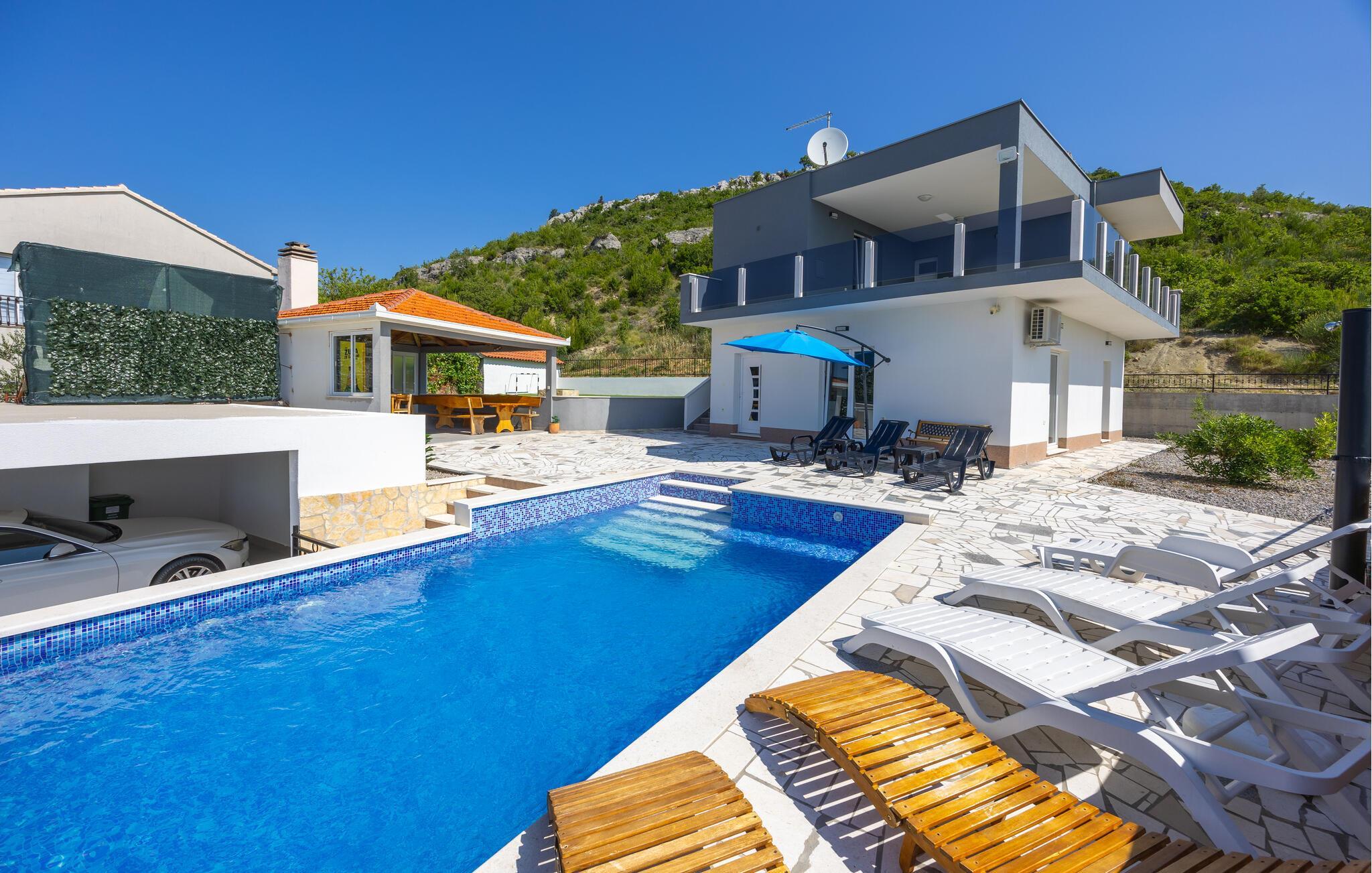 Dieses Ferienhaus erwartet seine Gäste in Labin-Plano, nicht weit von Trogir und bezaubert mit zahlreichen Extras. Bodentiefe Fenster bringen den Blick ins Freie erst so richtig zur Geltung und sorgen für schönes Tageslicht in den Räumen. Die moderne Einrichtung und gute Ausstattung machen das Haus zum idealen Ort für einen erholsamen Urlaub.