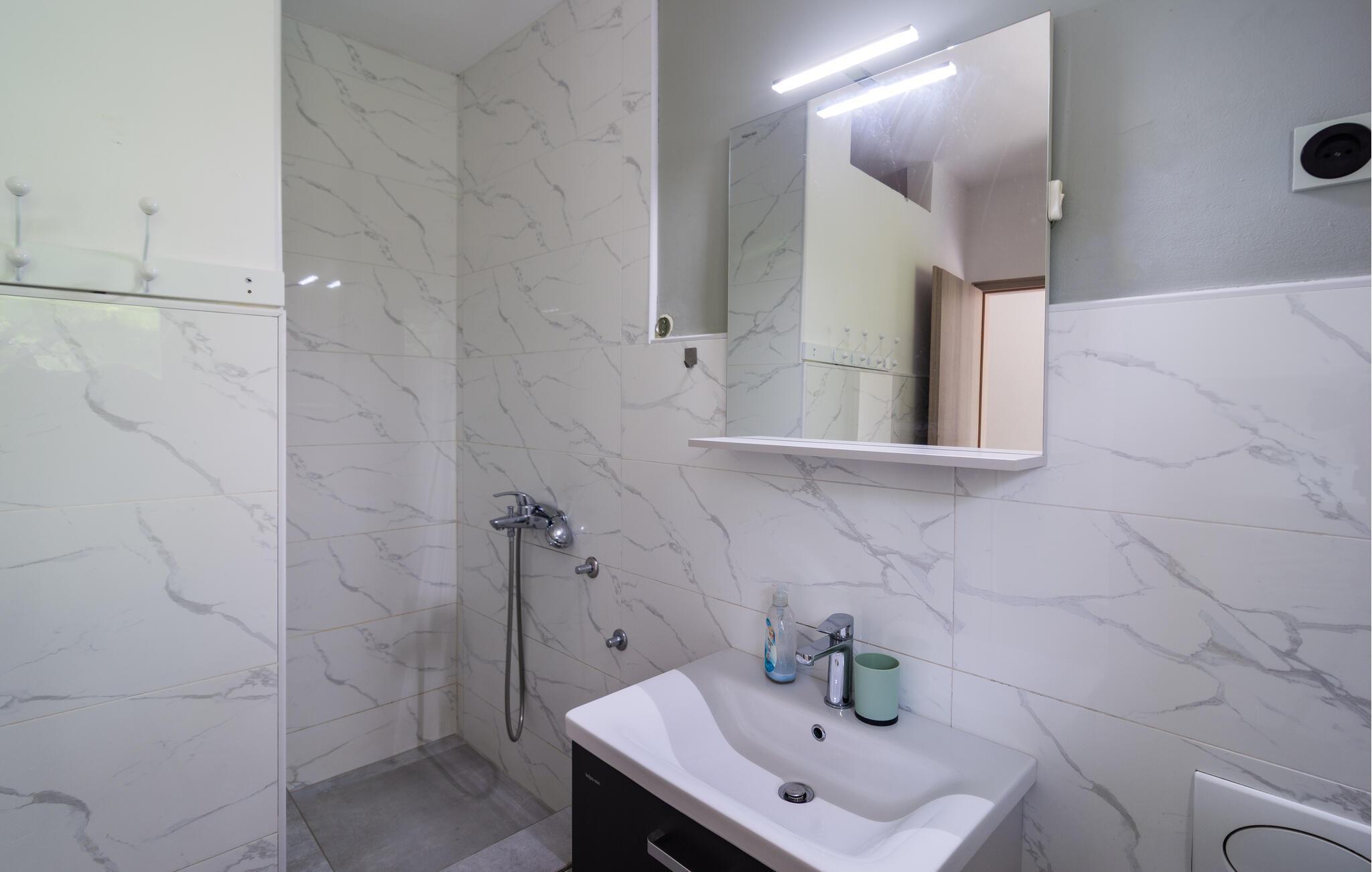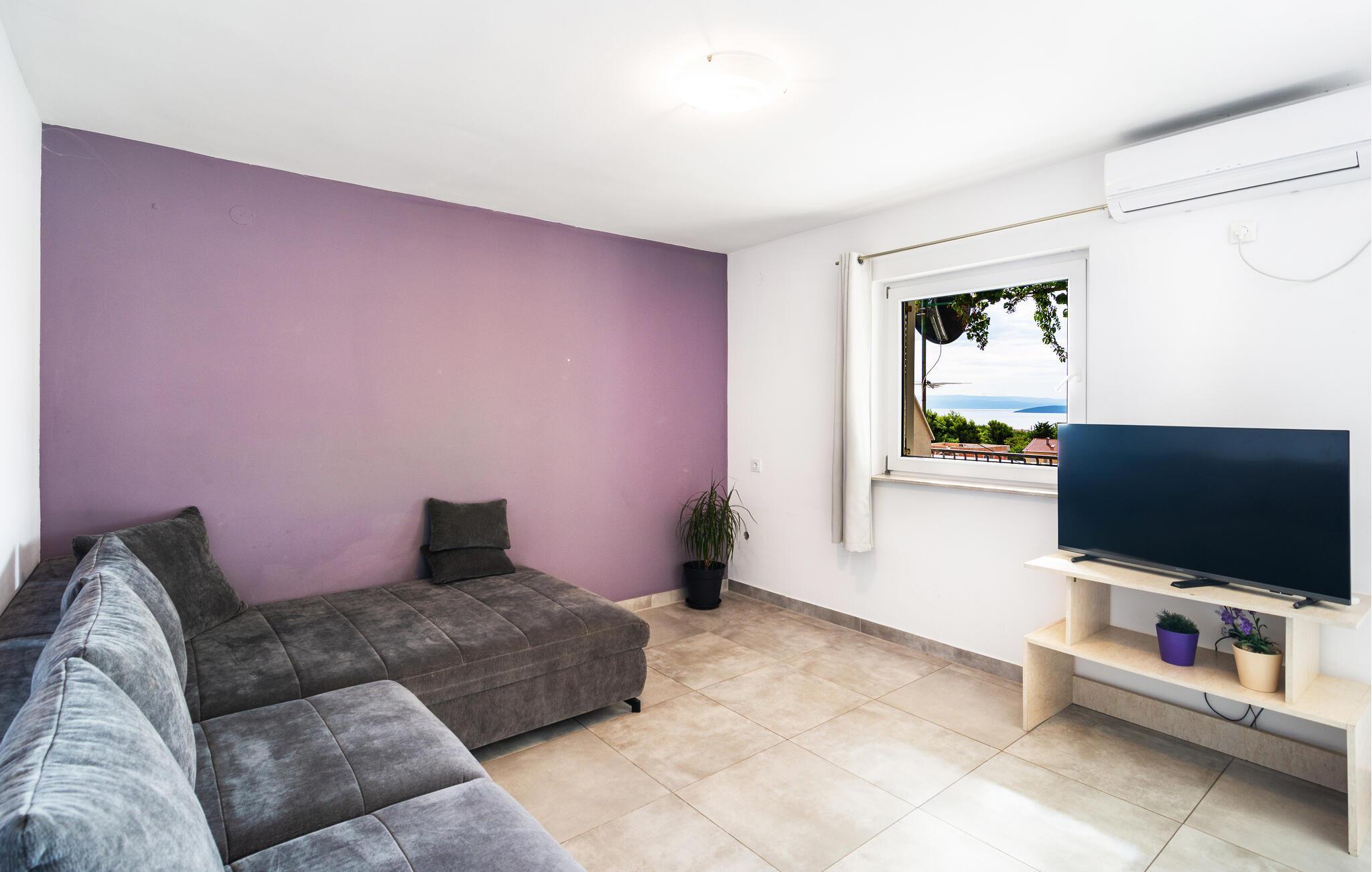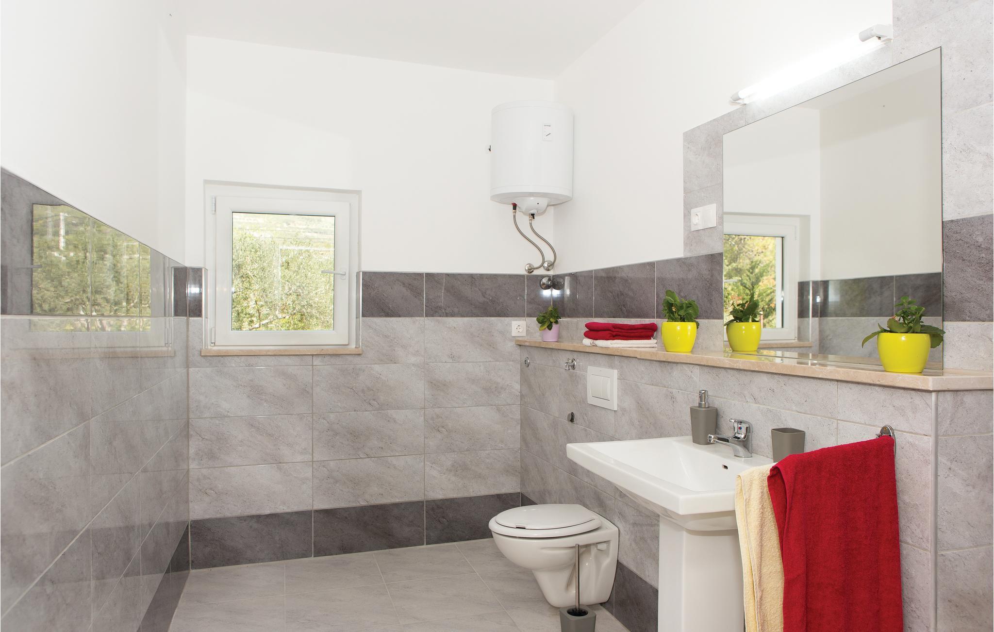 Dieses Ferienhaus mit einem, bis in den Oktober hinein, verfügbaren Außenpool befindet sich in ruhigerer Gegend und ist vom Grün der Natur umgeben. Es besteht aus zwei Etagen. Im Erdgeschoß liegen Schlafzimmer, zwei Bäder (eines nur Zugang von außen) und ein Freizeitraum. Eine Außentreppe führt Sie in den ersten Stock, mit drei Schlafzimmern, WC und Badezimmer, sowie Wohnzimmer mit Küche und Ausgang auf den Balkon. Im Hof finden Sie den beheizten Pool, Platz zum Sonnen, auch Grill und Spielgeräte für Kinder. Besuchen Sie alle sieben Kastelle: Sucurac, Kastel Gomilica, Kambelovac, Luksic, Stari, Kastel Novi und Stafilic. Diese Festungen wurden vor rund 500 Jahren zum Schutz vor Osmanen und Seeräubern gebaut und um jede hat sich ein kleiner Ort gebildet.