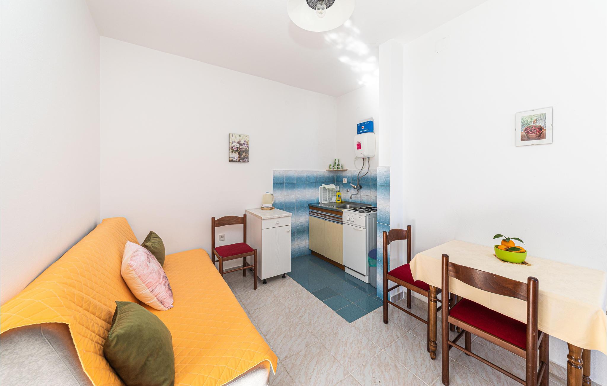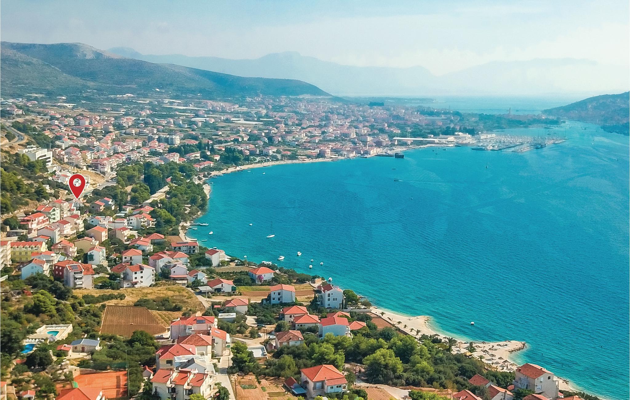 Genießen Sie die schöne Aussicht auf das Meer von den Balkonen dieser einfach und funktionell eingerichteten Ferienwohnung. Sie liegt im ersten Stock eines Einfamilienhauses und bestehen aus einem Schlafzimmer, einer kleinen Wohnküche und einem Badezimmer. Der Vorzug dieser Wohnung ist die Nähe zum Meer, das in wenigen Gehminuten erreicht werden kann. Besuchen Sie die Altstadt von Trogir und besichtigen Sie die Fassaden der schönen Häuser und Steingebäude. Ausgezeichnete Restaurants bieten lokale Köstlichkeiten an und am Hafen können Sie Bootsausflüge zu den Inseln unternehmen. Das Grundstück ist eingezäunt und liegt ca. 10 m von der Küstenstraße entfernt.
