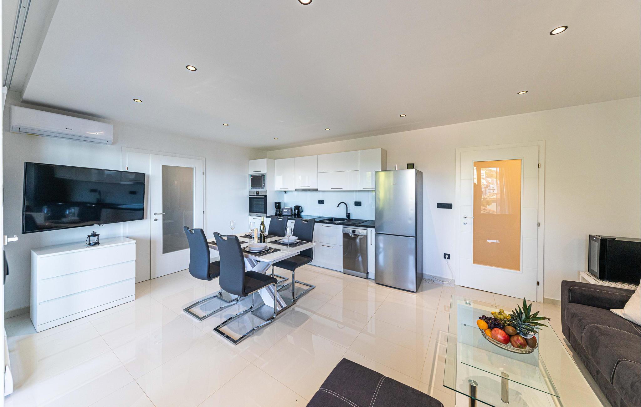 Sie suchen Entspannung, Strand und Meer und dabei möchten Sie wunderschön wohnen? Dann sind Sie hier genau richtig. Die schöne Ferienwohnung erfüllt Ihrer Wünsche nach schönen Wohn- und Schlafräumen, die komfortabel sind und in denen Sie sich ausruhen können. Starten Sie gut ausgeschlafen in einen neuen Urlaubstag und genießen die ersten Morgenstunden bei einem leckeren Frühstück auf Ihren Balkon mit Meerblick. Genießen Sie die Umgebung, bevor Sie sich in den Gemeinschaftsgarten aufmachen und die ersten Bahnen im Swimmingpool ziehen. Entspannen Sie sich auf den Sonnenliegen und kommen Sie mit den anderen Gästen ins Gespräch, während Ihre Kinder im Wasser Freundschaften knüpfen.
