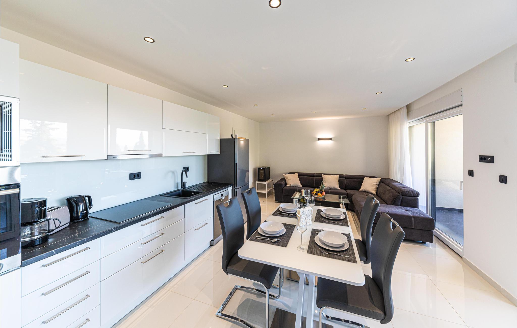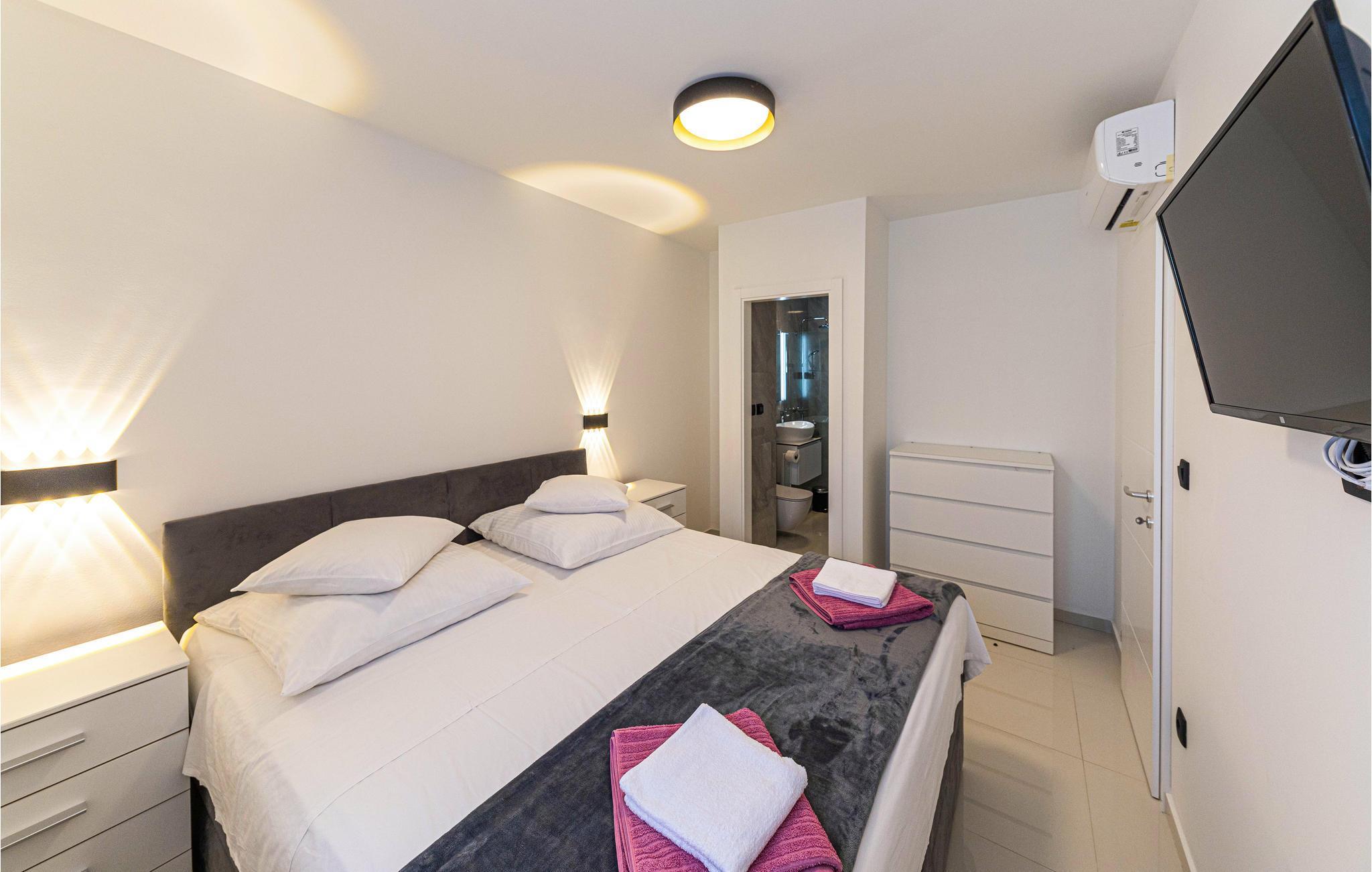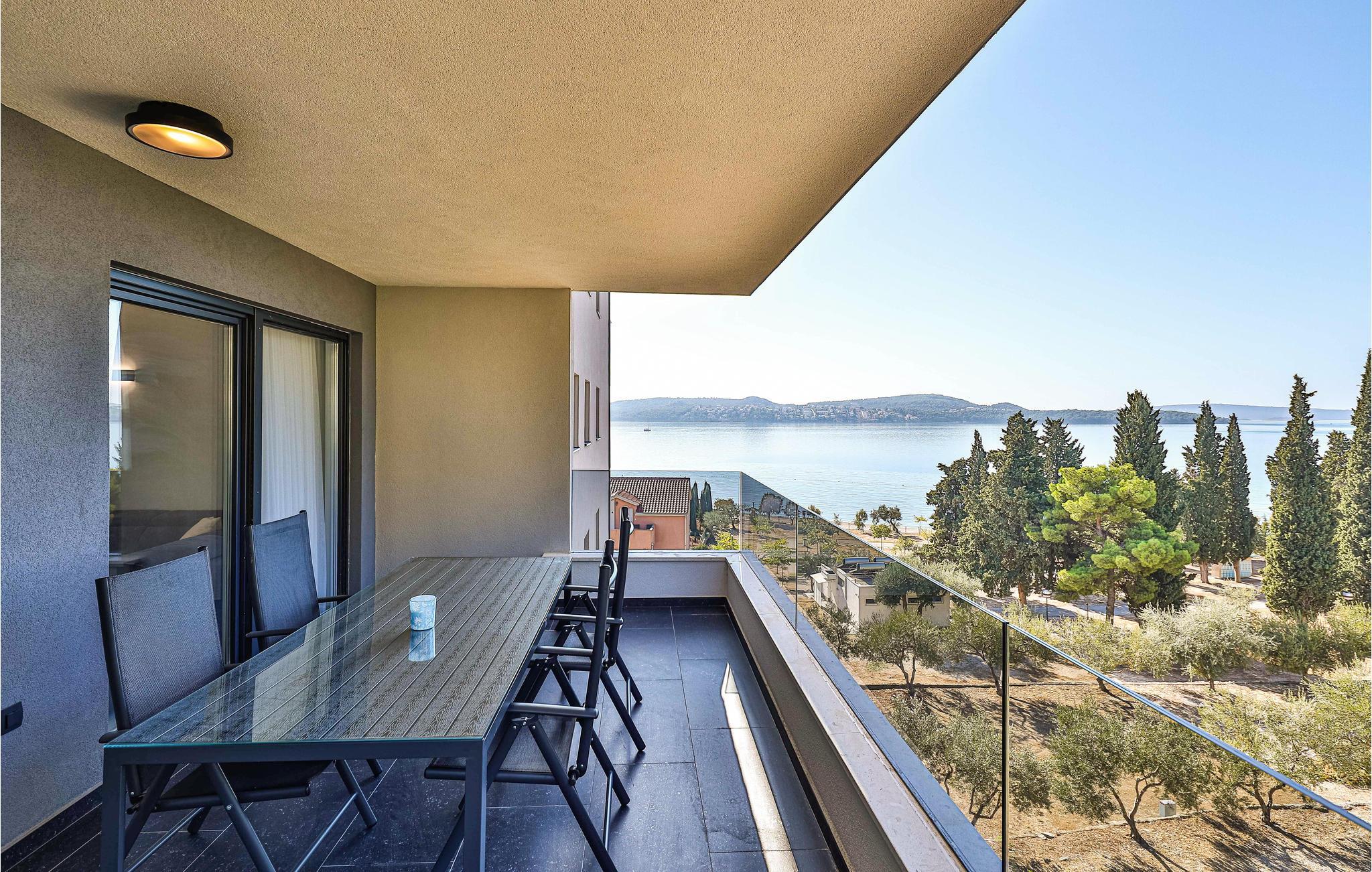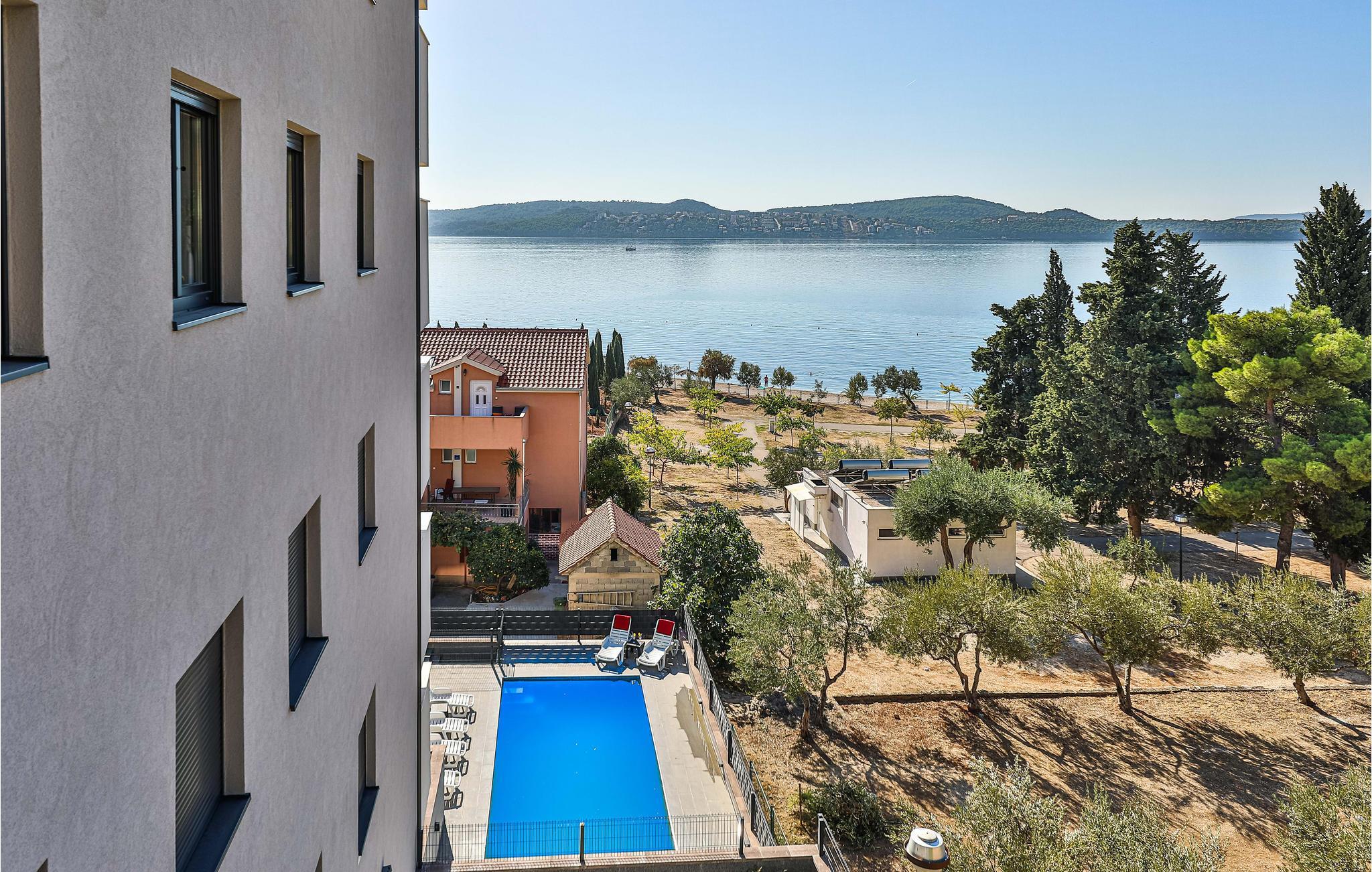 Planen Sie auch Ausflüge in die Umgebung. Empfehlenswert ist die wunderschöne Stadt Trogir. Aufgrund seiner geografisch geschützten Lage ist und war Trogir schon immer ein idealer Ort zum Leben und Urlaub machen. Schlendern Sie durch den Hafen und das malerische Labyrinth steinerner Gassen. Wandeln Sie auf den Spuren zahlreicher Künstler, Schriftsteller, Handwerker und Reisender, die hier vorbeikamen und einen Schatz an kulturellen Denkmälern hinterlassen haben. Vor allem die Uferpromenade ‚Riva‘ ist ein Muss, das Sie an heißen Sommernächten besuchen sollten. Sie ist genau der richtige Ort für eine Tasse Cappuccino, die Sie genießen, während Sie auf den palmengesäumten Jachthafen blicken. Probieren Sie sich durch das reiche gastronomische Angebot mit Pizza, Meeresfrüchten und Pasta in authentischen Restaurants.