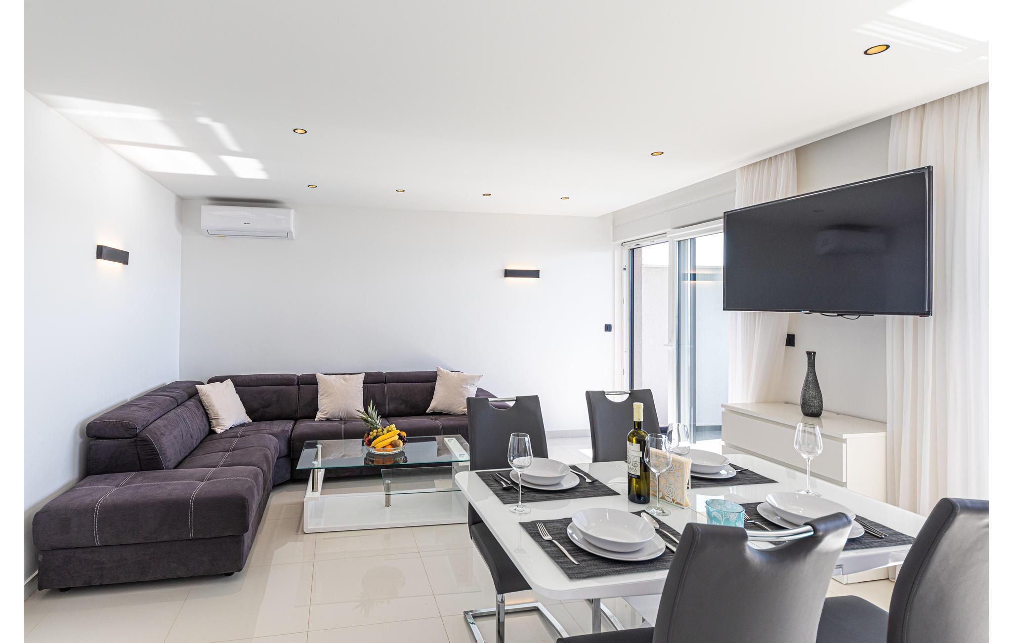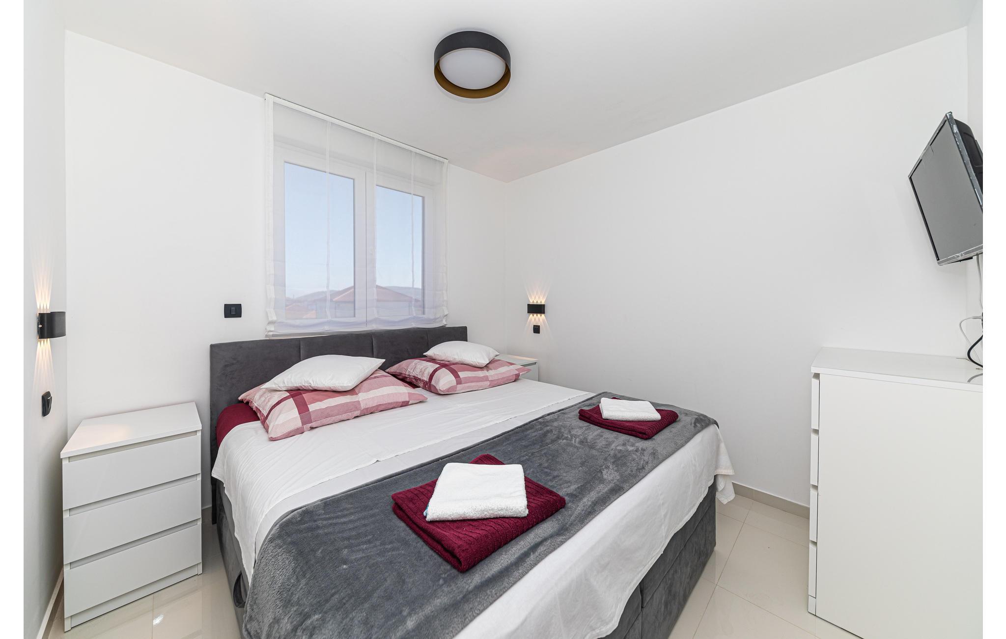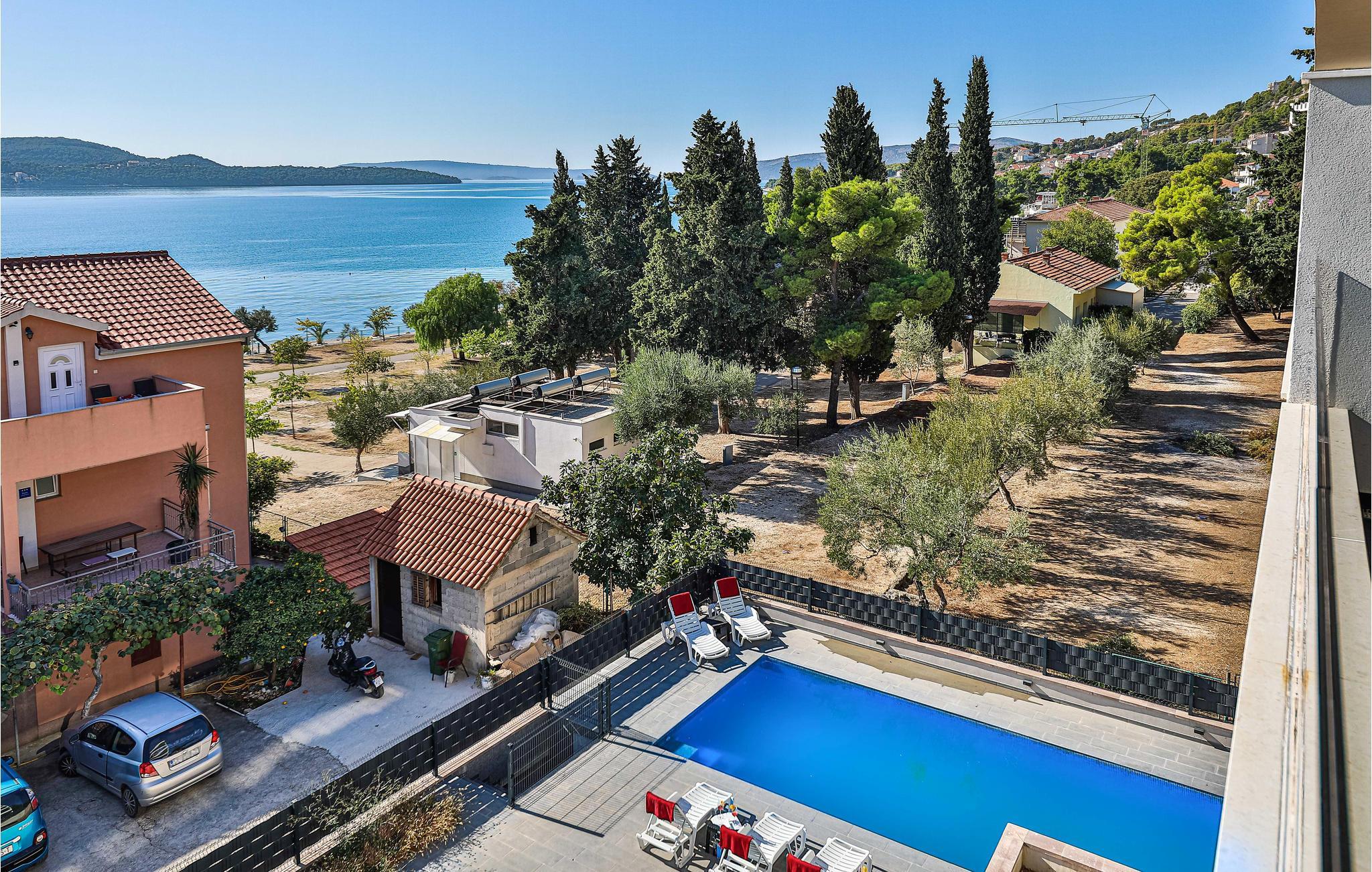 Planen Sie auch Ausflüge in die Umgebung. Empfehlenswert ist die wunderschöne Stadt Trogir. Aufgrund seiner geografisch geschützten Lage ist und war Trogir schon immer ein idealer Ort zum Leben und Urlaub machen. Schlendern Sie durch den Hafen und das malerische Labyrinth steinerner Gassen. Wandeln Sie auf den Spuren zahlreicher Künstler, Schriftsteller, Handwerker und Reisender, die hier vorbeikamen und einen Schatz an kulturellen Denkmälern hinterlassen haben. Vor allem die Uferpromenade ‚Riva‘ ist ein Muss, das Sie an heißen Sommernächten besuchen sollten. Sie ist genau der richtige Ort für eine Tasse Cappuccino, die Sie genießen, während Sie auf den palmengesäumten Jachthafen blicken. Probieren Sie sich durch das reiche gastronomische Angebot mit Pizza, Meeresfrüchten und Pasta in authentischen Restaurants.