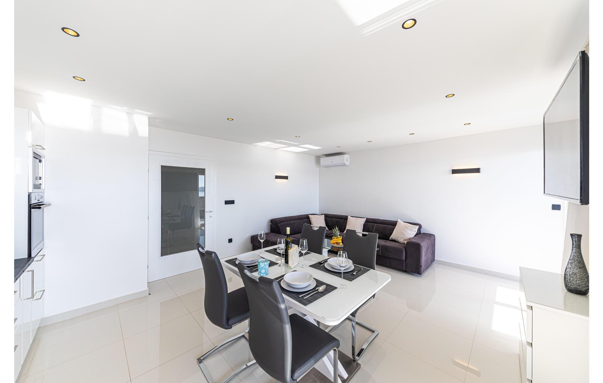 Sie suchen Entspannung, Strand und Meer und dabei möchten Sie wunderschön wohnen? Dann sind Sie hier genau richtig. Die schöne Ferienwohnung erfüllt Ihrer Wünsche nach schönen Wohn- und Schlafräumen, die komfortabel sind und in denen Sie sich ausruhen können. Starten Sie gut ausgeschlafen in einen neuen Urlaubstag und genießen die ersten Morgenstunden bei einem leckeren Frühstück auf Ihren Balkon mit Meerblick. Genießen Sie die Umgebung, bevor Sie sich in den Gemeinschaftsgarten aufmachen und die ersten Bahnen im Swimmingpool ziehen. Entspannen Sie sich auf den Sonnenliegen und kommen Sie mit den anderen Gästen ins Gespräch, während Ihre Kinder im Wasser Freundschaften knüpfen.