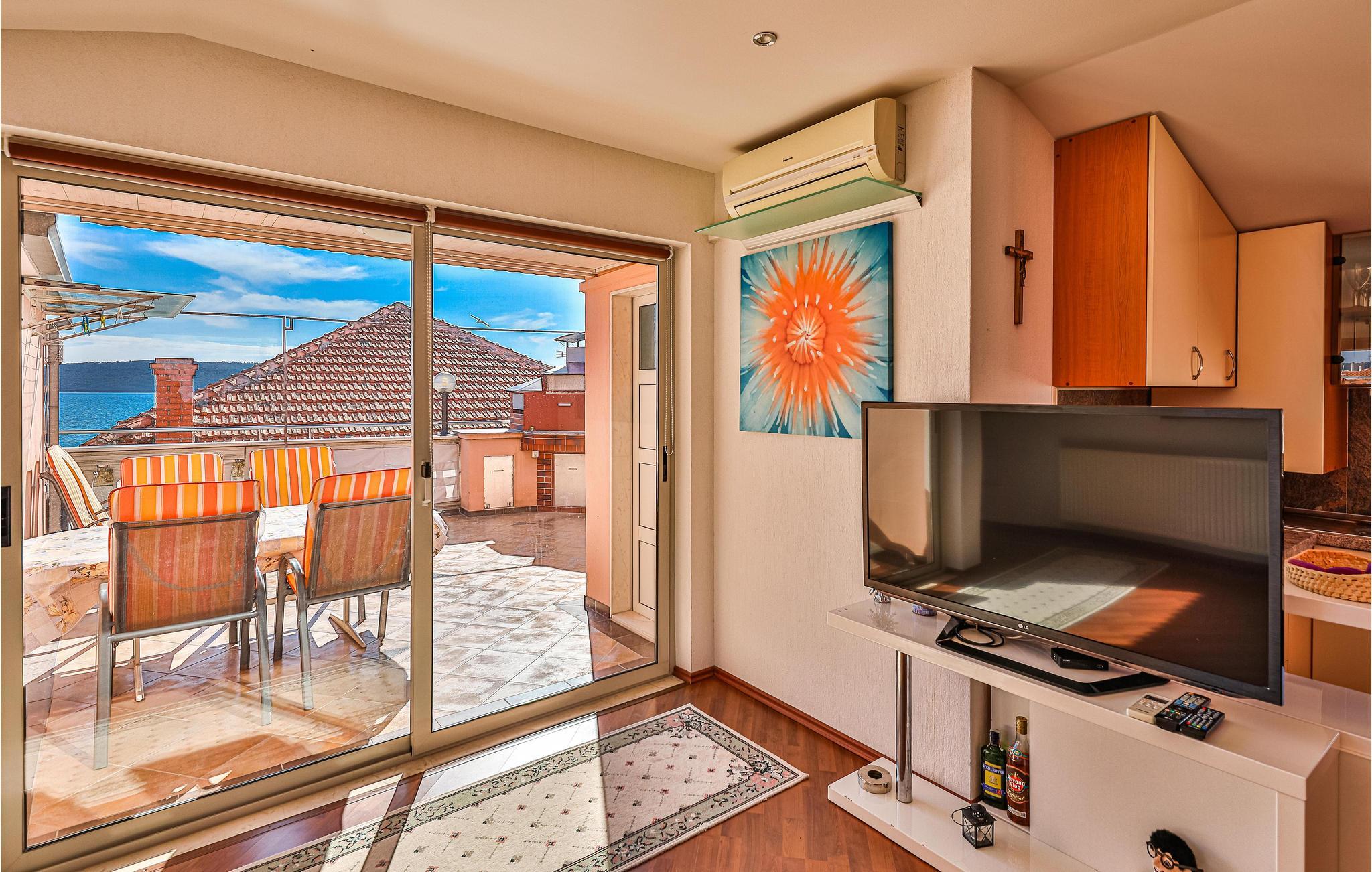 Genießen Sie das Wasser, spüren Sie den warmen Sand unter den Füßen und entspannen Sie sich recht gut in der Sonne am nur 15 m vom Haus entfernten Sandstrand. In der Nähe finden Sie ein Badeland, das Ihre Kinder definitiv auch lieben werden, sowie auch Trogir, ein verführerisches Städtchen mit krummen mittelalterlichen Gassen und über zweitausend Jahren Geschichte.